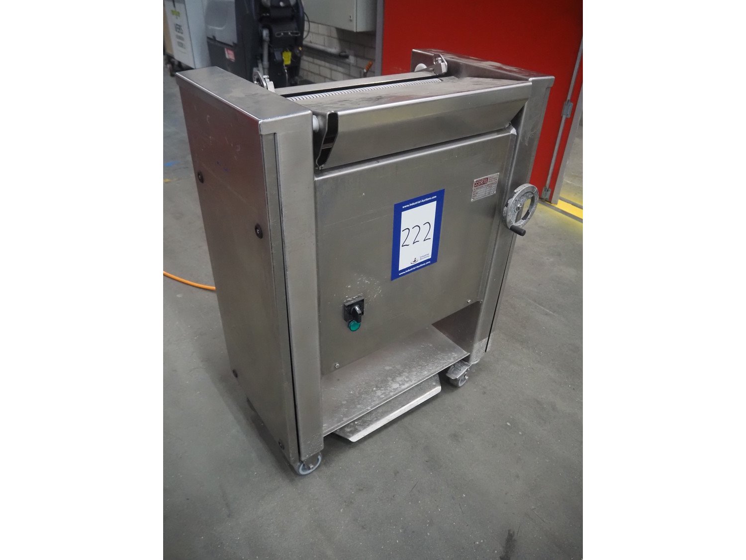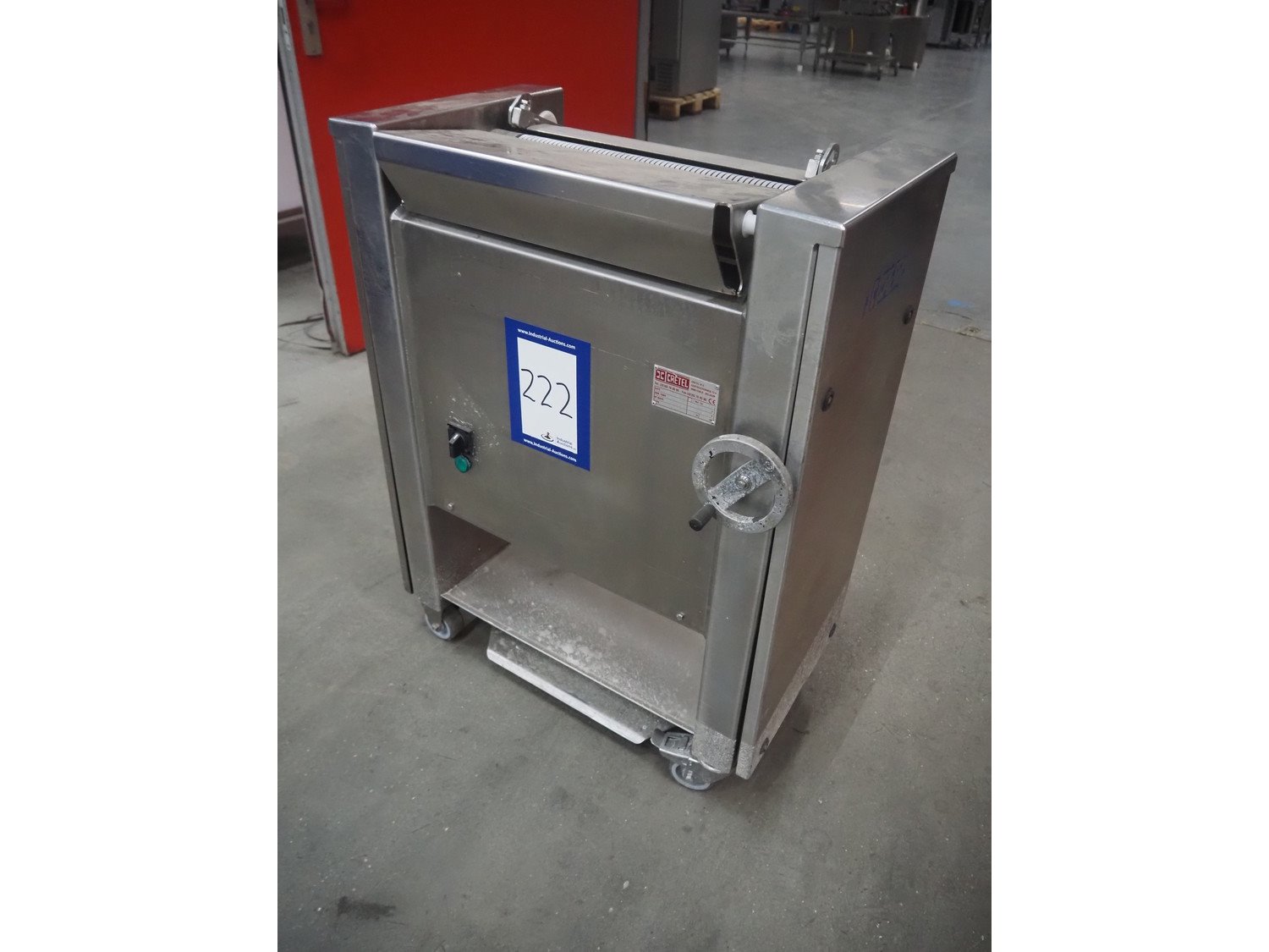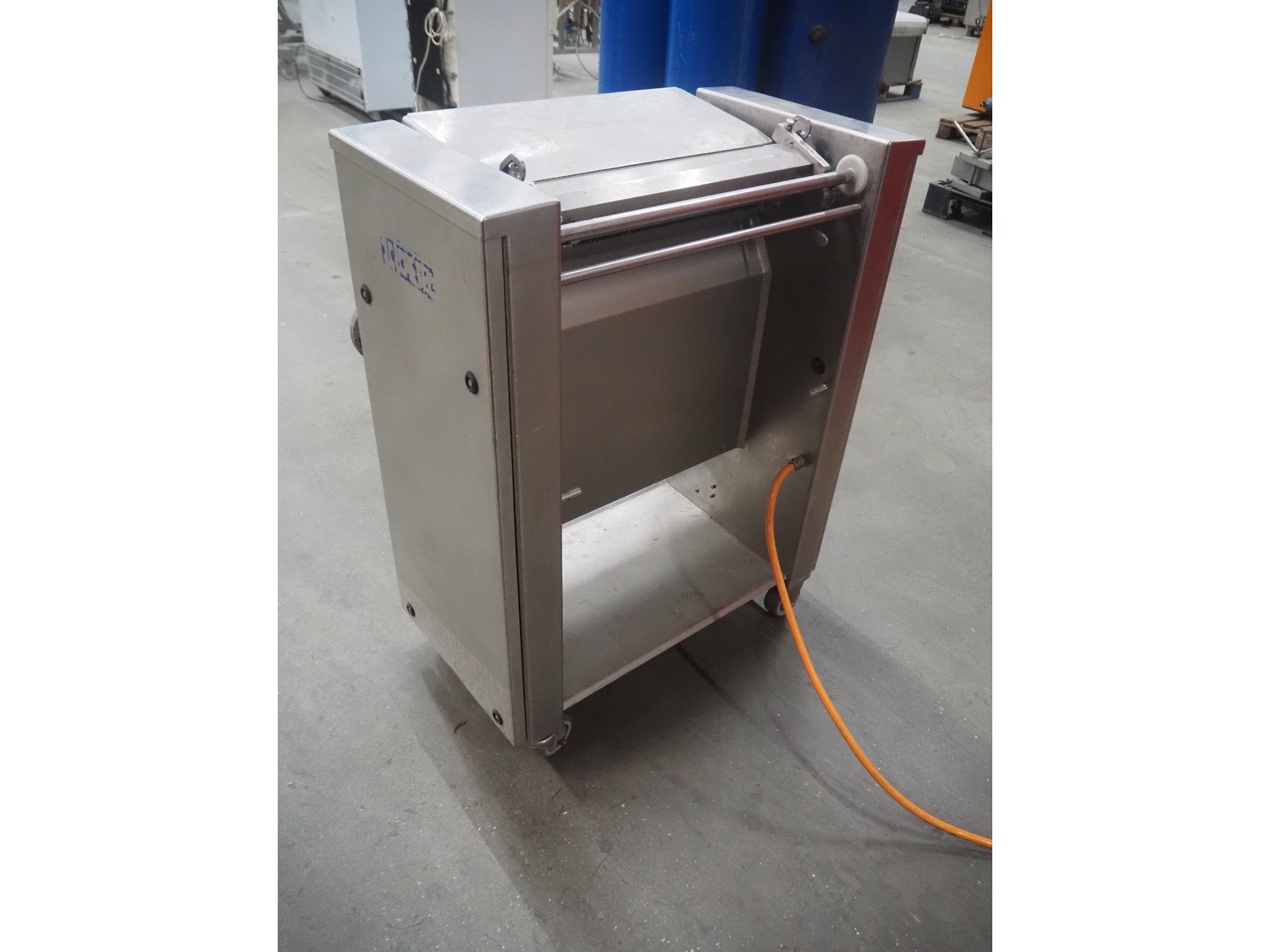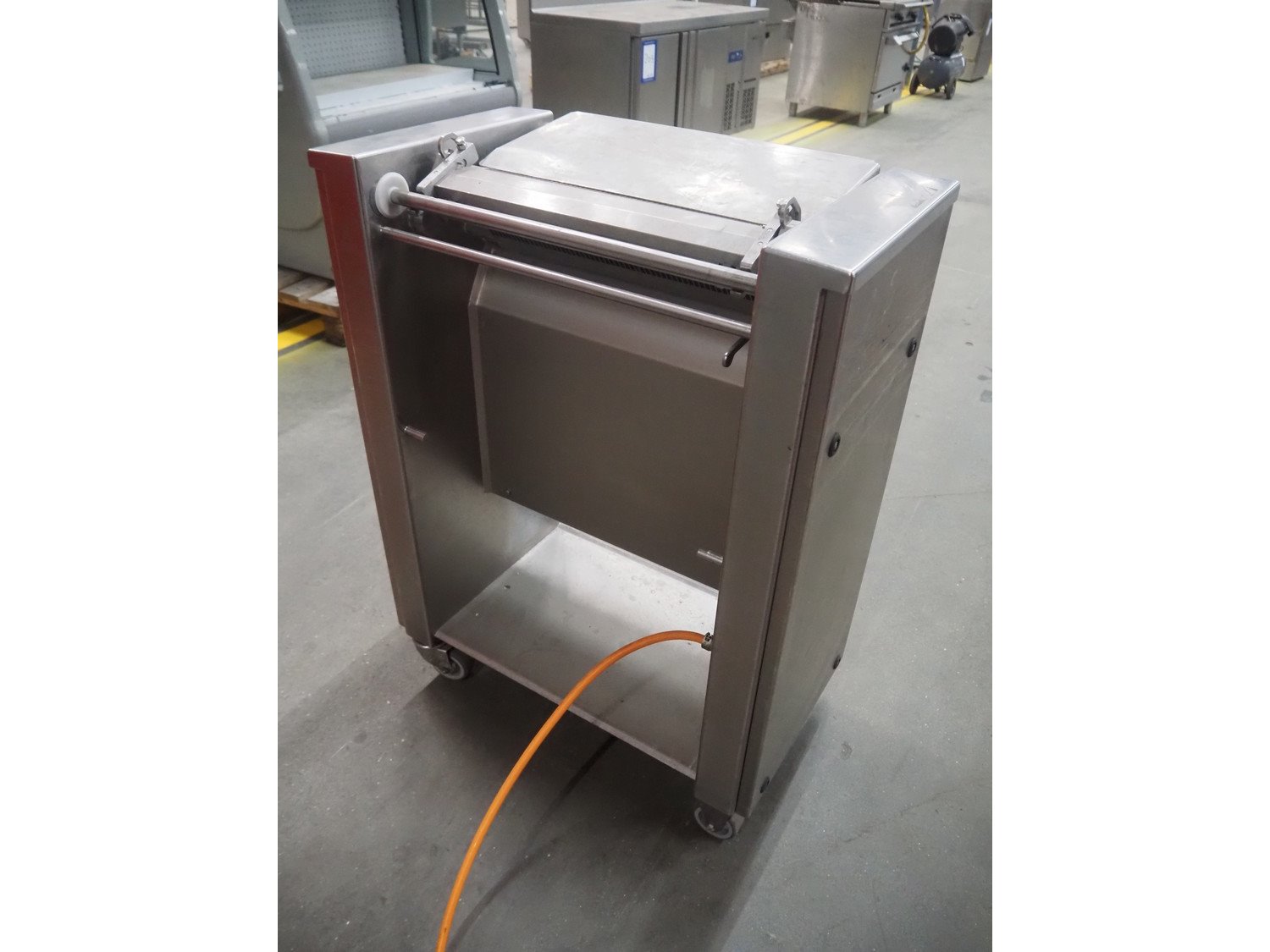 Cretel mobile skinning machine, type: SB46, serial number: 2041188, year of construction: 2004, 230-400 V, 3 Ph, 50 Hz, 3.8-2.2 A, 0.75 kW, working width: 435 mm, total dimensions: 750 mm x 500 mm x 990 mm.