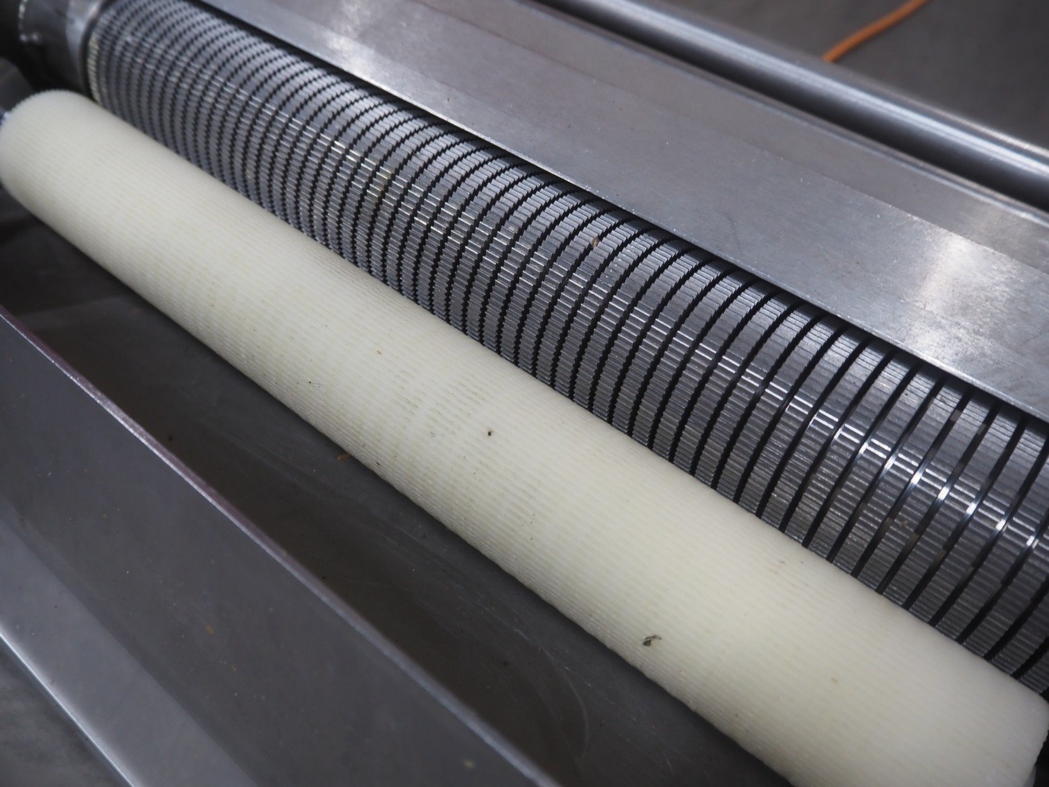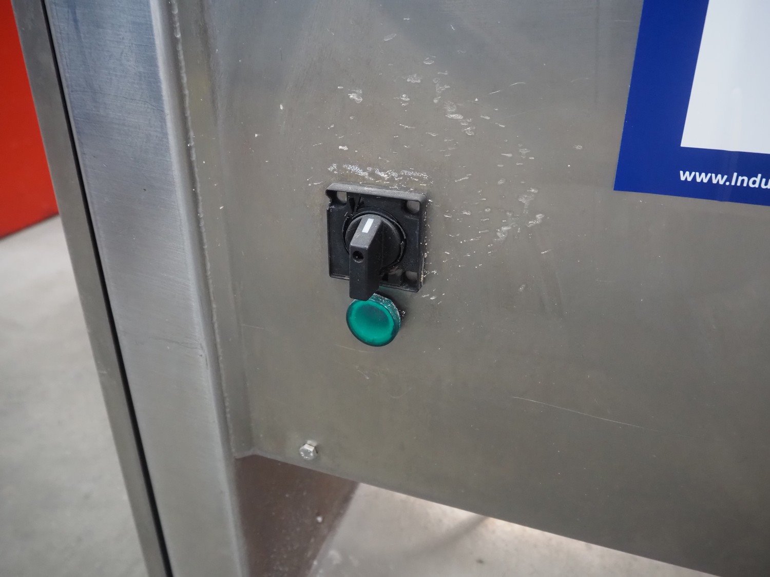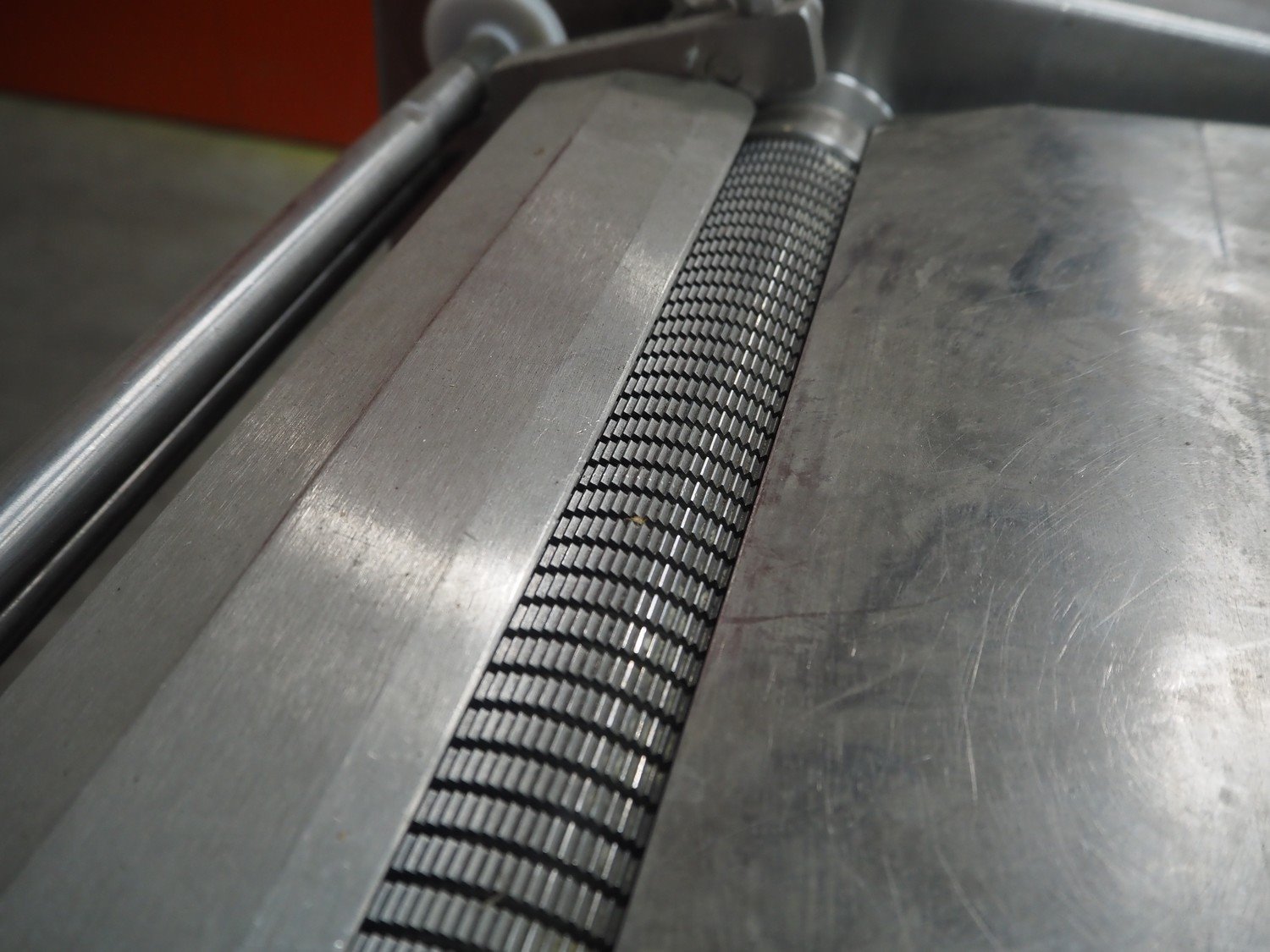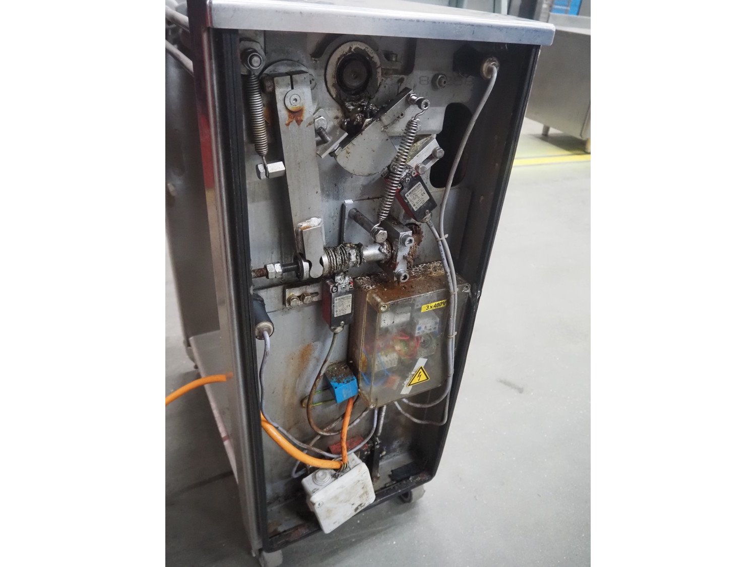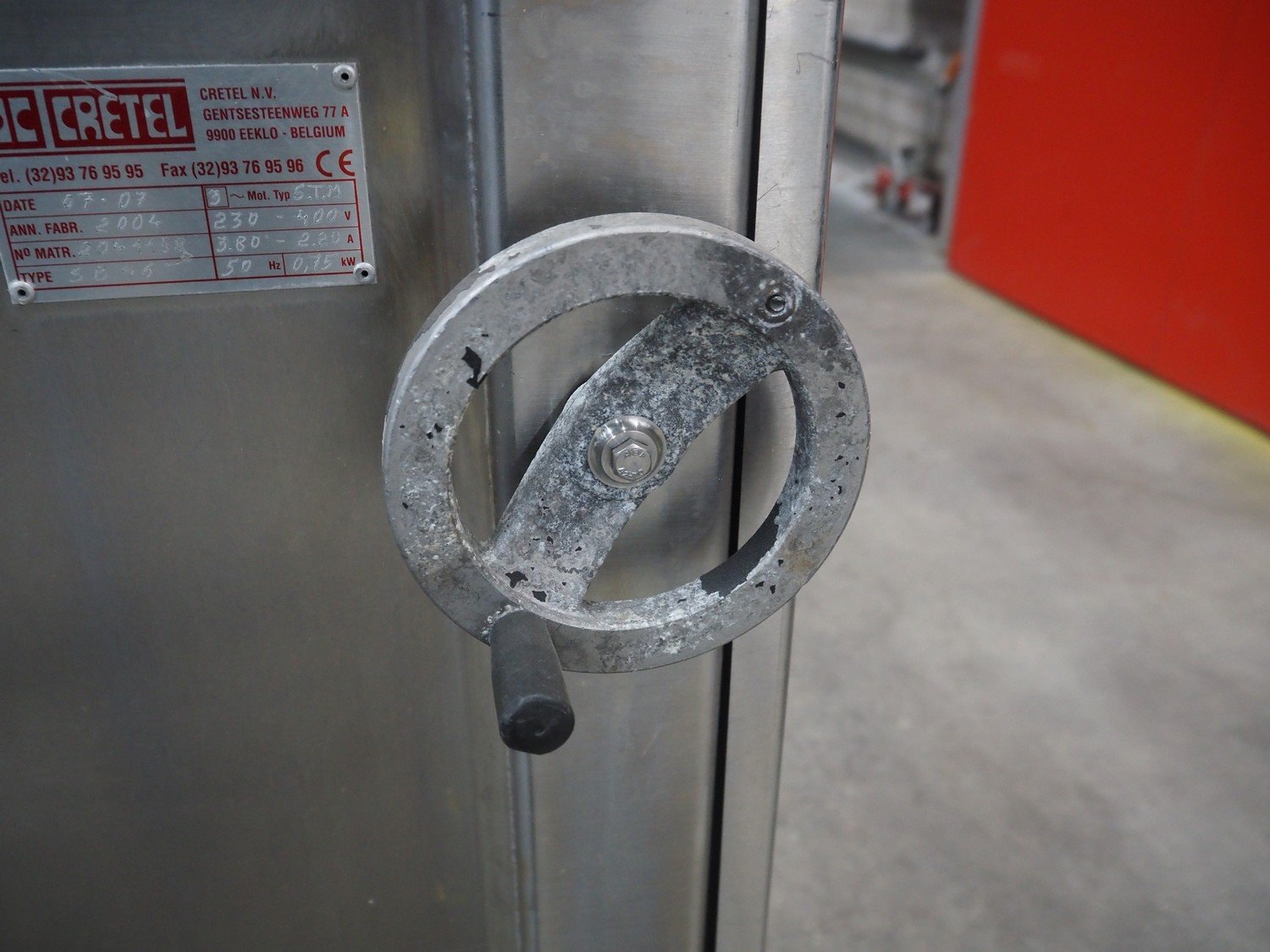 Cretel mobile skinning machine, type: SB46, serial number: 2041188, year of construction: 2004, 230-400 V, 3 Ph, 50 Hz, 3.8-2.2 A, 0.75 kW, working width: 435 mm, total dimensions: 750 mm x 500 mm x 990 mm.