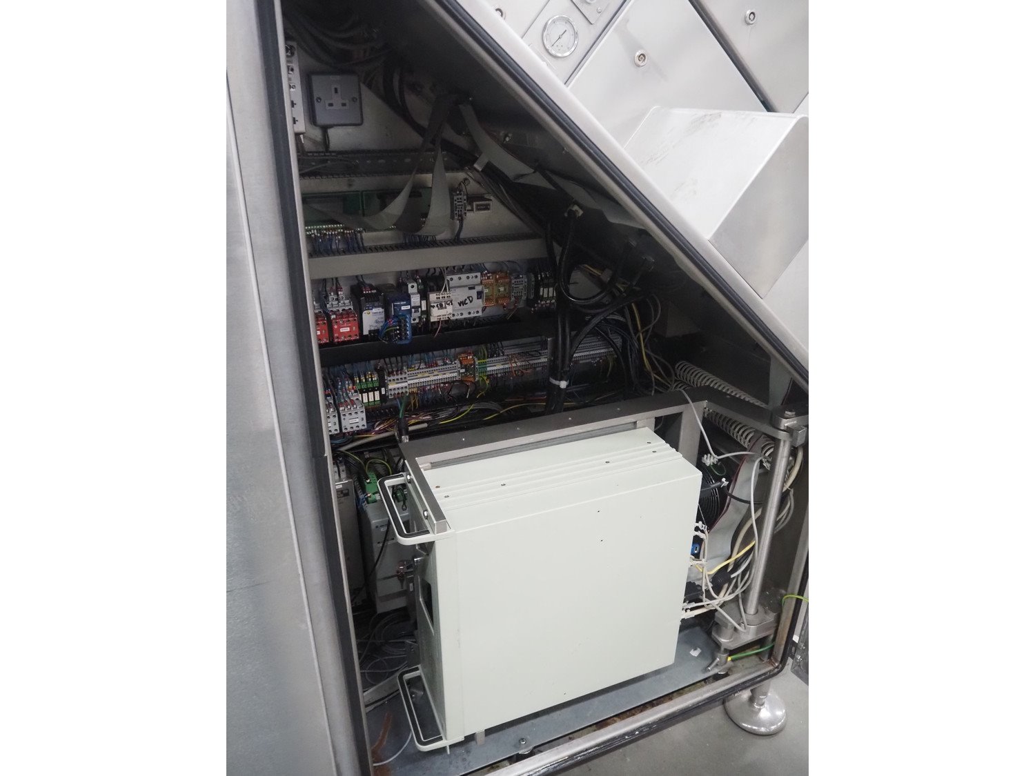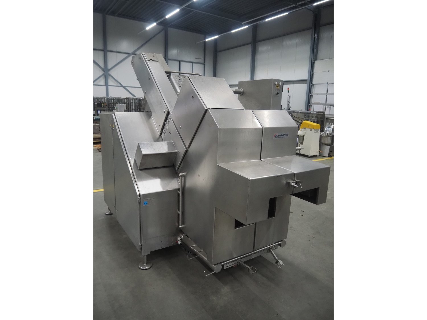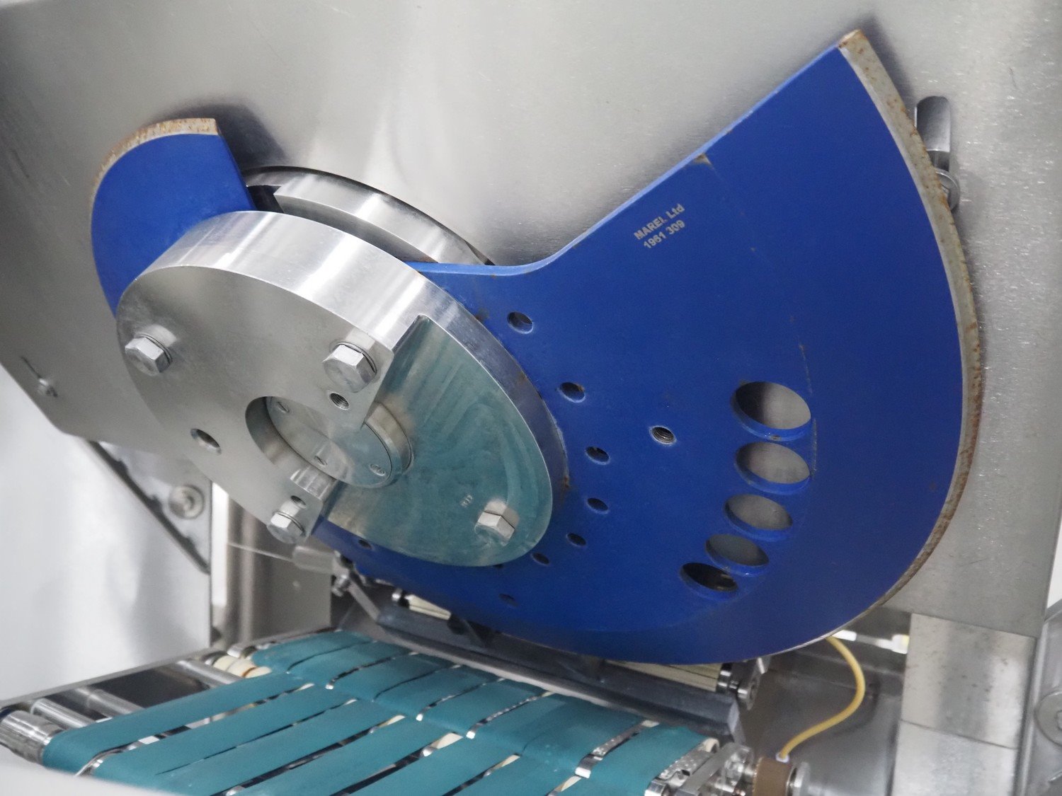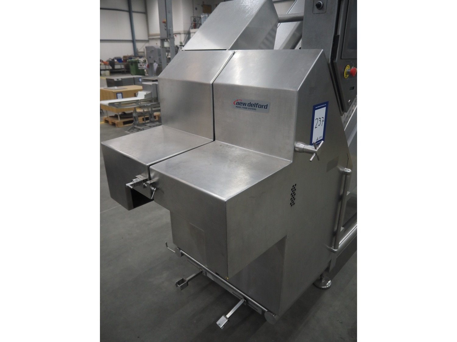 AEW Delford slicer, model: PolySlicer 3000V, serial number: 1890055, 400 V, 3 Ph, 50 Hz, 40 A, weight: 1100 kg, dimensions: 2800 mm x 1400 mm x 2350 mm. Without outfeed belt.