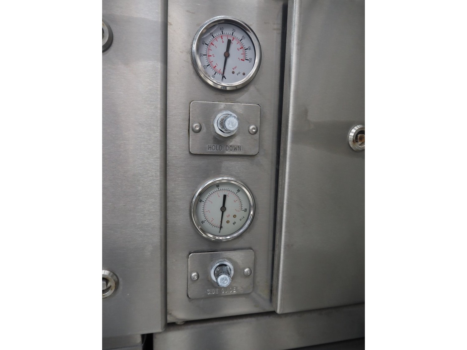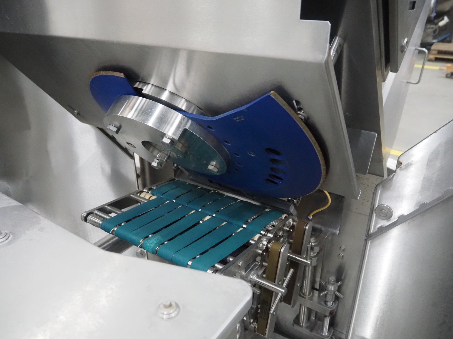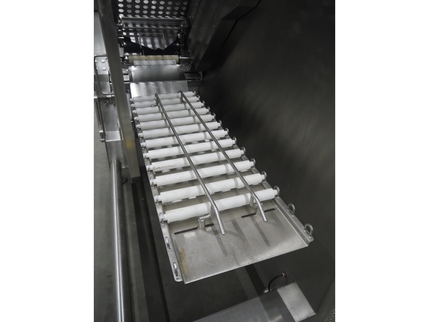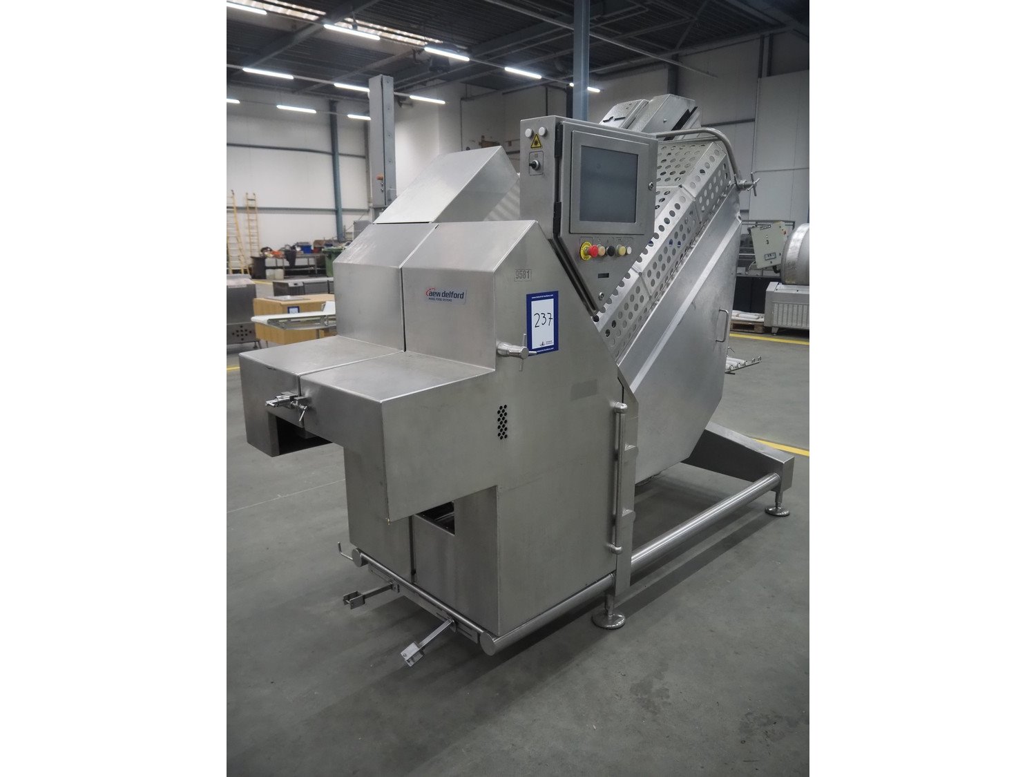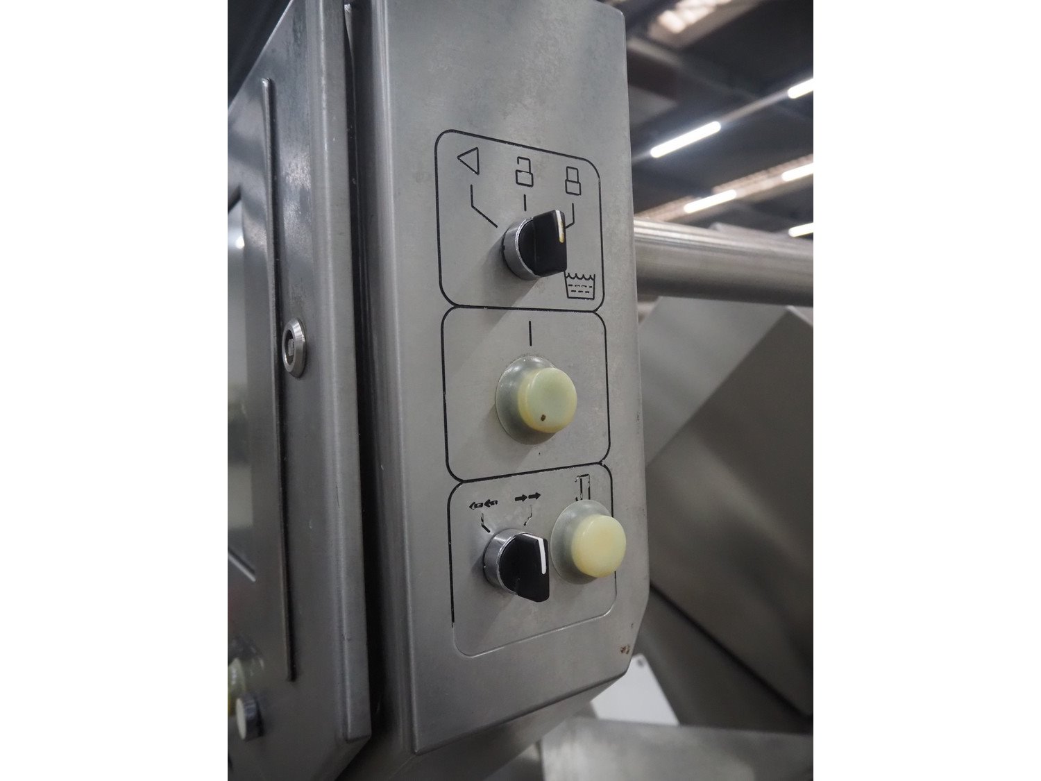 AEW Delford slicer, model: PolySlicer 3000V, serial number: 1890055, 400 V, 3 Ph, 50 Hz, 40 A, weight: 1100 kg, dimensions: 2800 mm x 1400 mm x 2350 mm. Without outfeed belt.