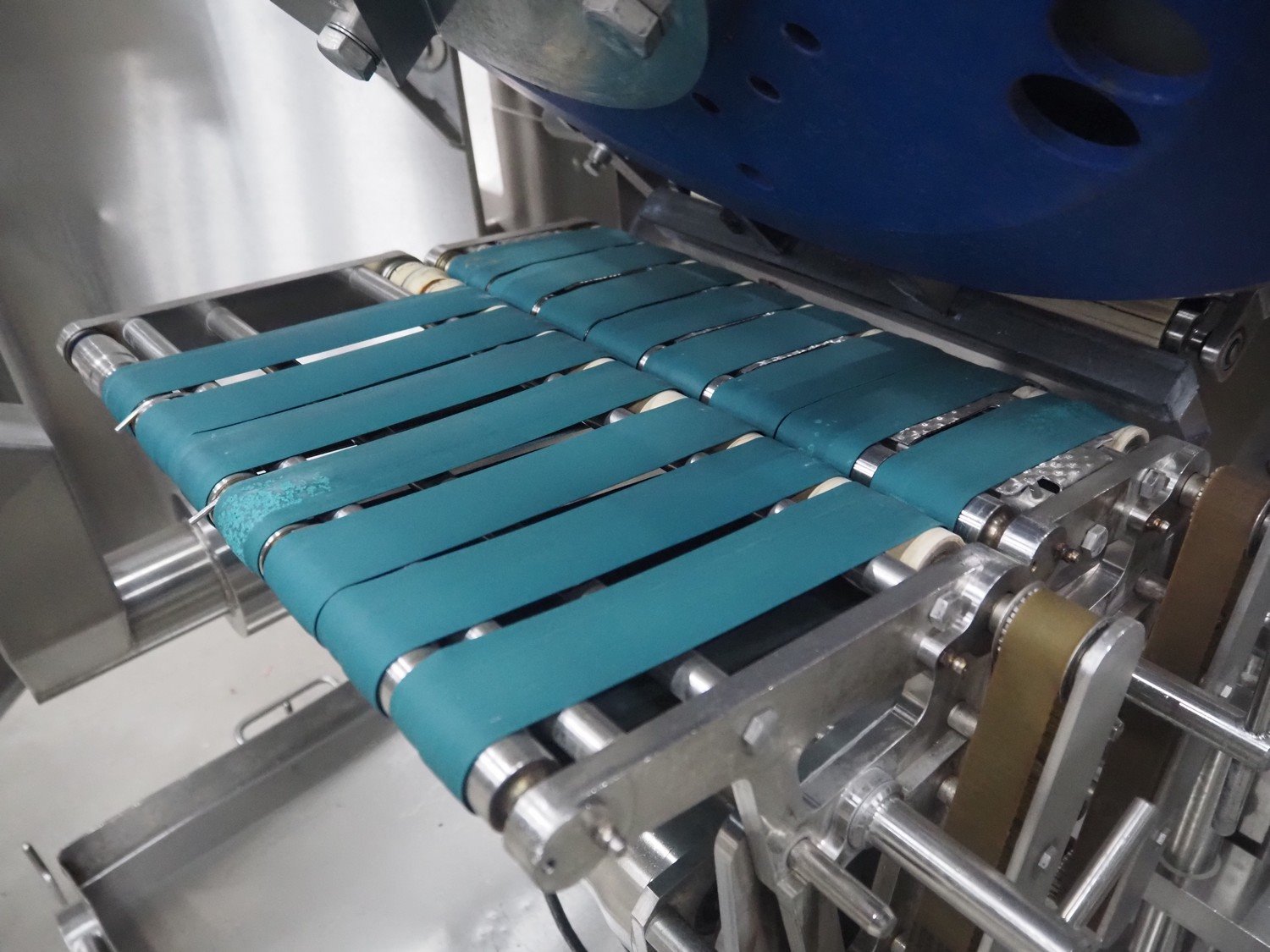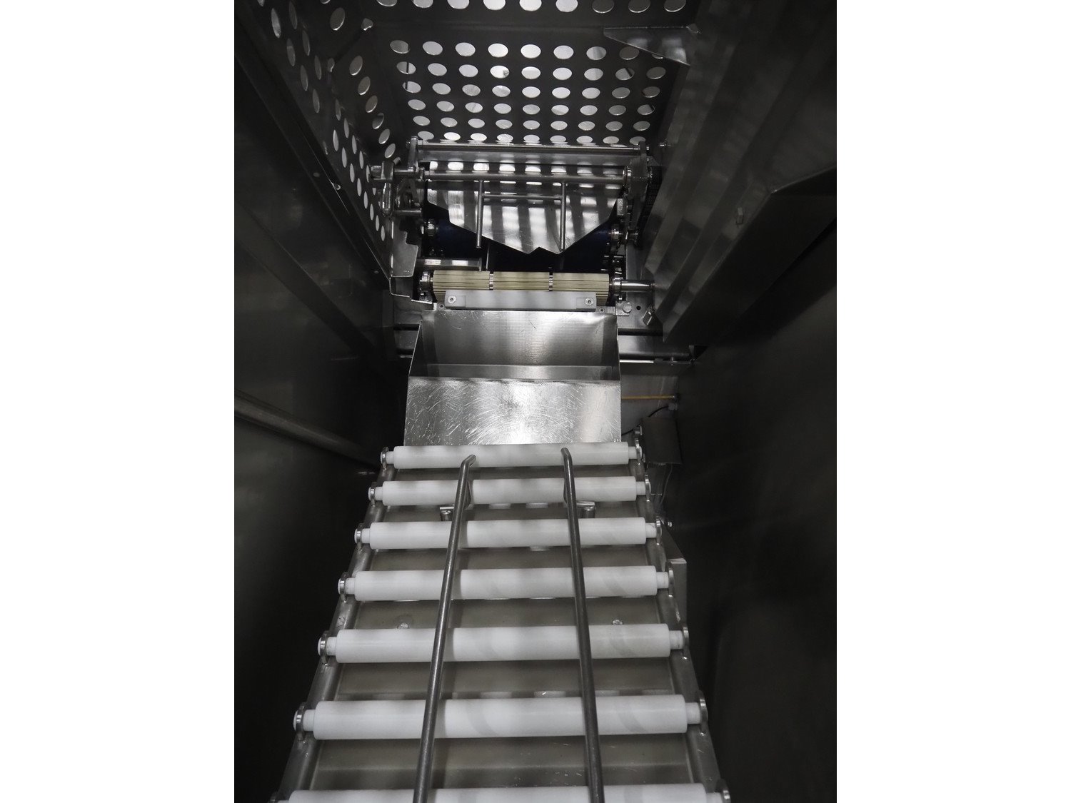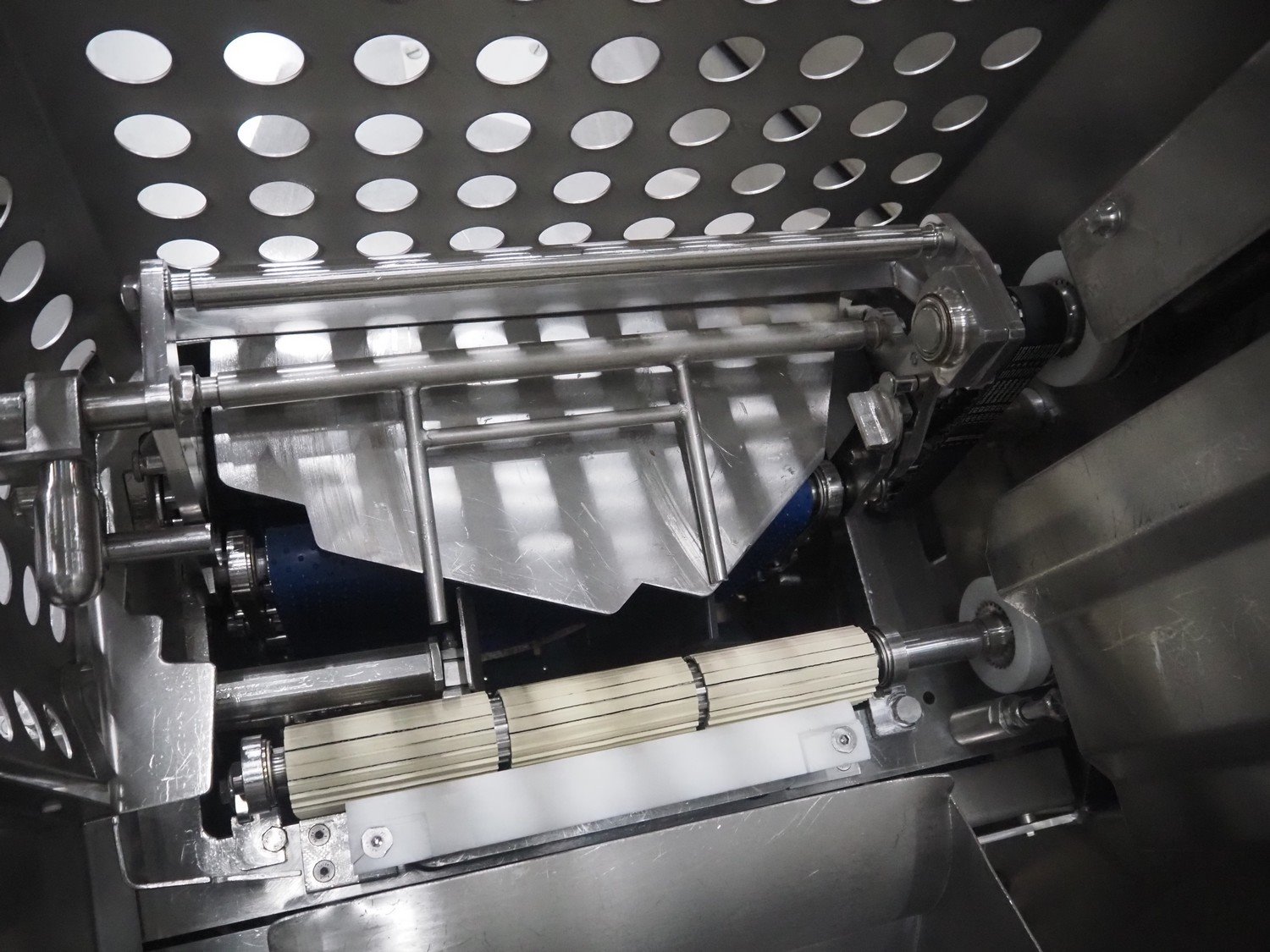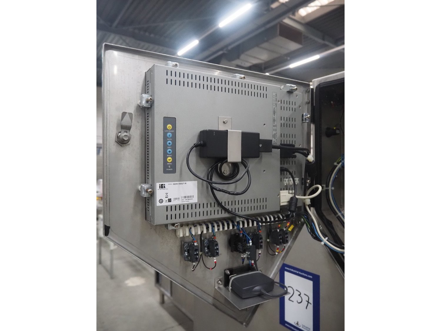 AEW Delford slicer, model: PolySlicer 3000V, serial number: 1890055, 400 V, 3 Ph, 50 Hz, 40 A, weight: 1100 kg, dimensions: 2800 mm x 1400 mm x 2350 mm. Without outfeed belt.