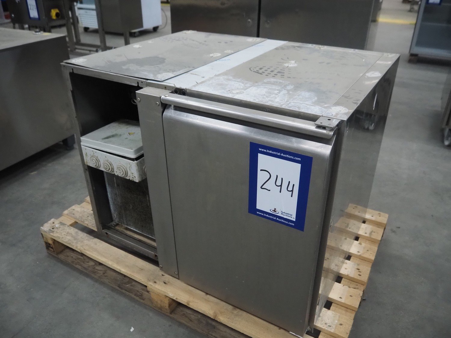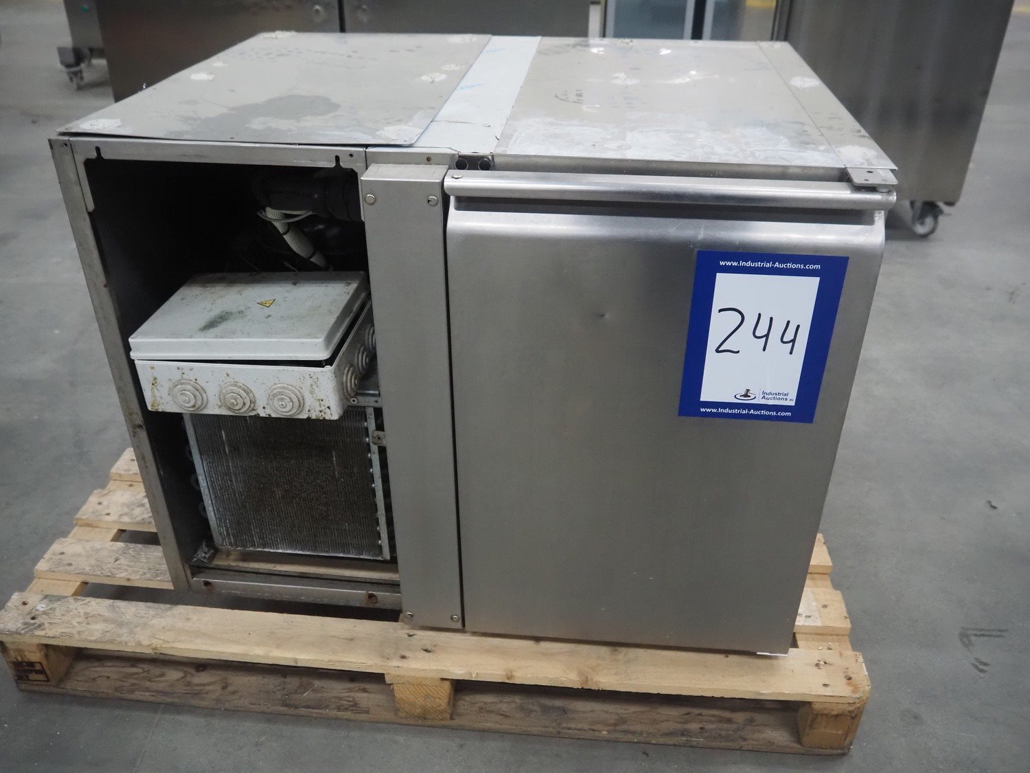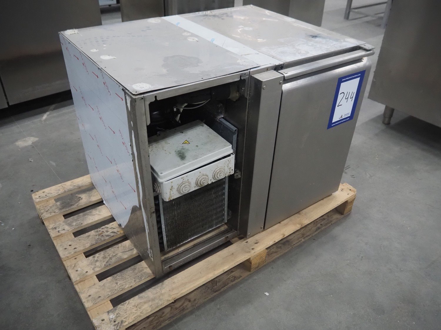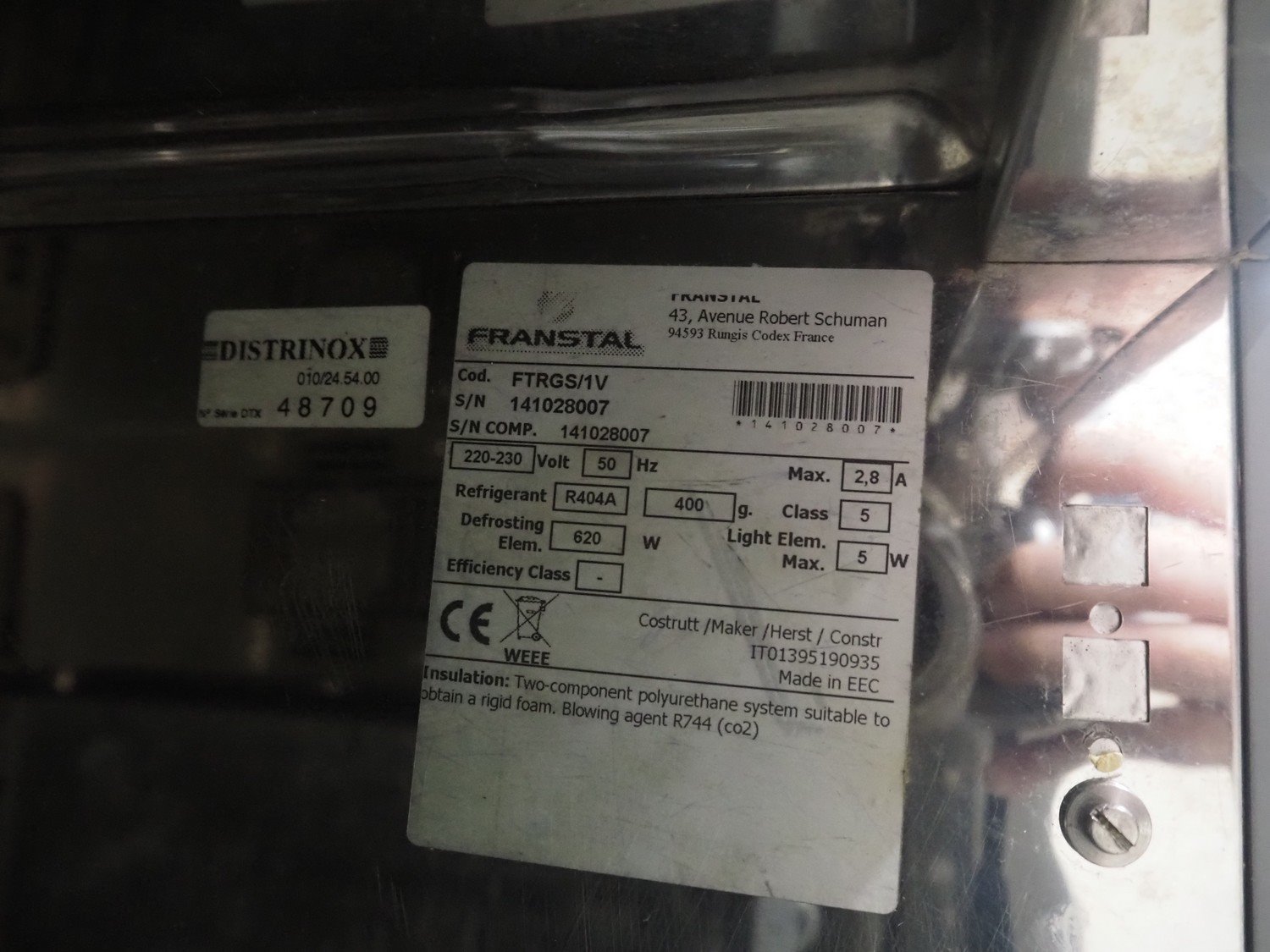 Franstal refrigerator, serial number: 141025007, 220-230 V, 50 Hz, 2,8 A, refrigerant: R404a / 400 gram, dimensions: 870 mm x 700 mm x 700 mm. Missing cover.