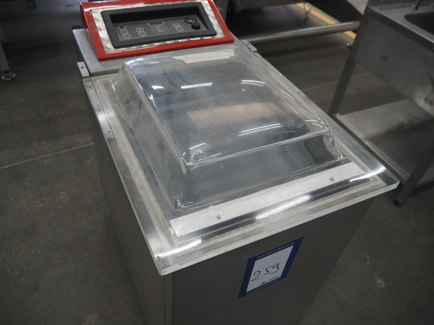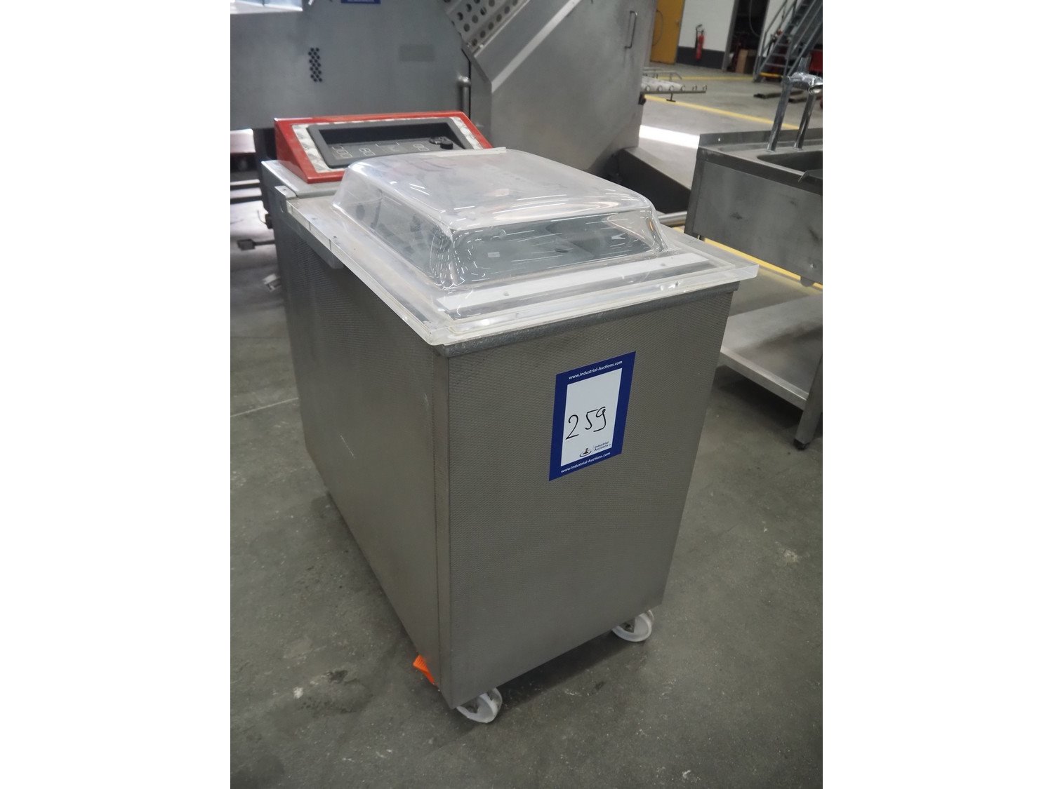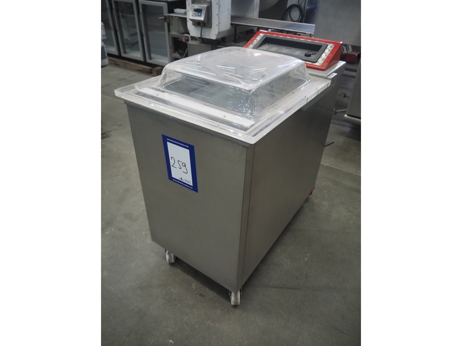 Mobile vacuum machine, seal length: 450 mm, chamber dimensions: 850 mm x 460 mm, total dimensions: 950 mm x 570 mm x 910 mm.