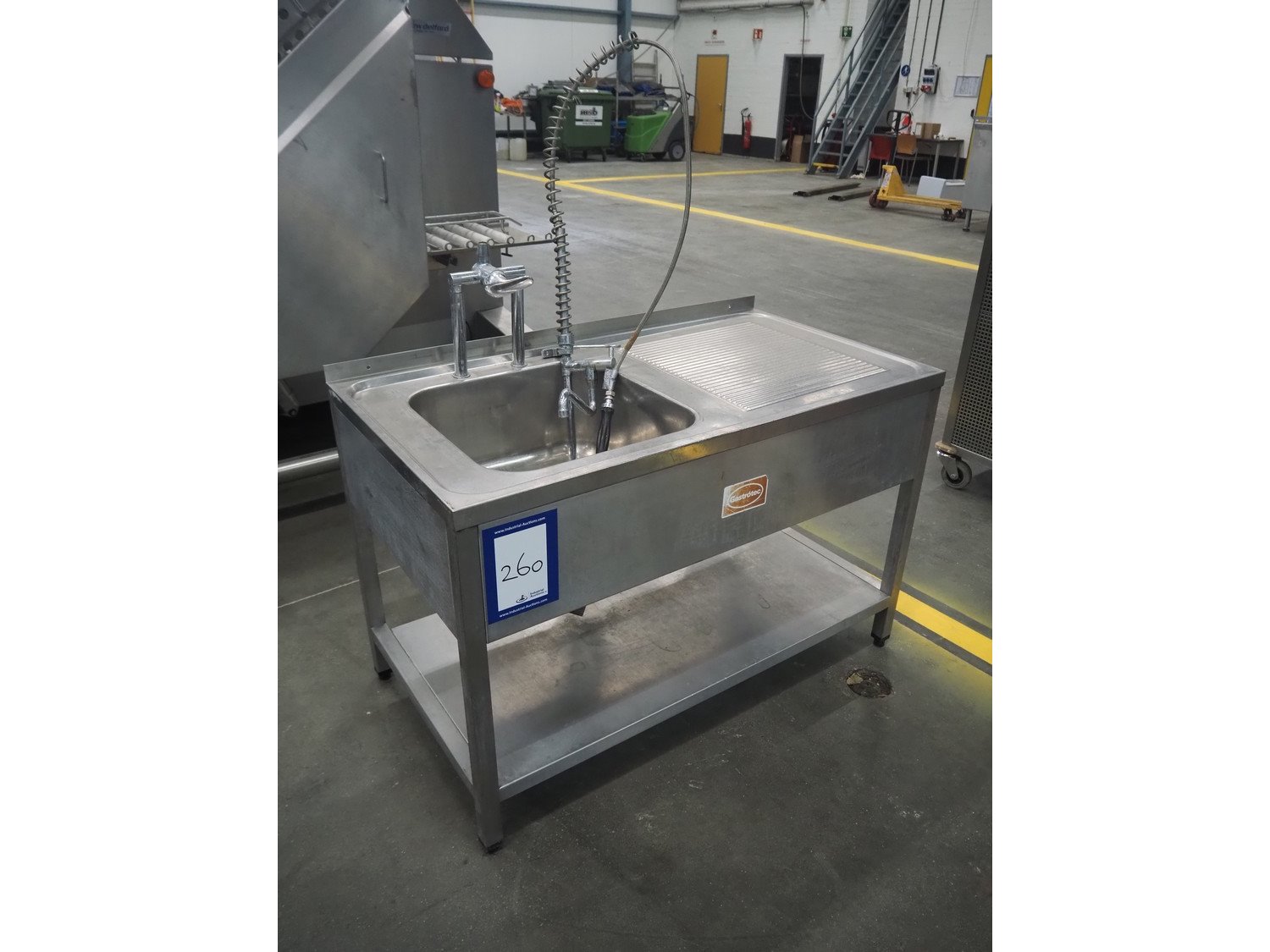 Gastrotec s/s sink with faucet, dimensions: 1300 mm x 710 mm x 1150 mm. Faucet is broken.