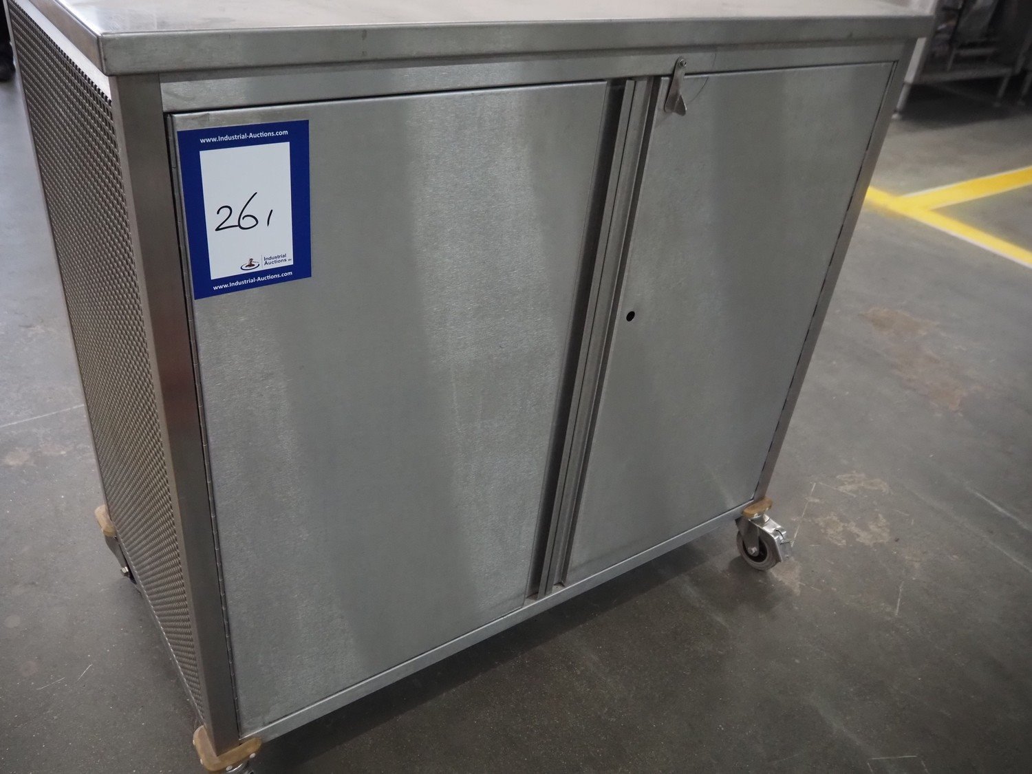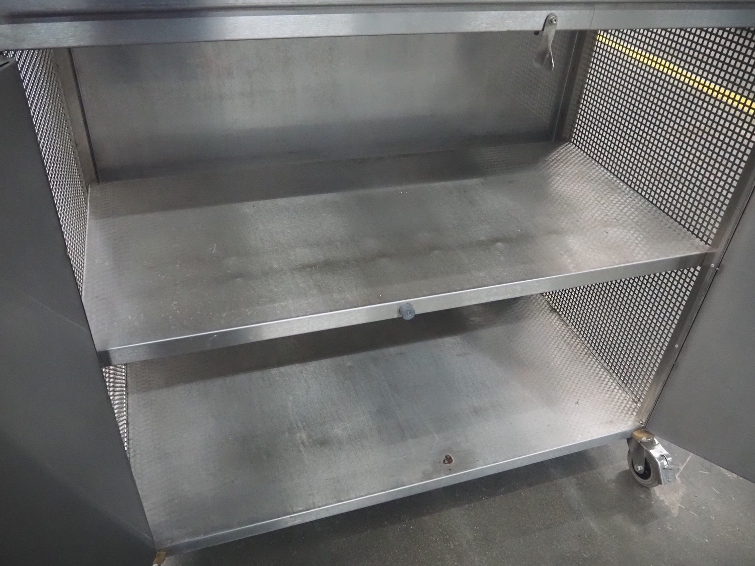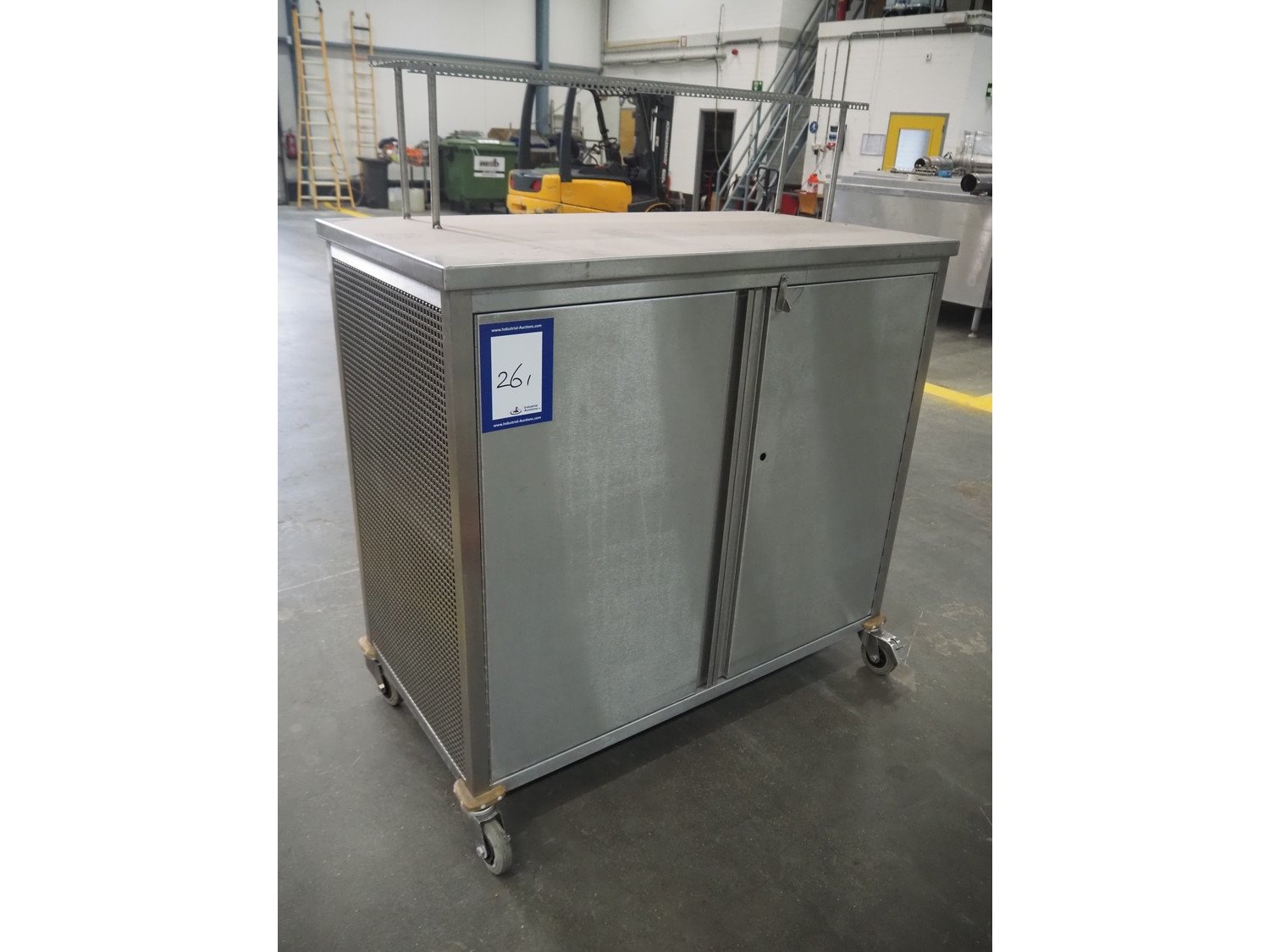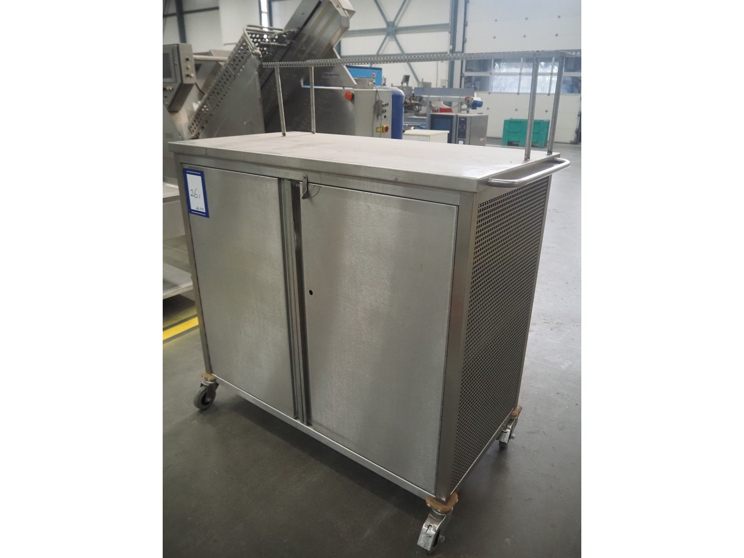 Mobile s/s cabinet, dimensions: 1500 mm x 750 mm x 1700 mm.