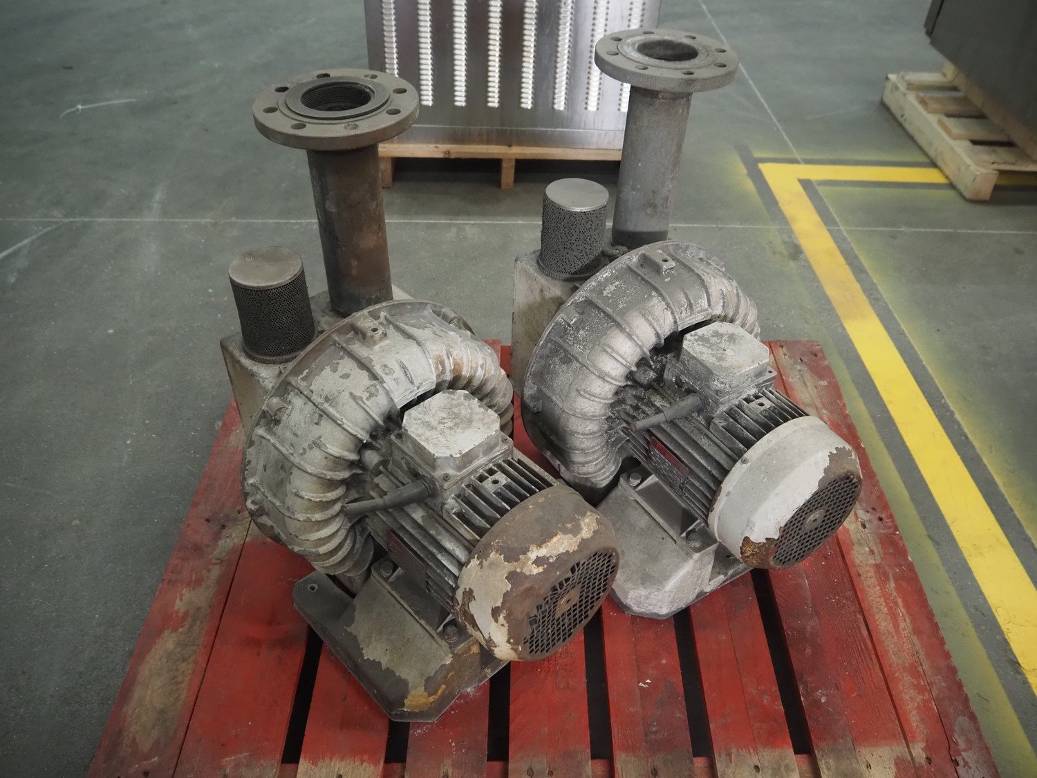 2 side channel blower with ESAM s.p.a. motors, type: MAXI JET 2S CE, number: 60200472, 60200474, dimensions: (2x) 600 mm x 400 mm x 700 mm.