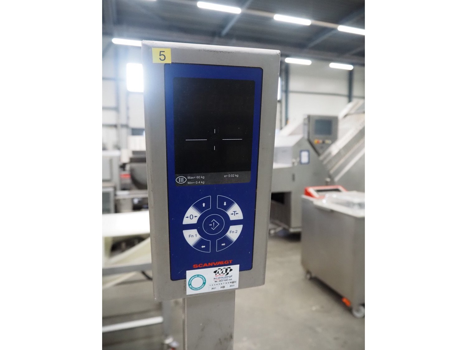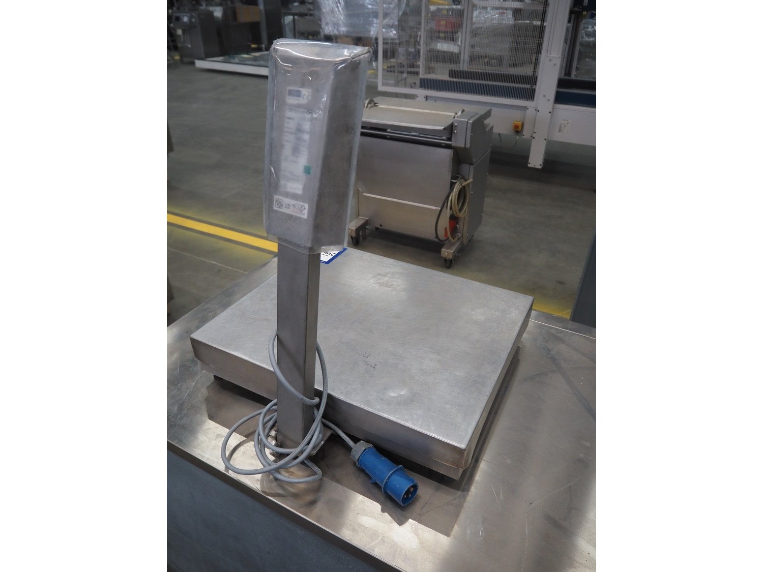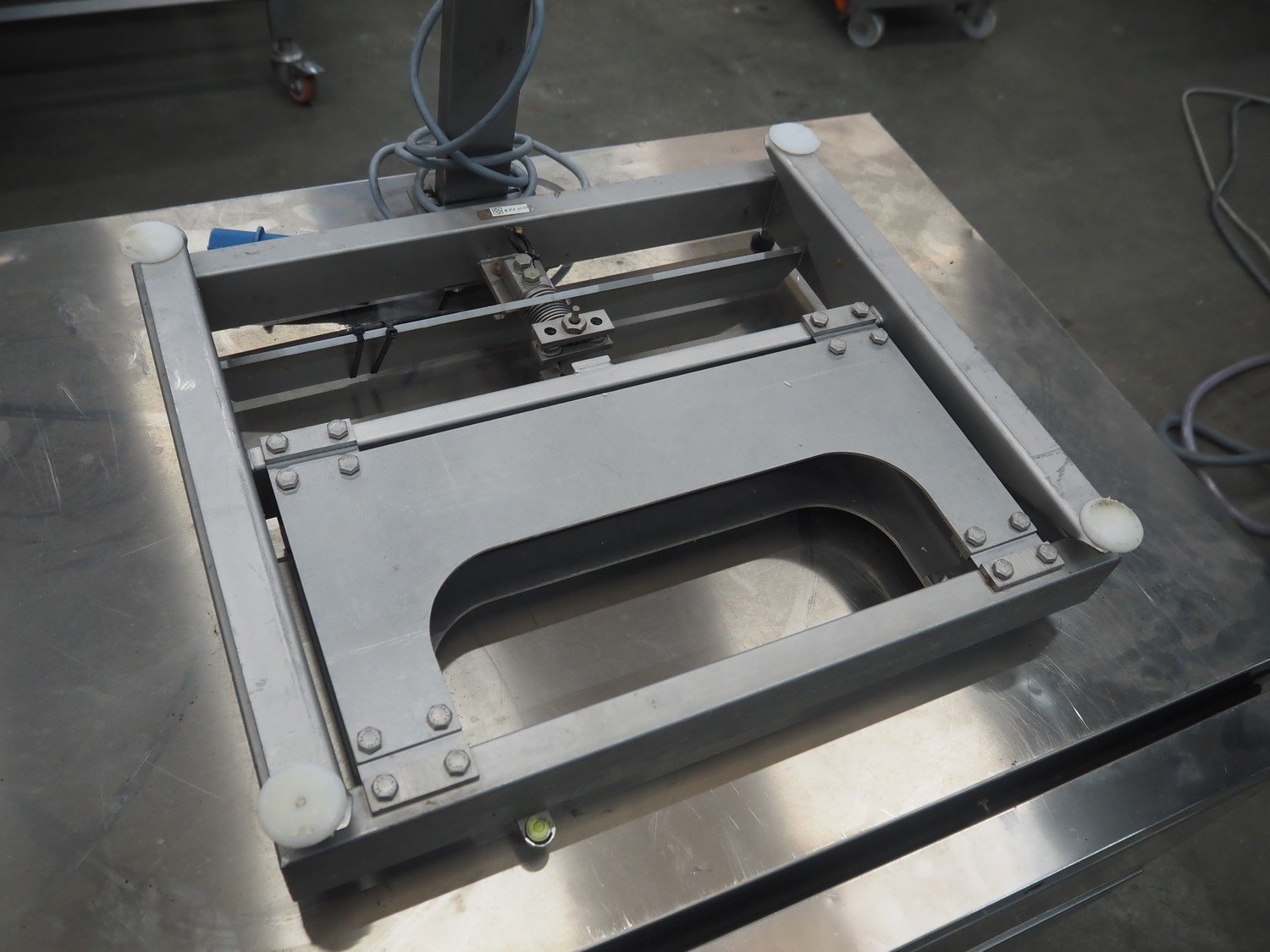 Scanveagt weighing scale with indicator, type indicator: 411, serial number: BPE02571, type receptor: 1025.30, serial number: BPE02571, maximum weight: 60 kg, minimum weight: 0.4 kg, e= 20 gram, dimensions: 560 mm x 600 mm x 700 mm.