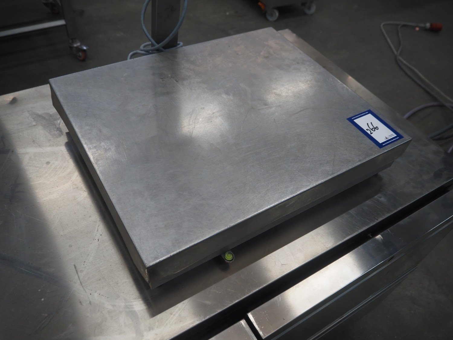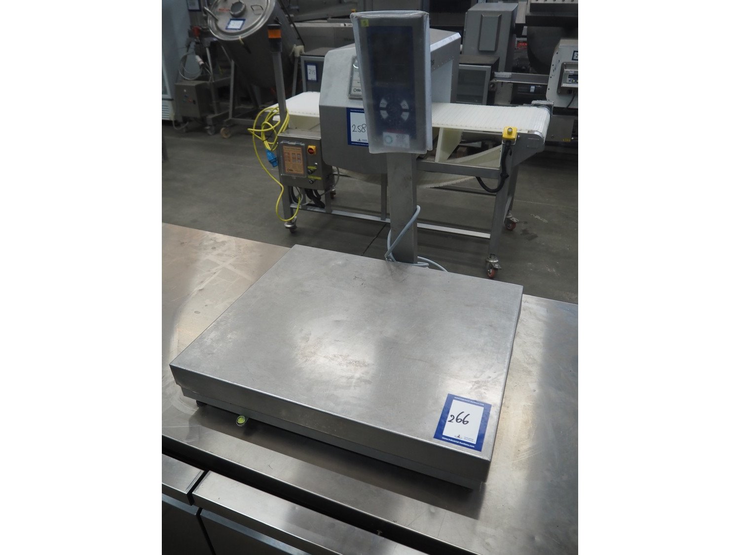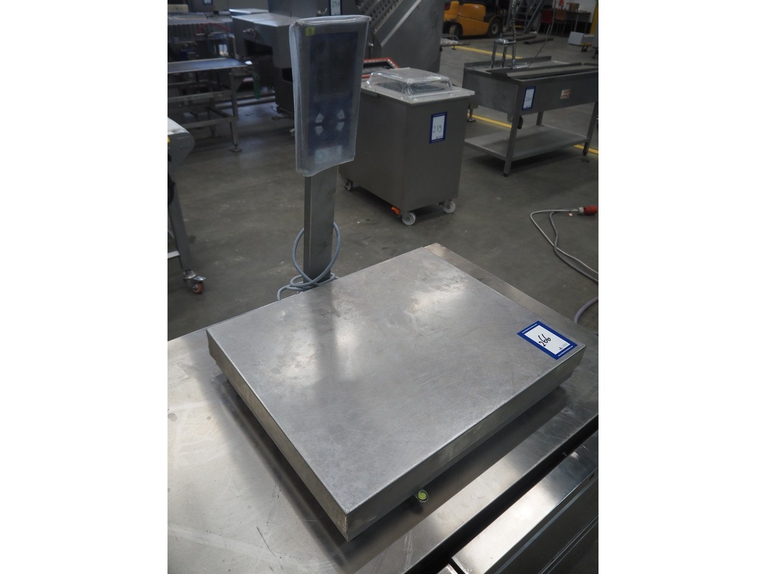 Scanveagt weighing scale with indicator, type indicator: 411, serial number: BPE02571, type receptor: 1025.30, serial number: BPE02571, maximum weight: 60 kg, minimum weight: 0.4 kg, e= 20 gram, dimensions: 560 mm x 600 mm x 700 mm.