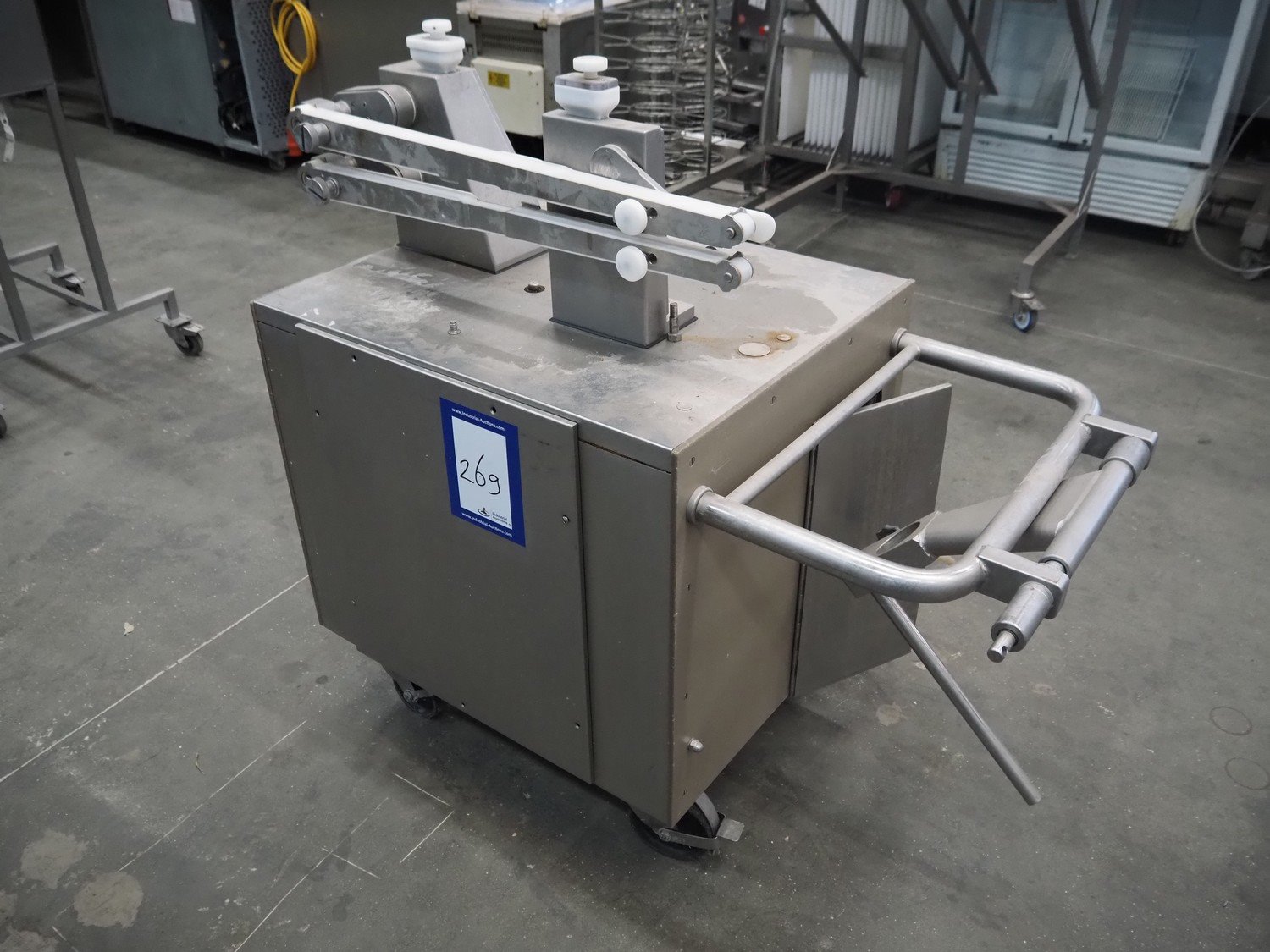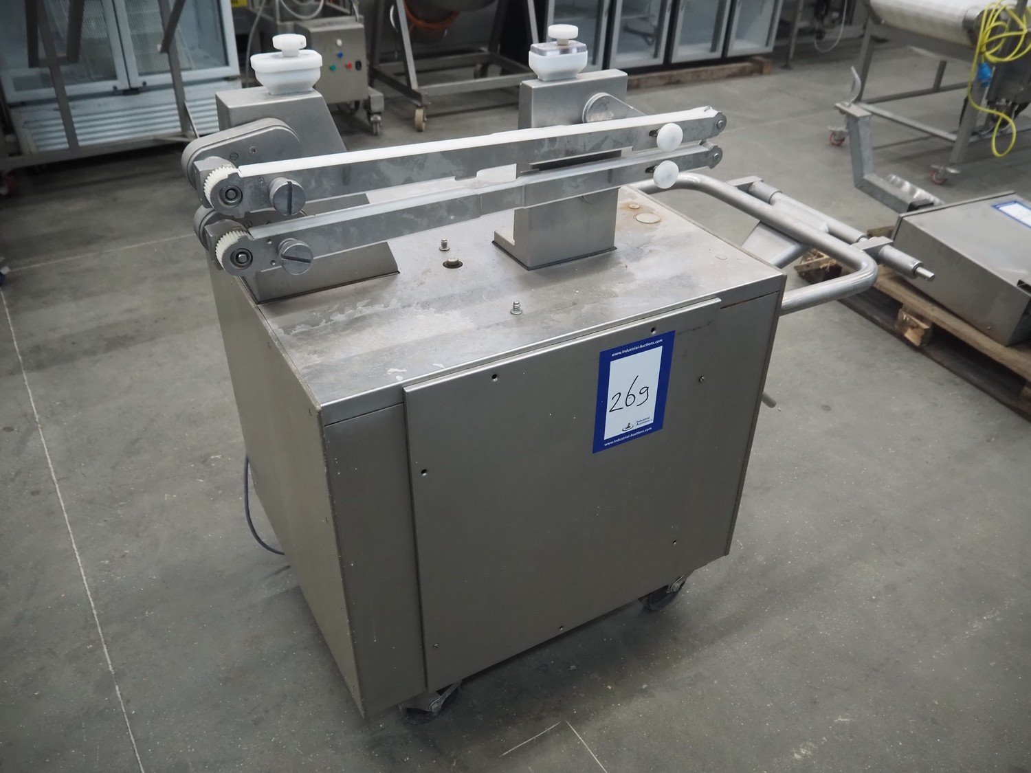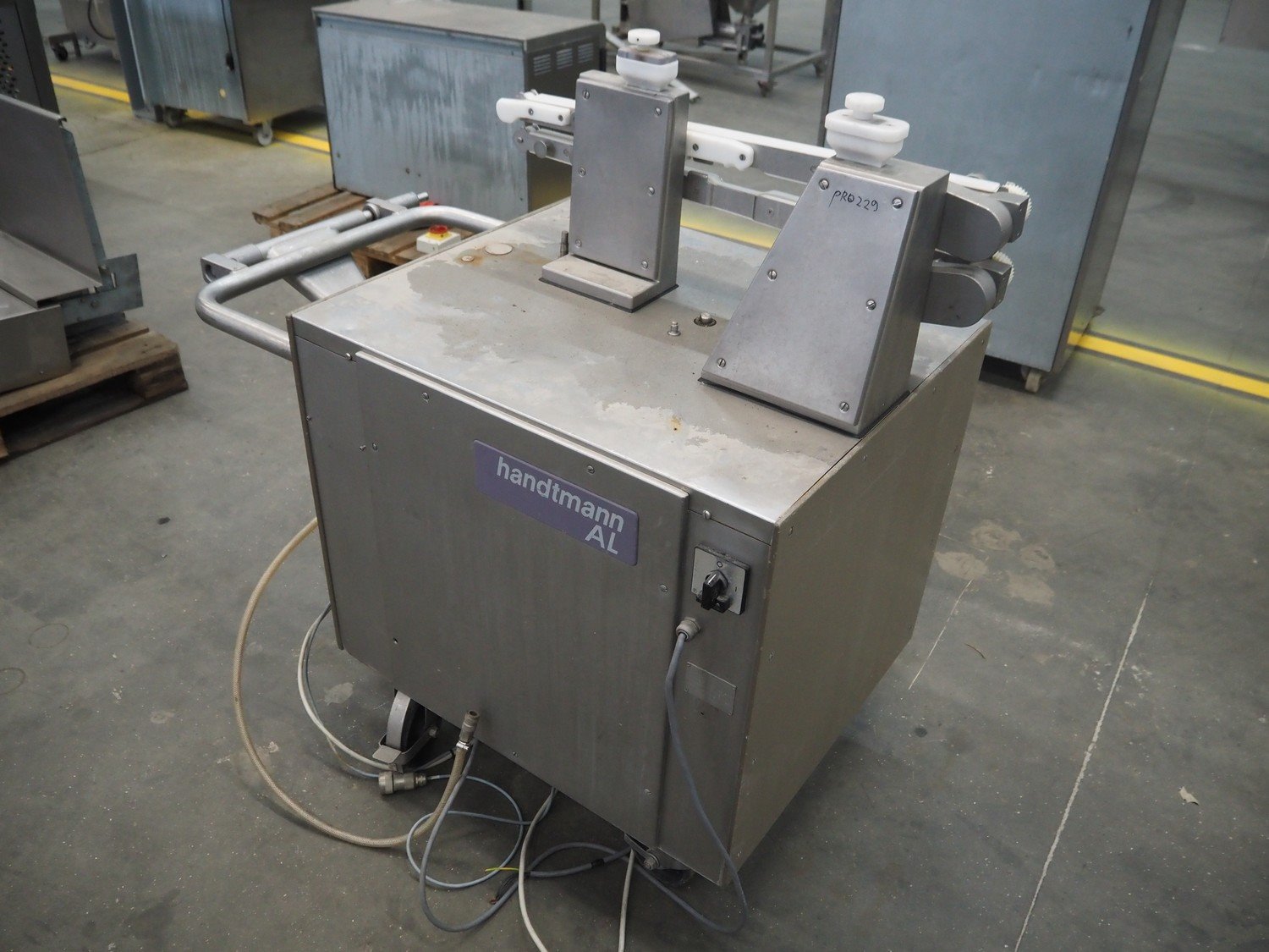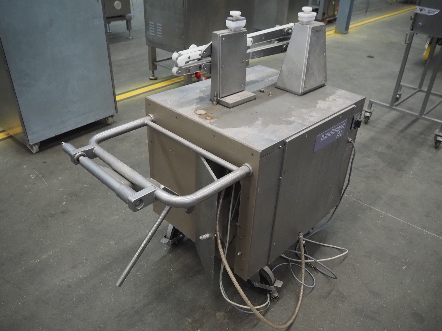 Handtmann mobile linker, type: 115-21, number: 337, year of construction: 2000, 400 V, 50 Hz, 3.5 A, 2.5 kW, dimensions: 1300 mm x 700 mm x 1250 mm.