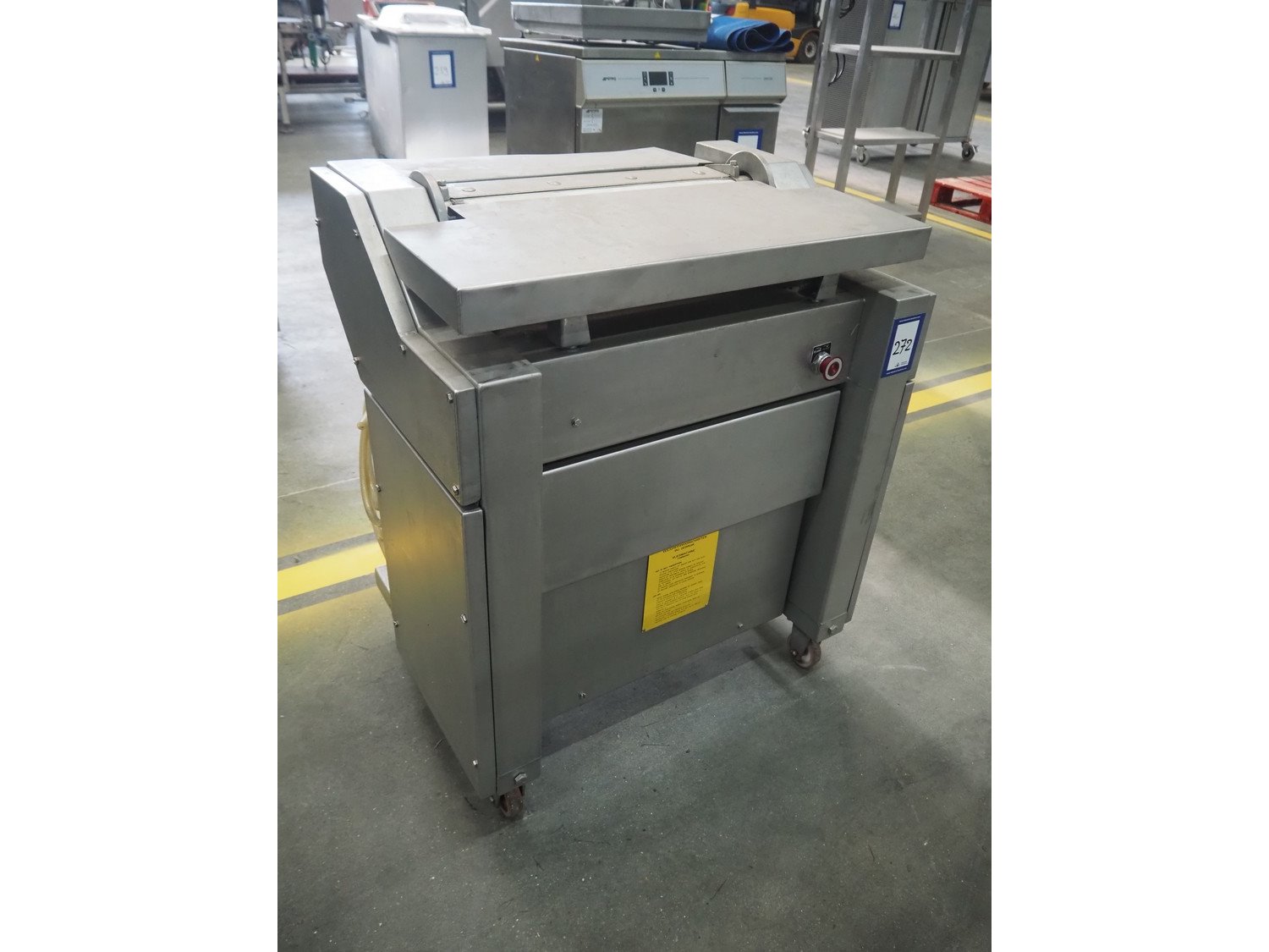Mobile skinning machine, working width: 500 mm, total dimensions: 900 mm x 660 mm x 980 mm.