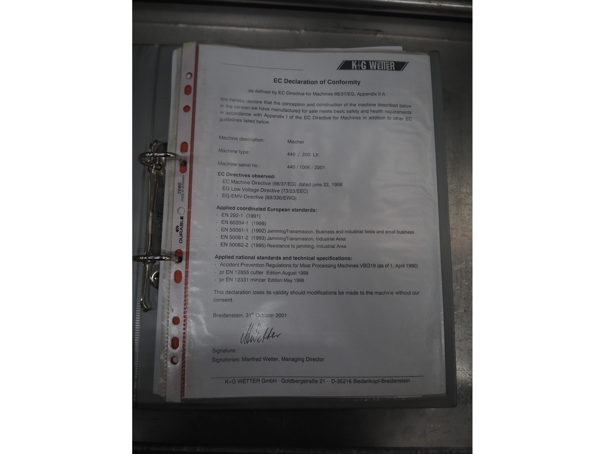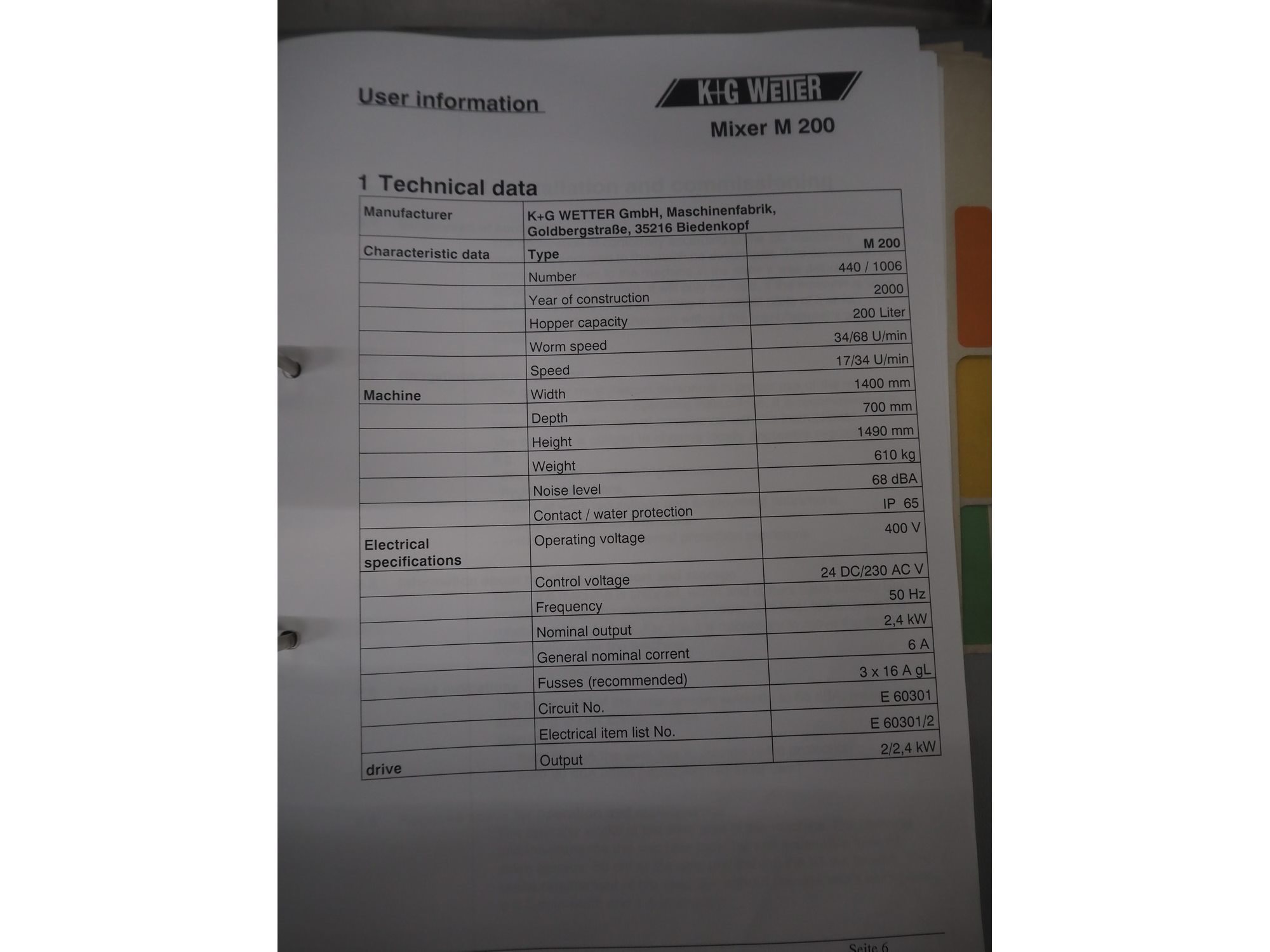 K+G Wetter paddle mixer, type: 440/200 Ltr., machine number: 440/1006, year of construction: 2001, 400 V, 50 Hz, 5.6 A, 2.4 kW, volume: 200 liter, dimensions: 1800 mm x 1000 mm x 2310 mm.