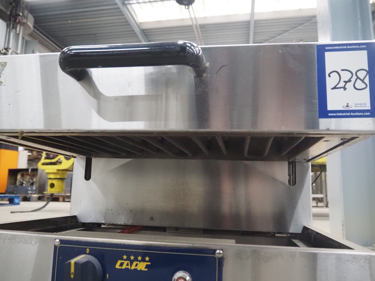 Capic grill, model: W040301, number: 120701053, 400 V, 3 Ph, 50 Hz, dimensions: 650 mm x 650 mm x 550 mm.