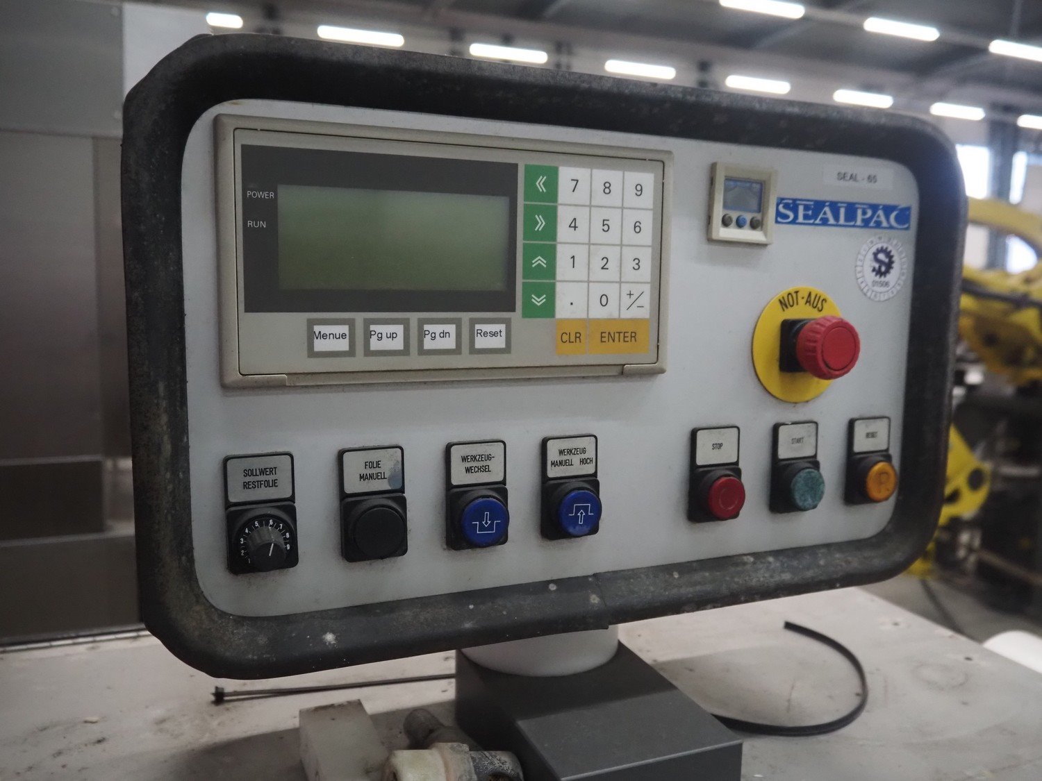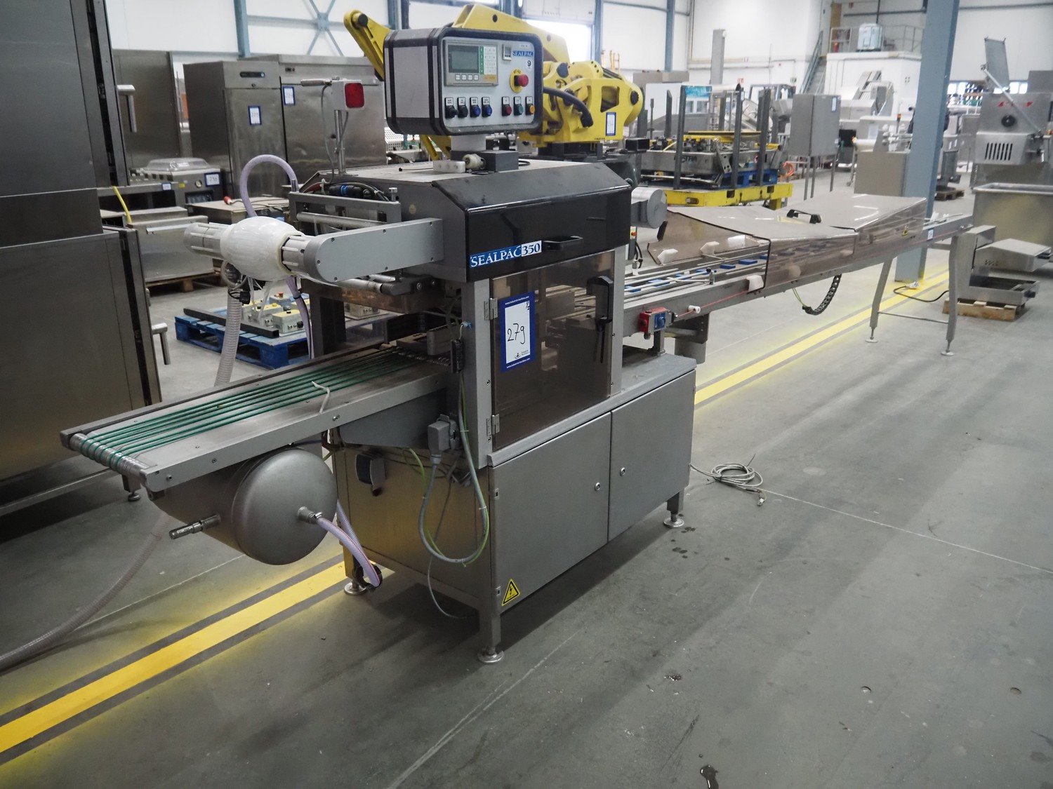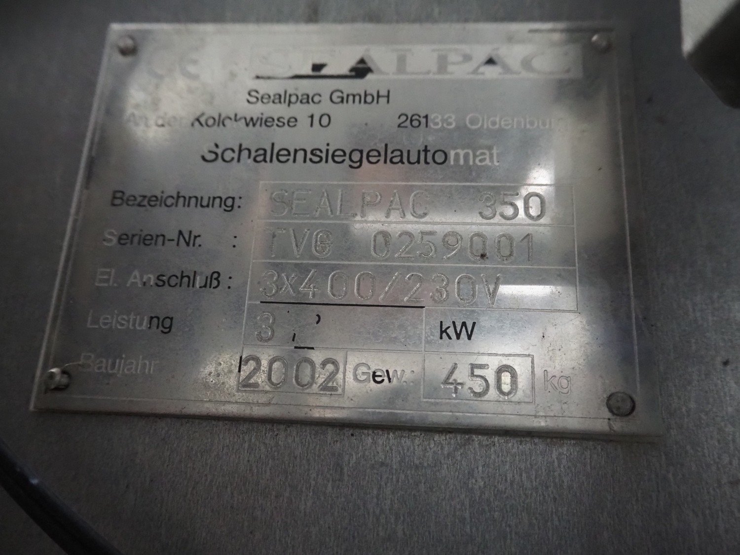 Sealpac traysealer, type: SEALPAC 350, serial number: TVG 0259001, year of construction: 2002, 400/230 V, 3 Ph, 50 Hz, 3 kW, dye: (2x) 145 mm x 210 mm, film width: 230 mm, total dimensions: 4550 mm x 700 mm x 1750 mm.