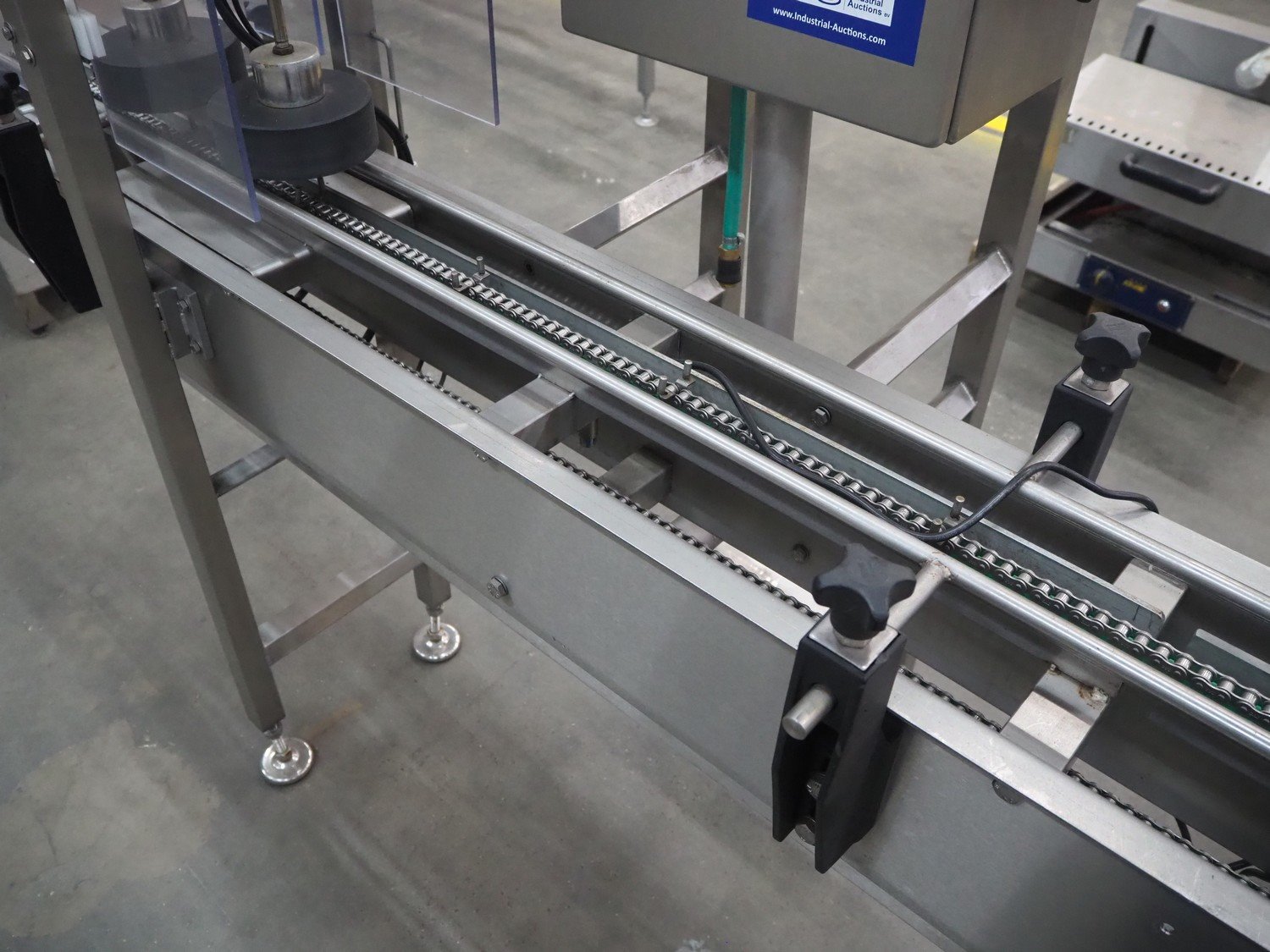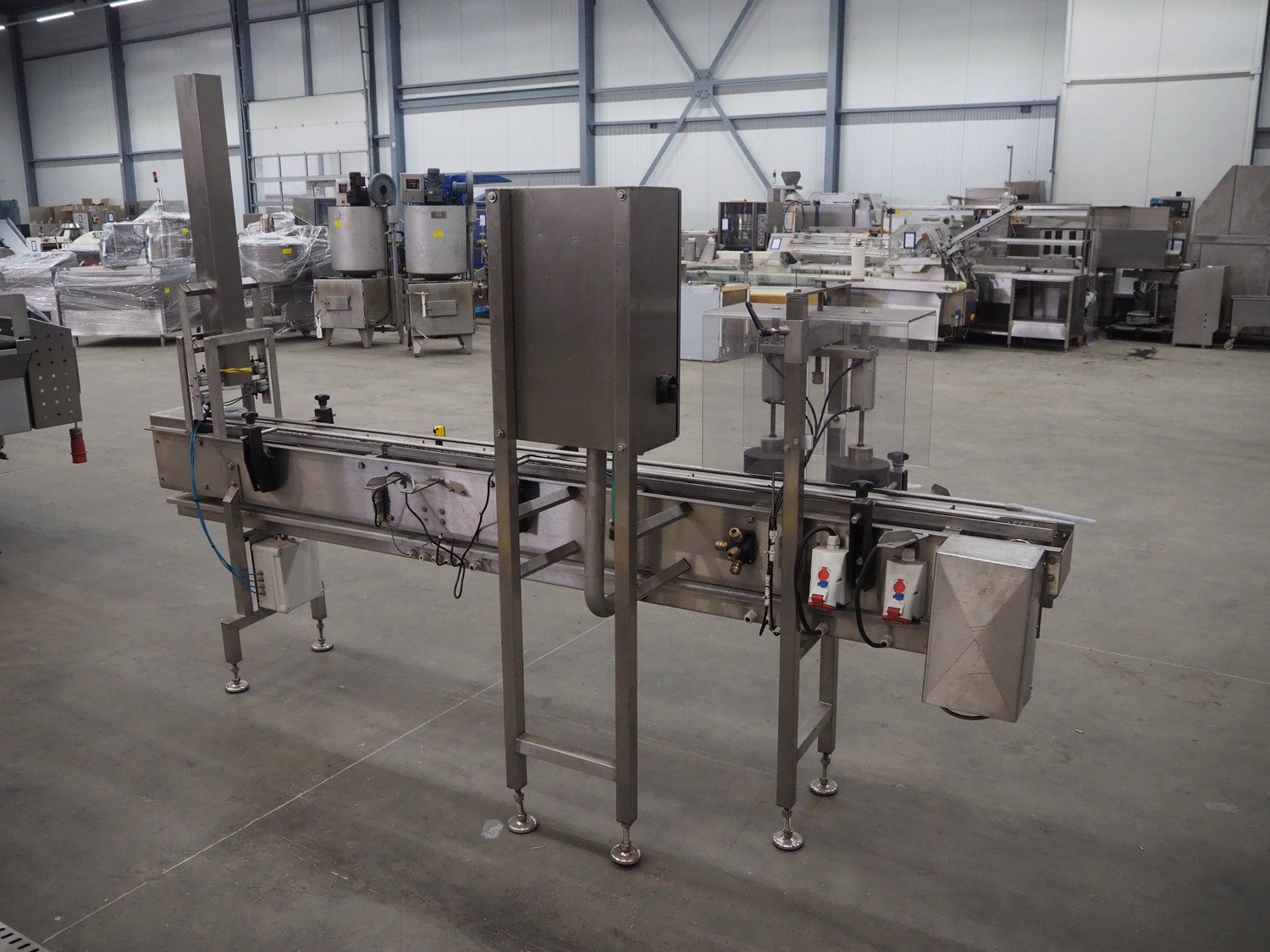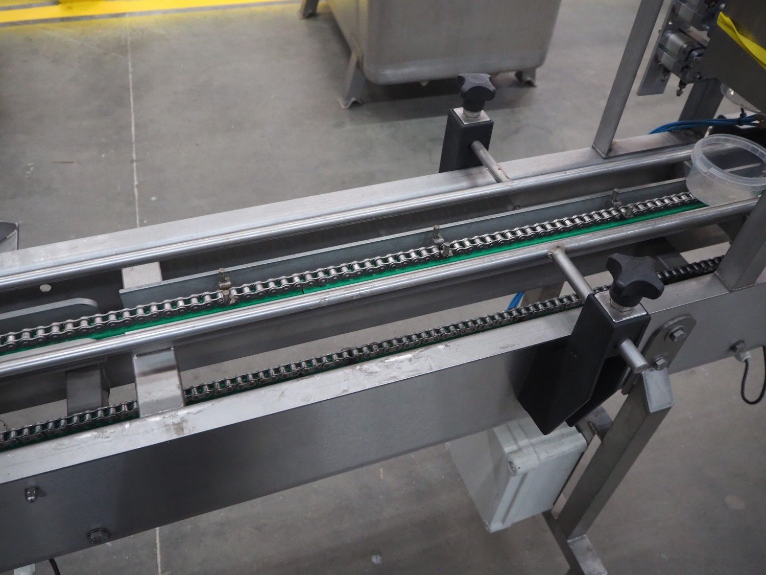 EFM machinery filling and lid closing machine, type: 01, serial number: 1511, year of construction: 2007, chain belt, belt width: 40 mm, lid diameter: 80 mm, total dimensions: 3100 mm x 750 mm x 2050 mm.