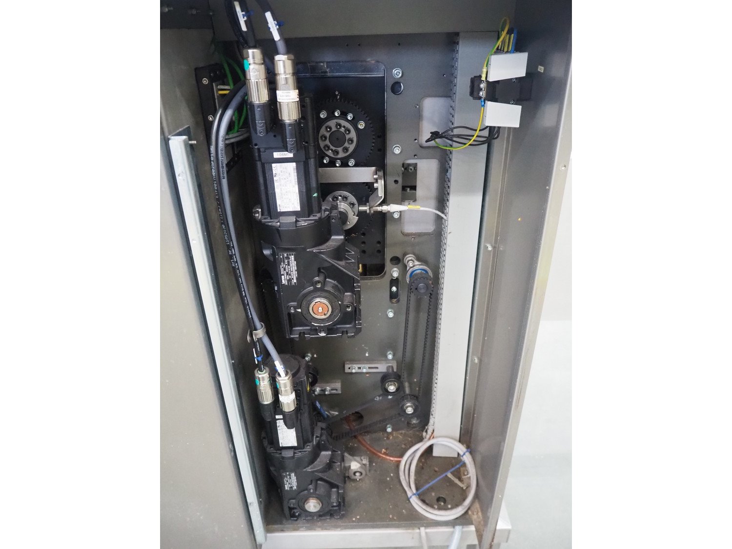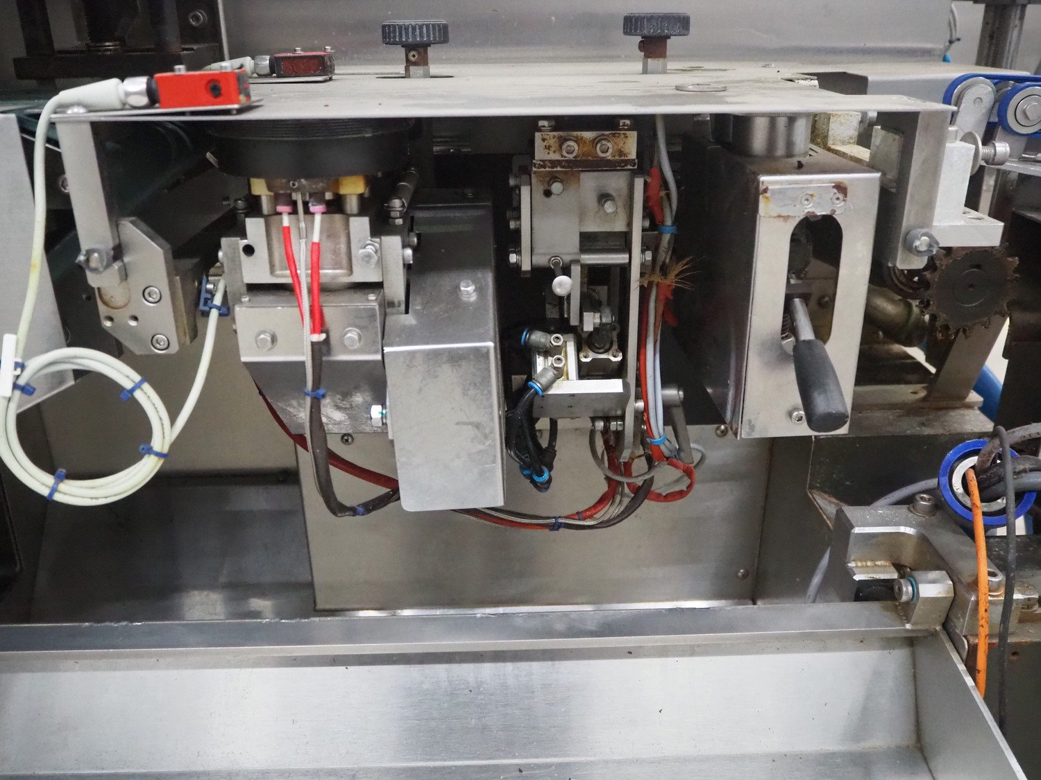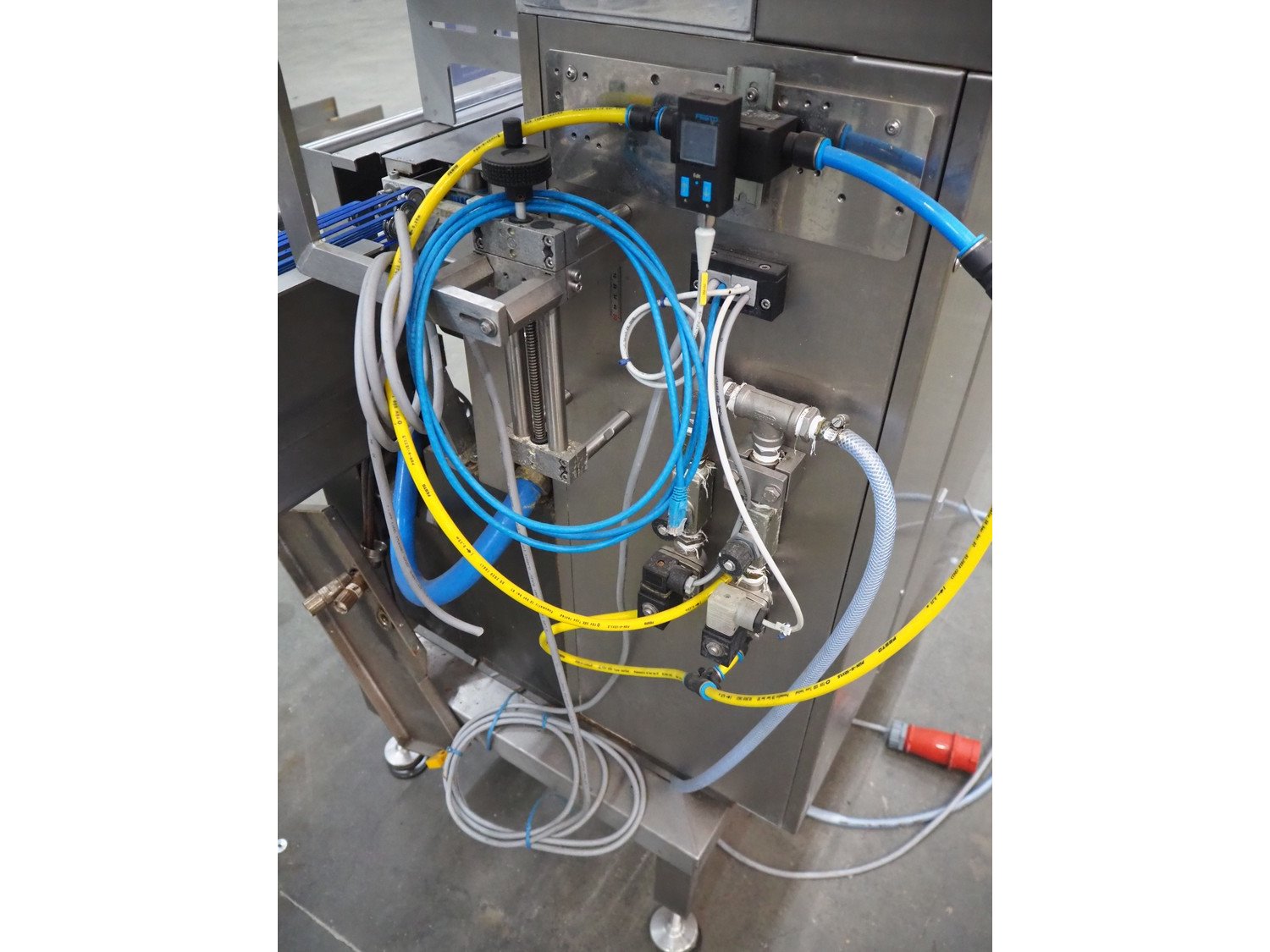 Omori Europe B.V. flowpacker, type: S-5015EU-BX, serial number: X18228, year of construction: 2020, 400 V, 3 Ph, 50 Hz, 10 kW, weight: 1500 kg, seal length: 250 mm, plastic outfeed belt, belt width: 180 mm, total dimensions: 3900 mm x 1100 mm x 1850 mm.