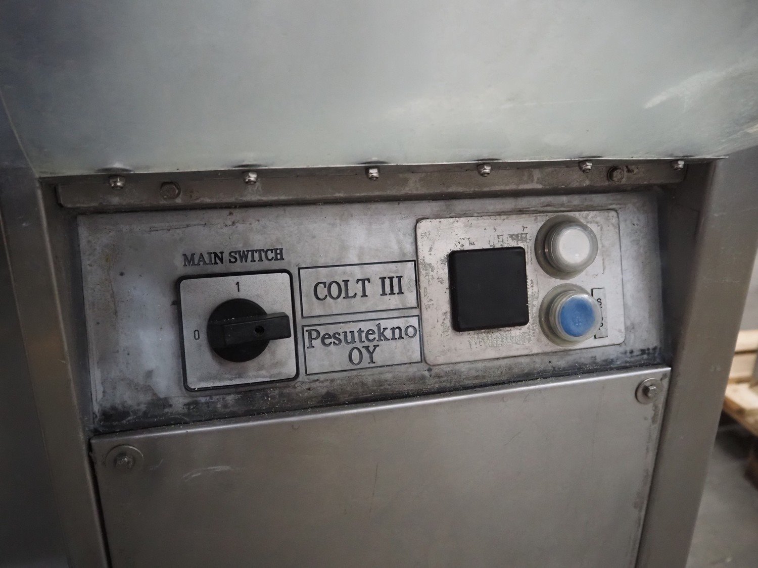 Pesutekno dishwasher, inside dimensions: 1080 mm x 650 mm, total dimensions: 1200 mm x 820 mm x 1720 mm.