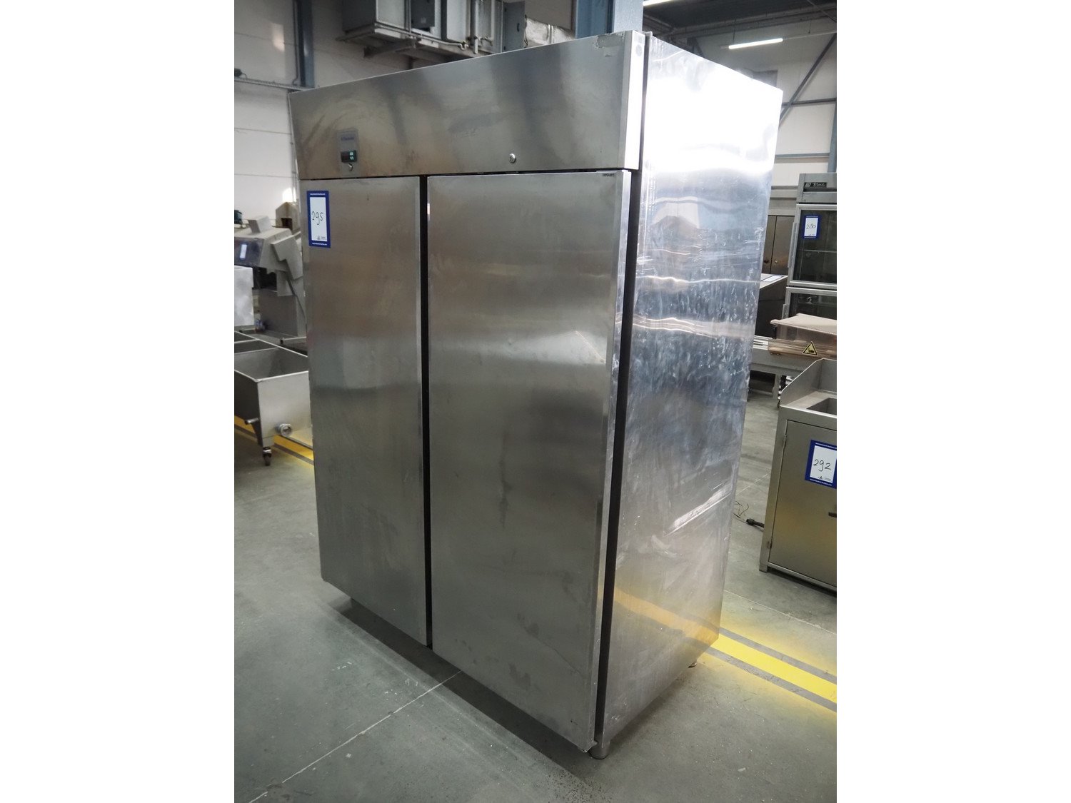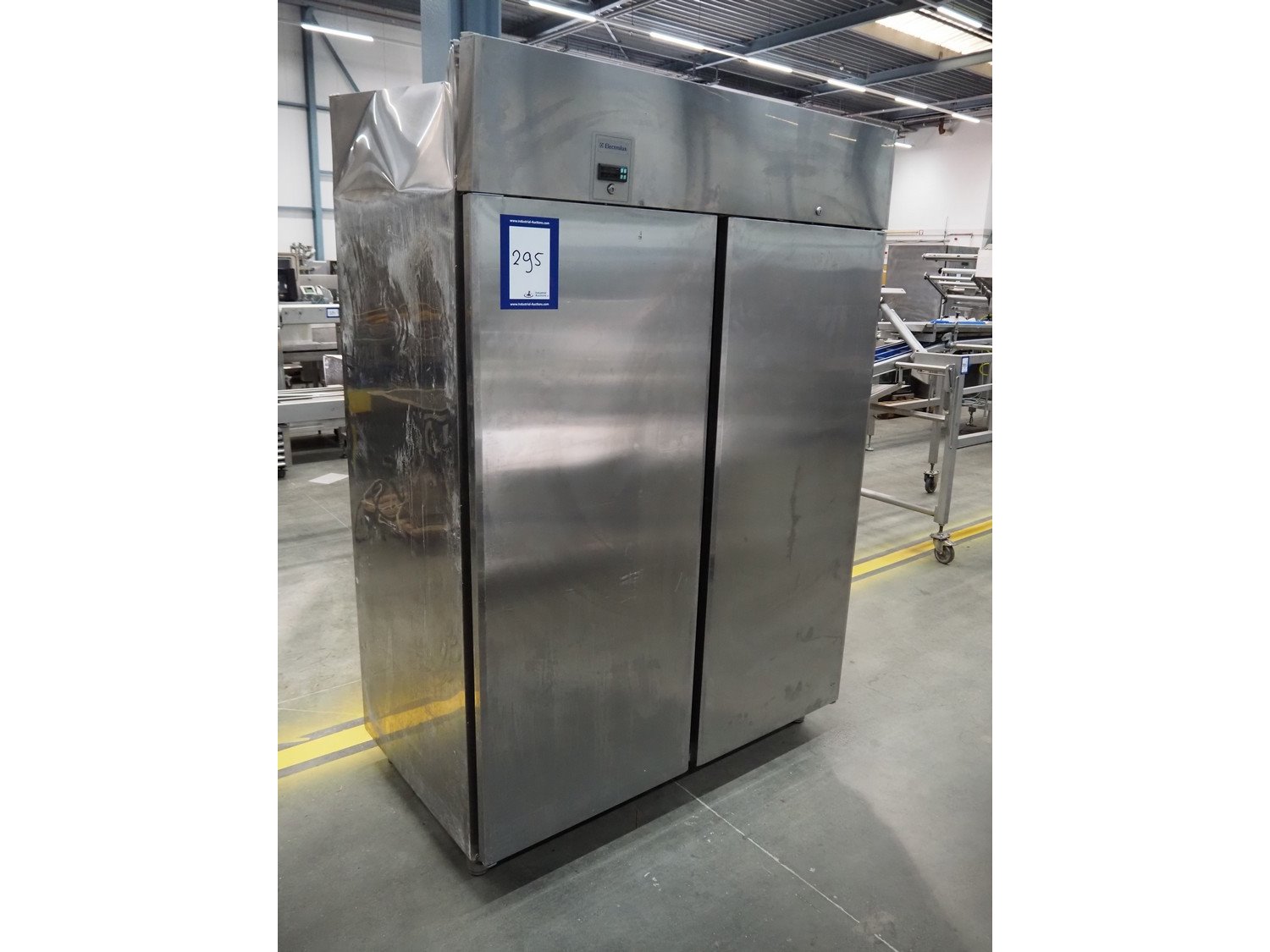 Electrolux 2-door freezer, model: RE4142FF, serial number: 30210002, year of construction: 2013, 230 V, 1 Ph, 50 Hz, 4.9 A, refrigerant: R404a, 0.29 kg, dimensions: 1430 mm x 840 mm x 2050 mm. Damaged.