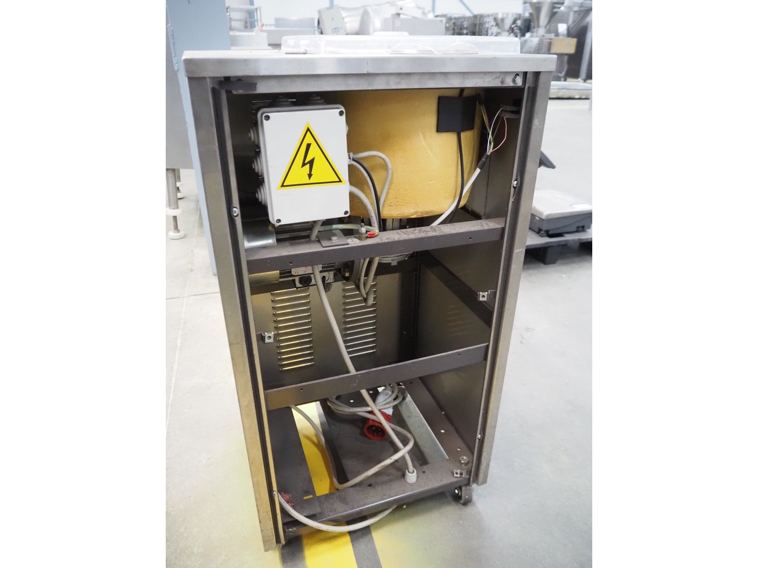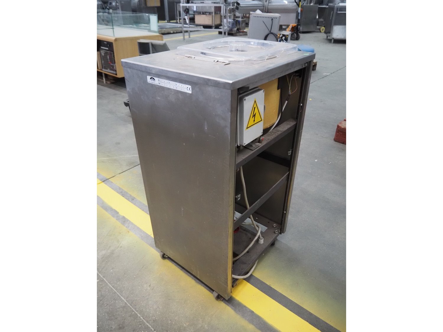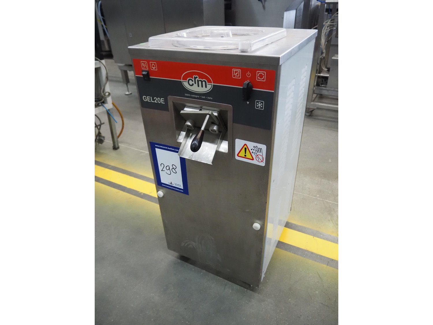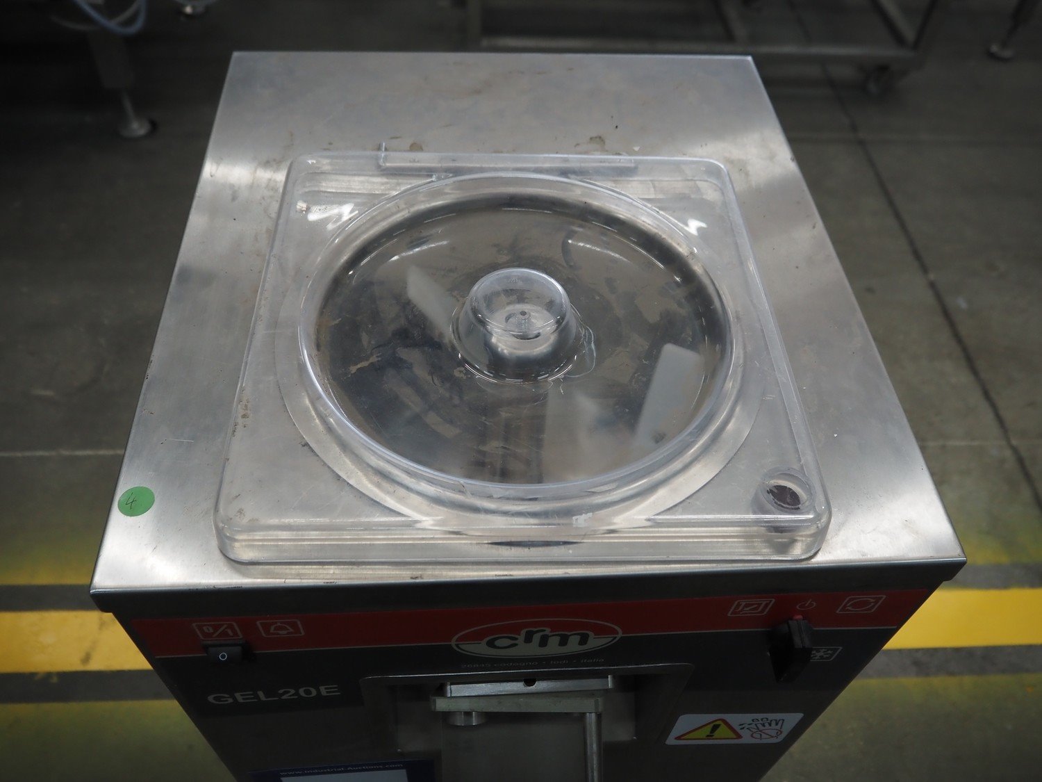 CRM mobile ice cream machine, model: GEL20E SIF, serial number: 02/328, year of construction: 2000, 380 V, 3 Ph, 50 Hz, 2.2 A, 0.66 kW, dimensions: 640 mm x 460 mm x 1000 mm. Missing 1 cover.