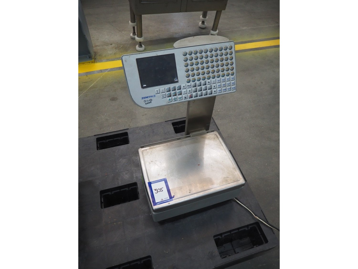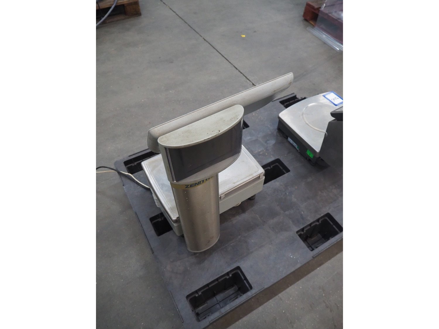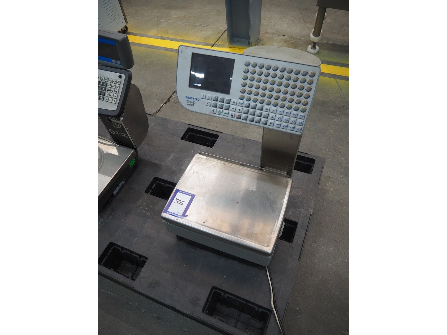 CZB weighing scale with label printer, model: EQUA 5000, serial number: 120950249, 110/230 V, 50/60 Hz, 24 W, maximum capacity: 12 kg, minimum capacity: 40 g, e= 2 g, T = -9.998 kg, dimensions: 500 mm x 360 mm x 480 mm.