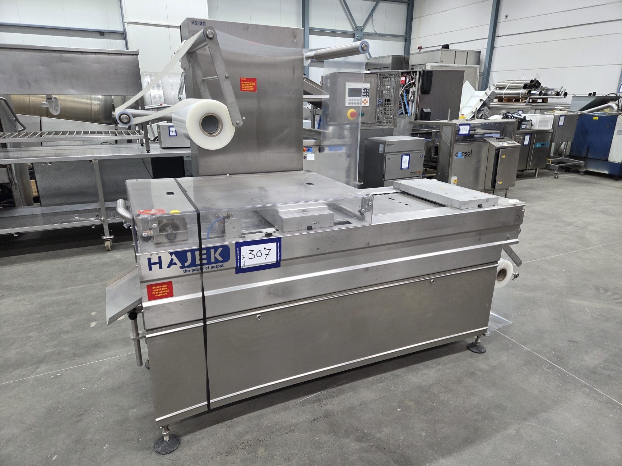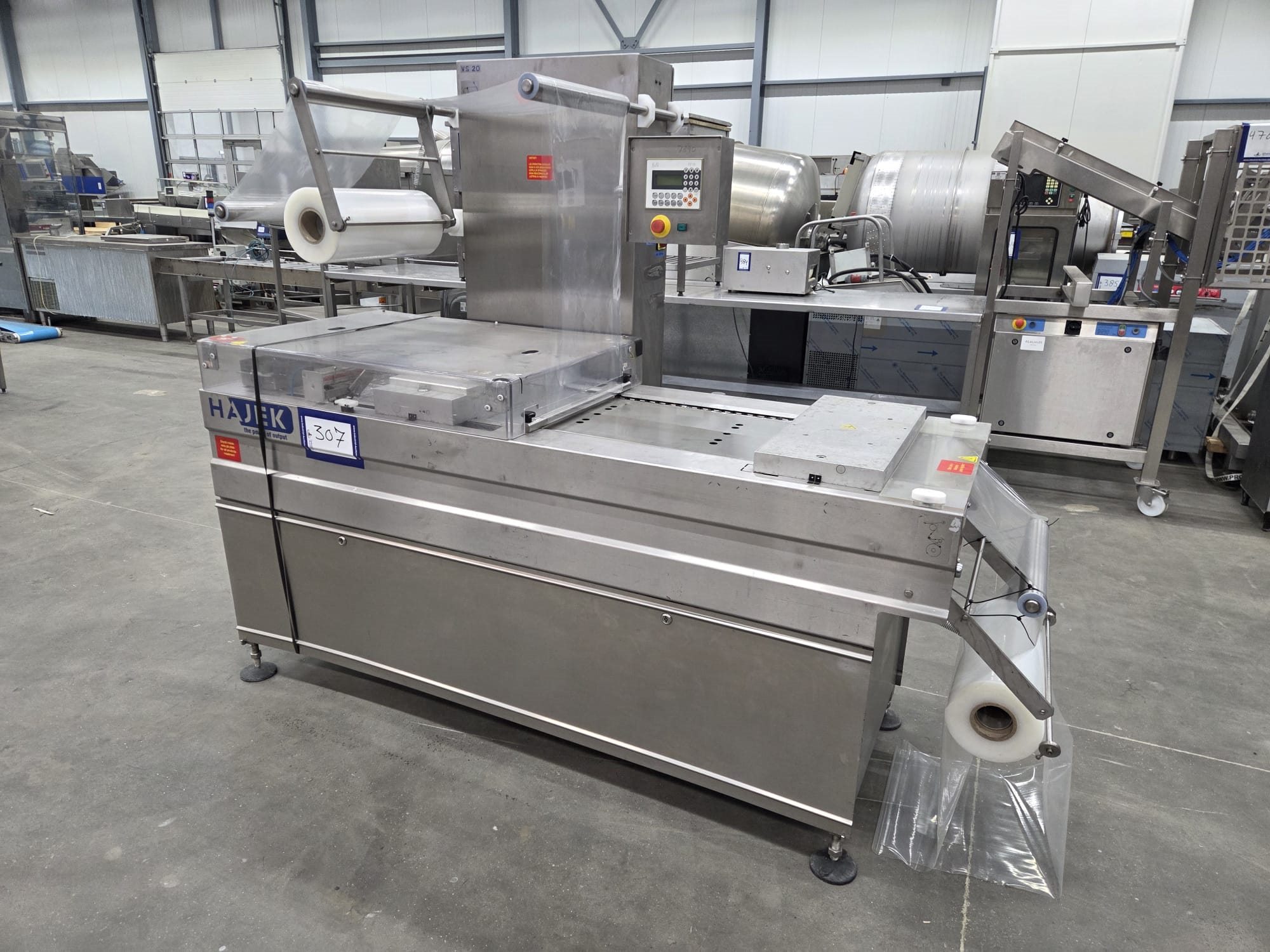 Hajek thermoformer, type: VS20/420-100, number: 135227, year of construction: 2011, 230/400 V, 3 Ph, 50 Hz, 11 kW, film width: 420 mm, dyes: 180 m x 180 mm, total dimensions: 2320 mm x 960 mm x 1770 mm.