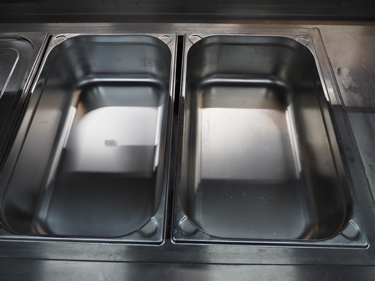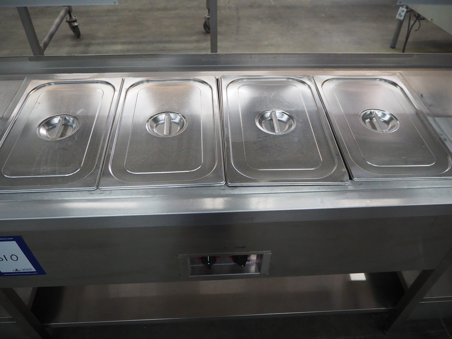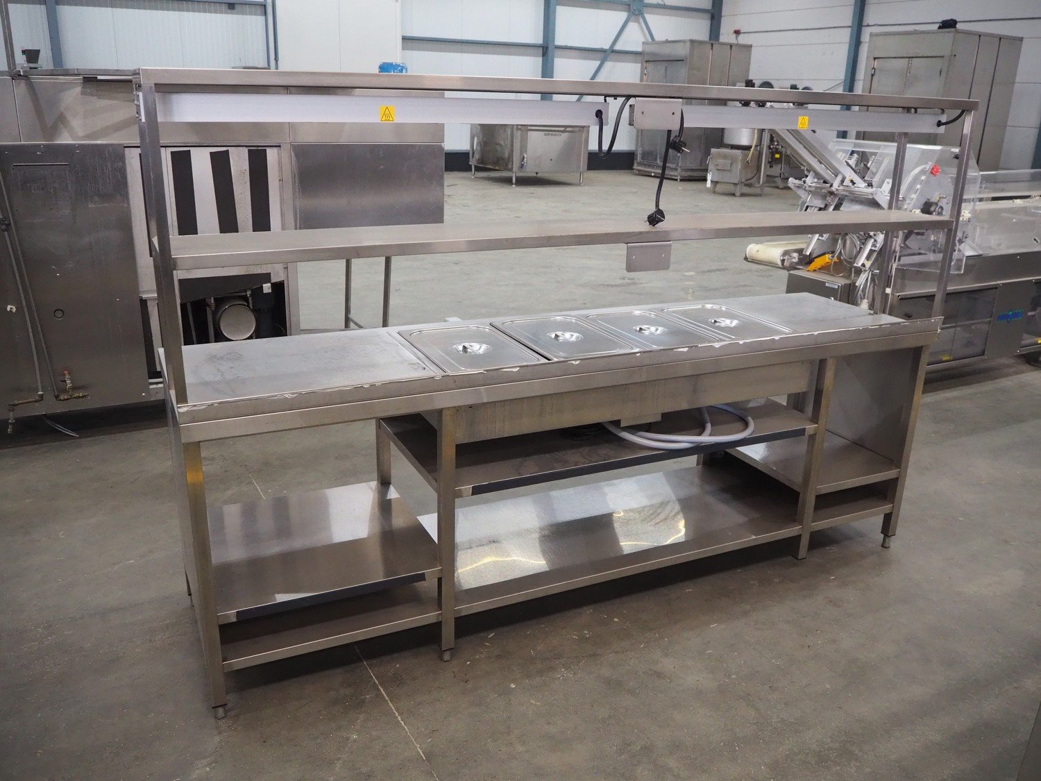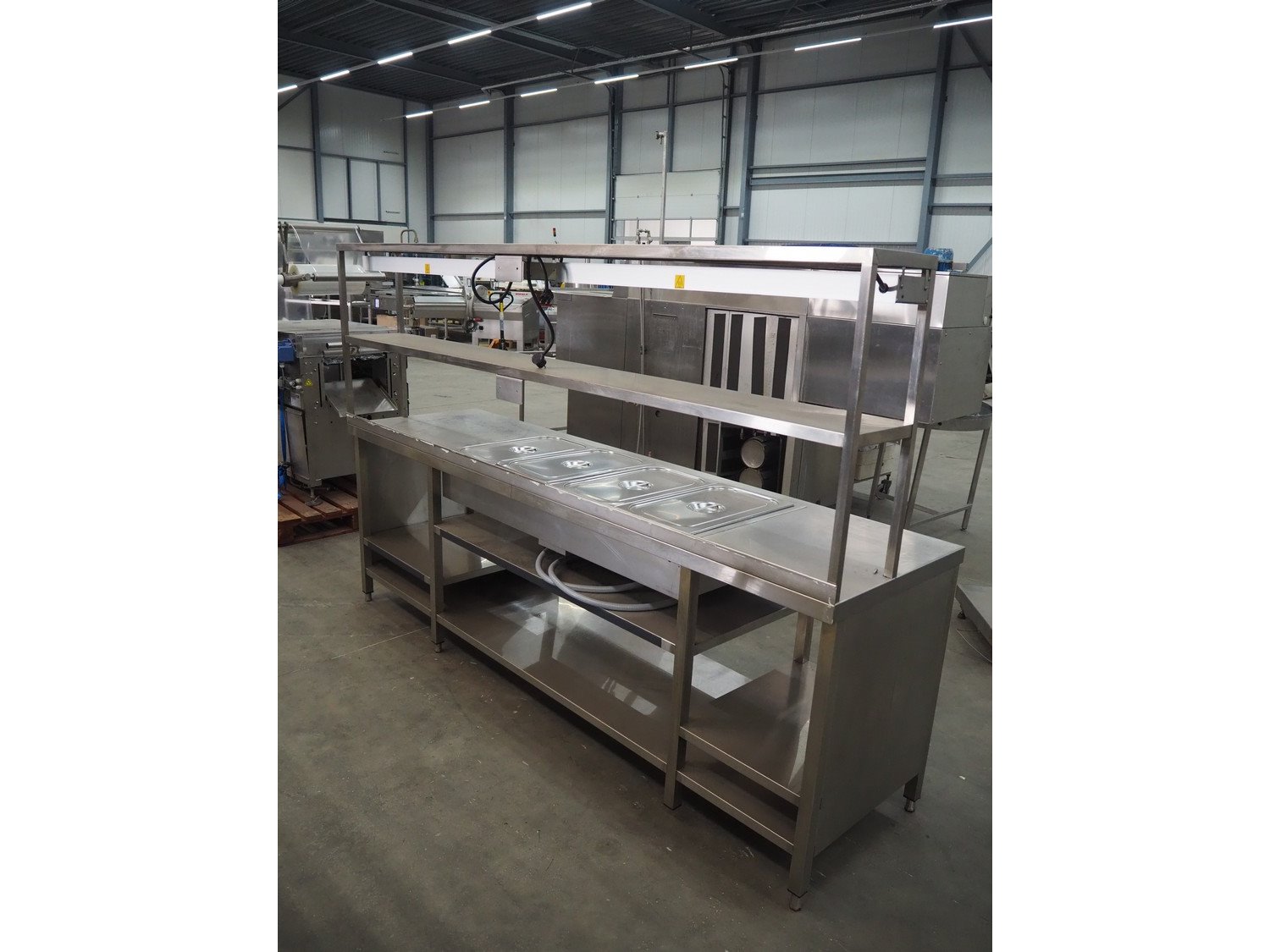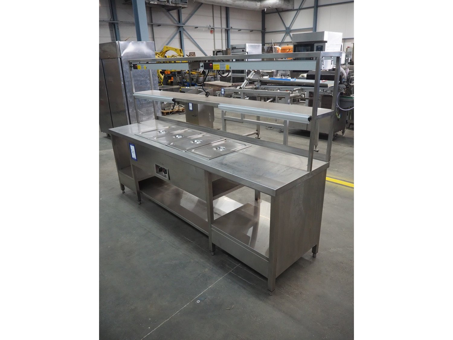 Hatco s/s kitchen counter with au bain marie, model: GRAH-48, serial number: 7959302109, 220-230 V, 50-60 Hz, 5/5.2 A, 1100/1202 W, dimensions: 2600 mm x 720 mm x 1710 mm.