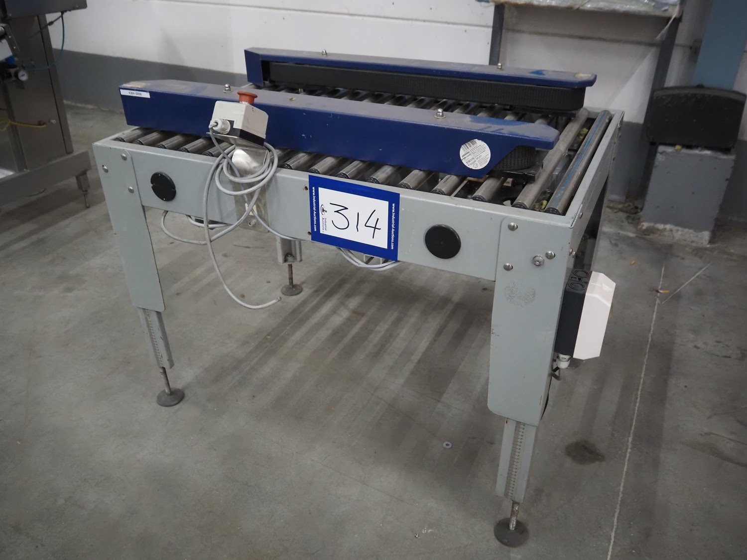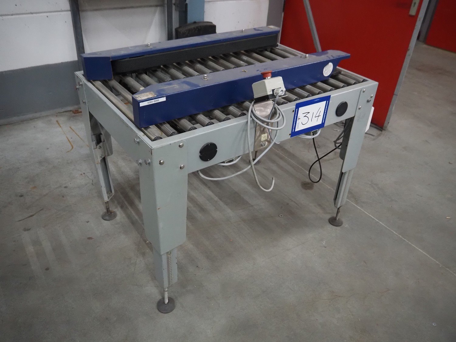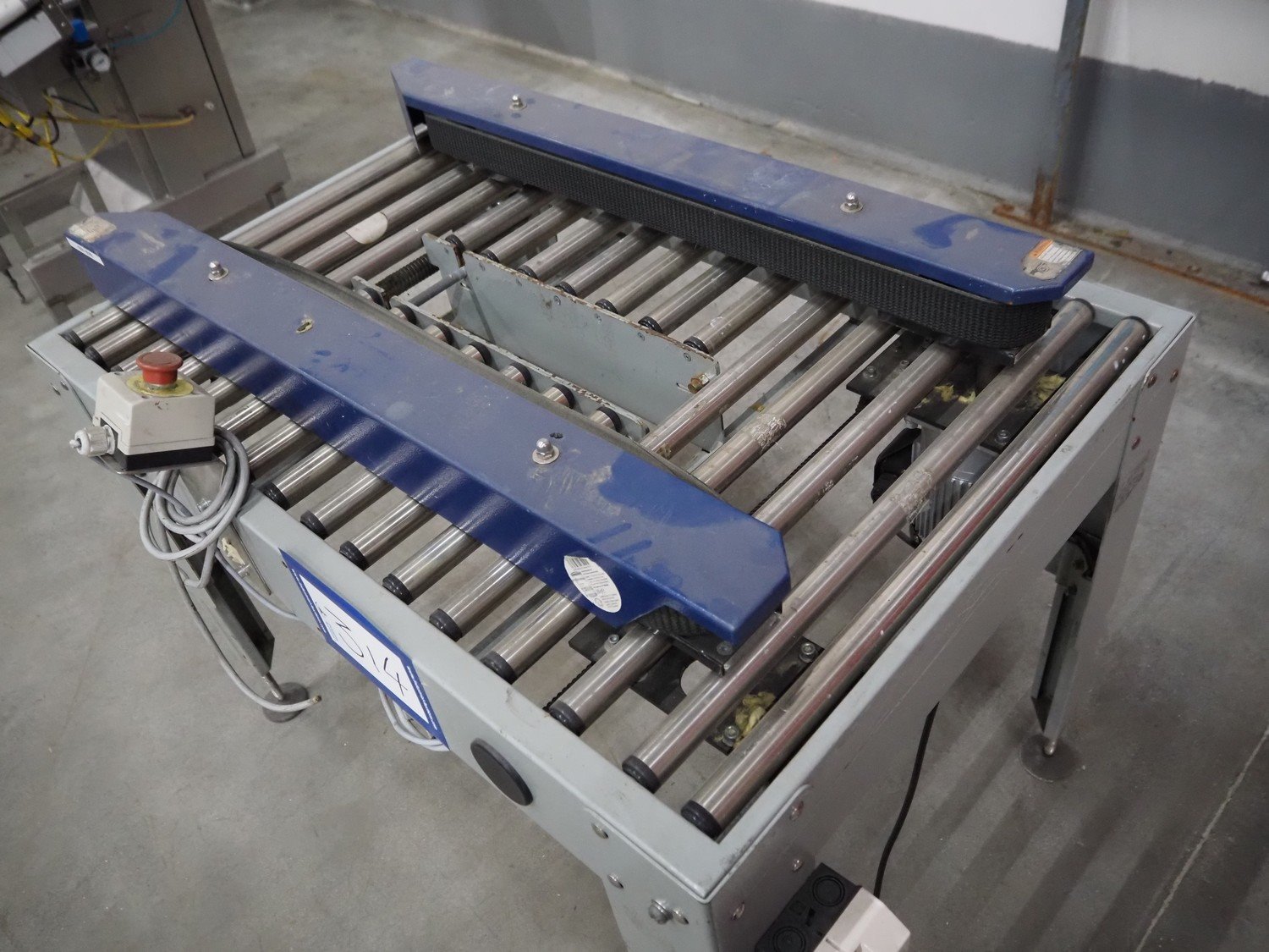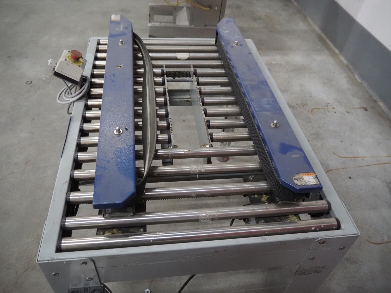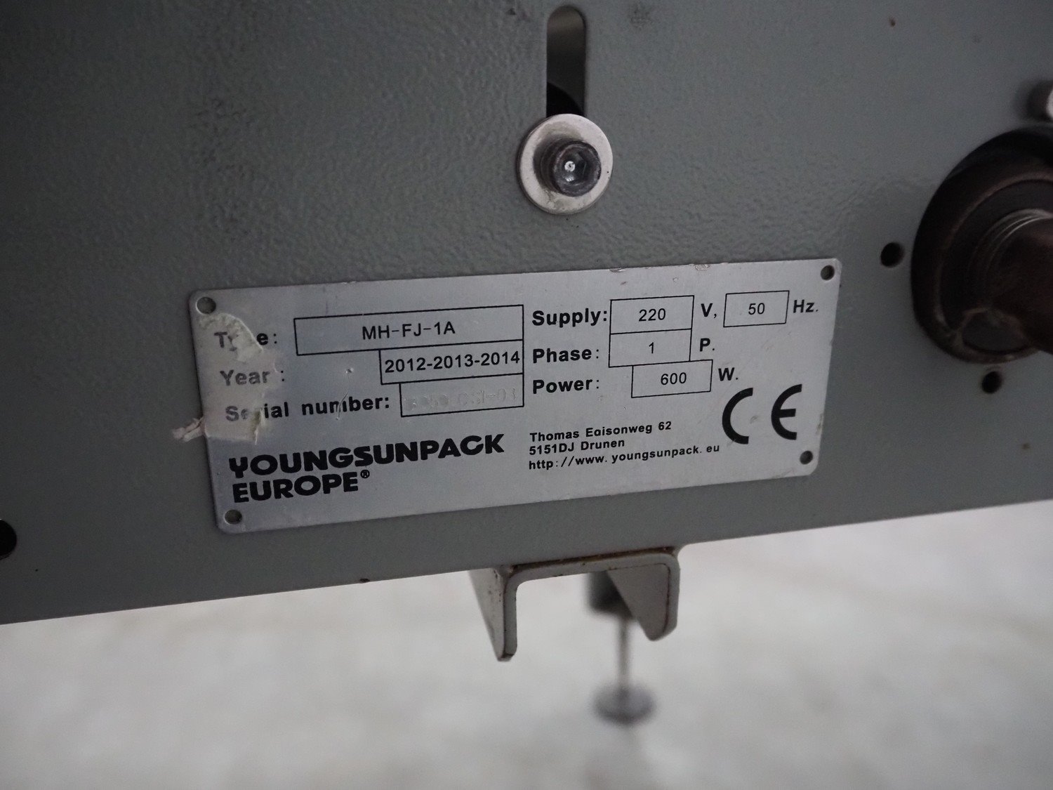 Youngsunpack box closing machine, type: MH-FJ-1A, serial number: 130508C S1-03, year of construction: 2012/2013/2014, 220 V, 1 Ph, 50 Hz, 600 W, aluminium rollers, roller width: (14x) 280 mm and (8x) 680 mm, total dimensions: 1100 mm x 800 mm x 900 mm. Incomplete.