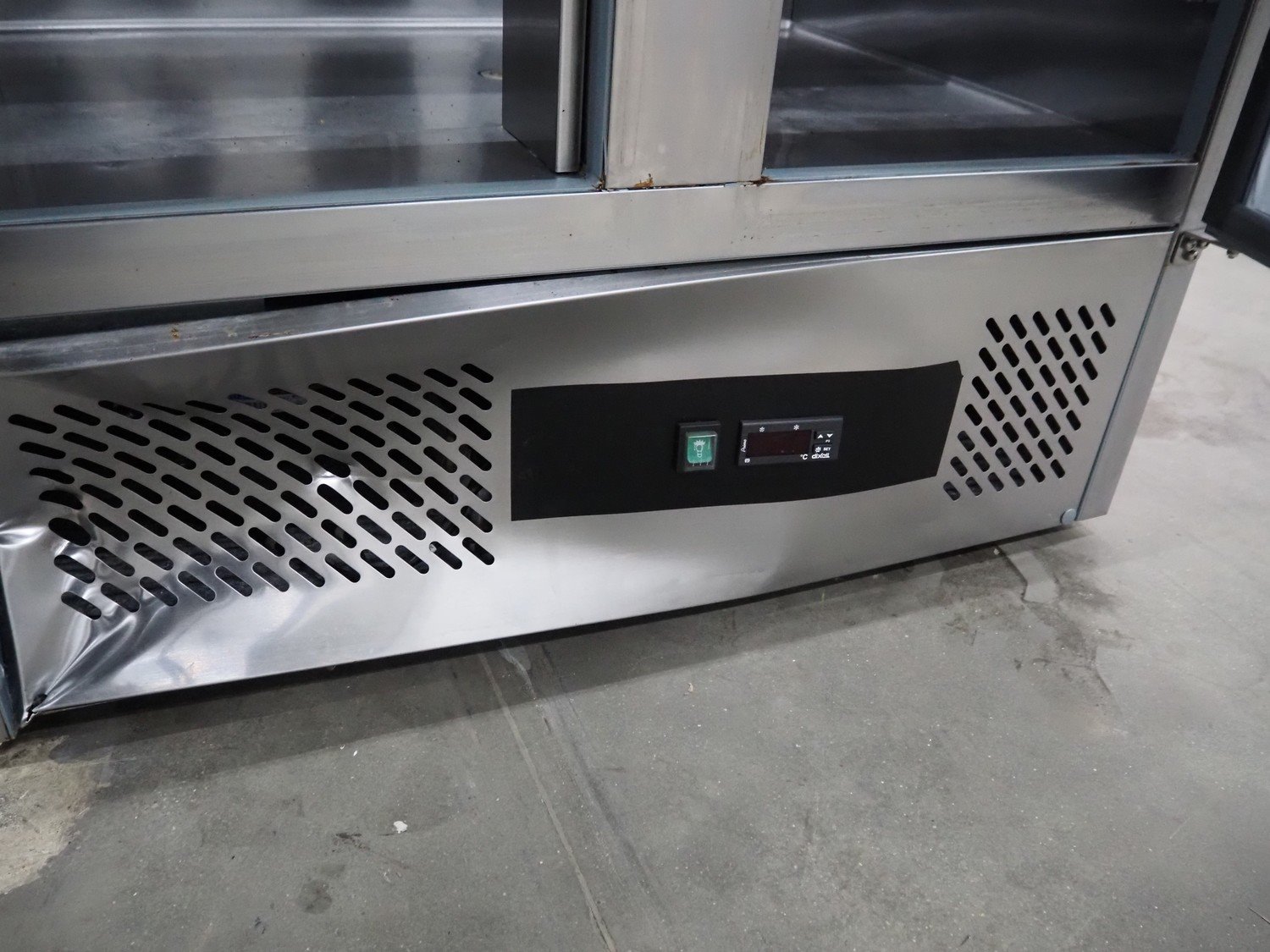 Combisteel refrigerator, model: SEC900, serial number: 277439, 230 V, 50 Hz, 1.6 A, 230 Watt, refrigerant: R134a / 165 gram, dimensions: 900 mm x 700 mm x 870 mm.