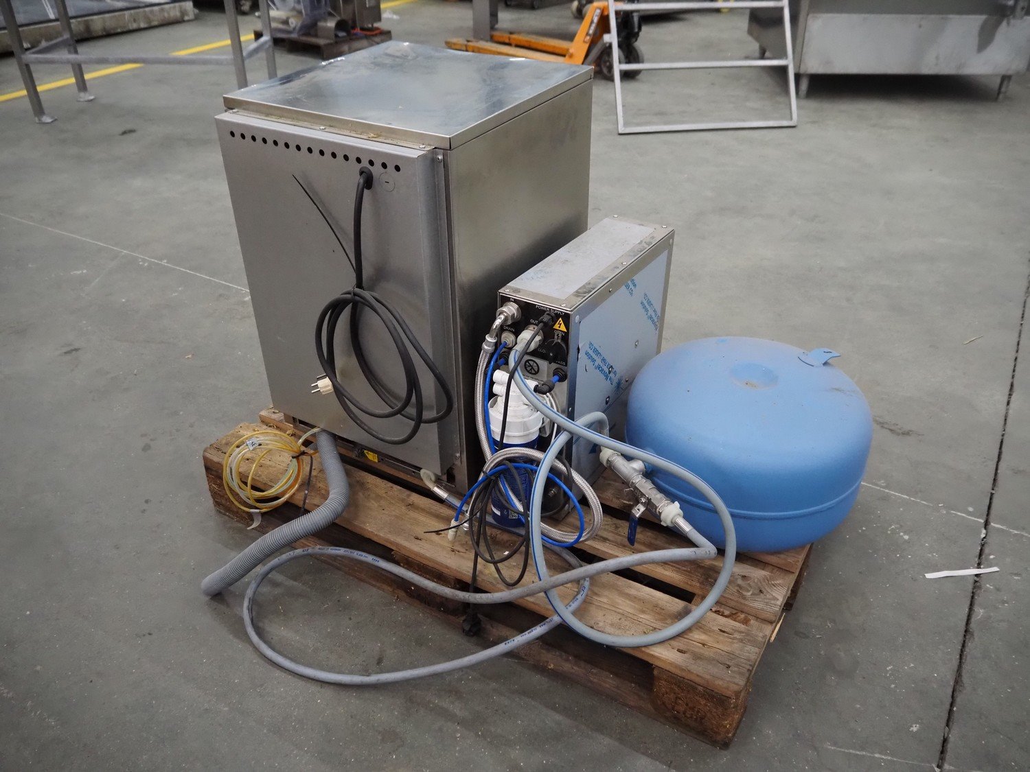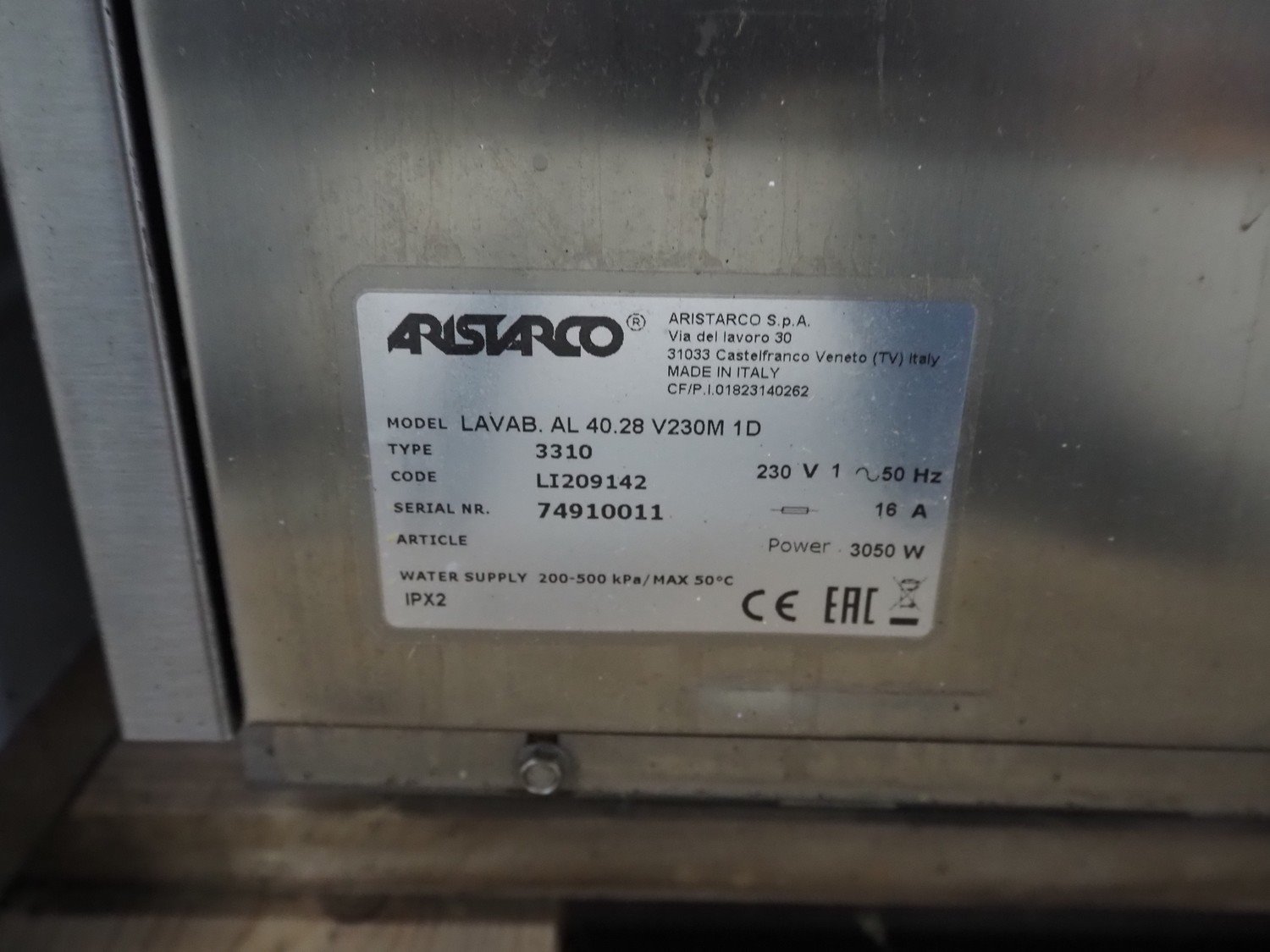 Aristarco dishwasher, model: Lavab. AL 40.28 V230M 1D, type: 3310, serial number: 7491001, 230 V, 1 Ph, 50 Hz, 16 A, 3050 W, dimensions: 480 mm x 550 mm x 750 mm. Including osmos maxi boiler.