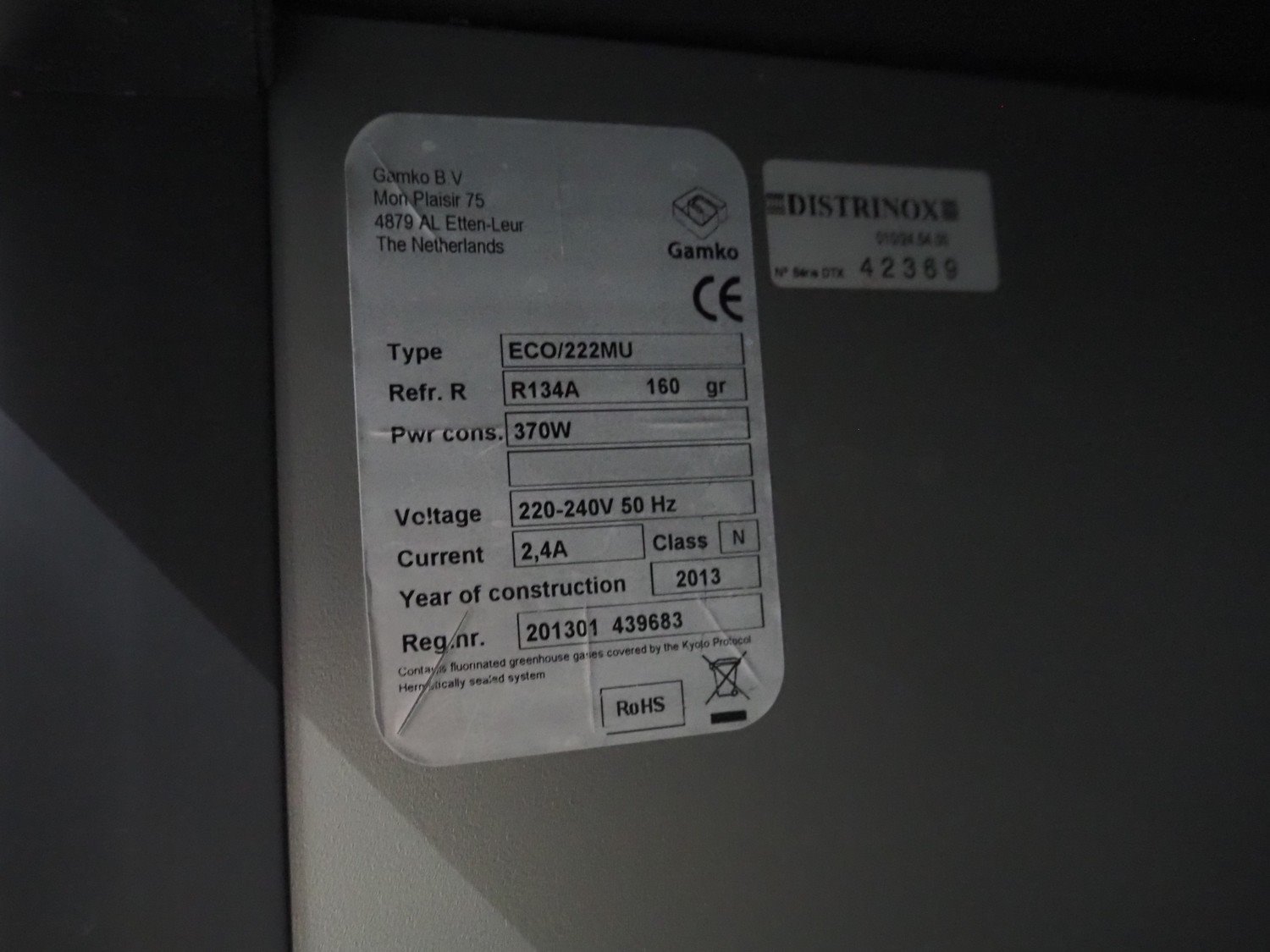 Gamko refrigerator, type: ECO/222MU, year of construction: 2013, 220-240 V, 50 Hz, 370 Watt, refrigerant: R134A / 160 gram, floor dimensions: 370 mm x 480 mm, total dimensions: 800 mm x 2000 mm x 1040 mm.