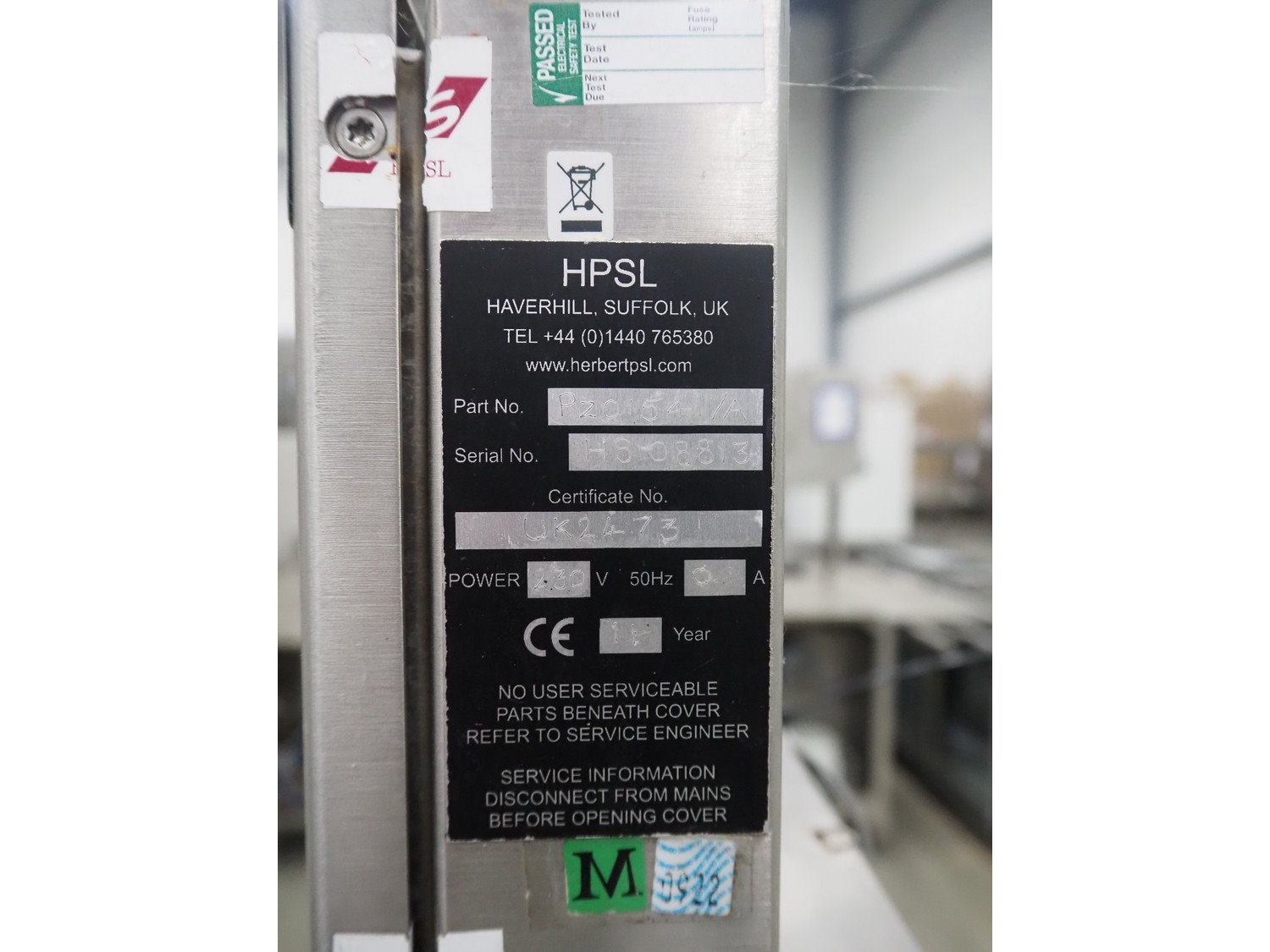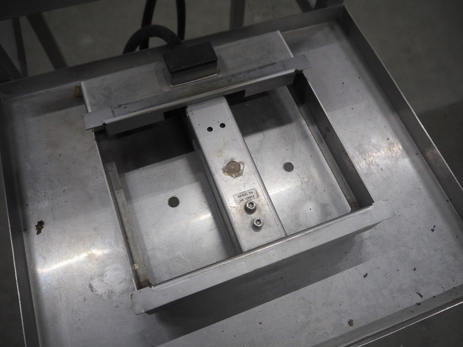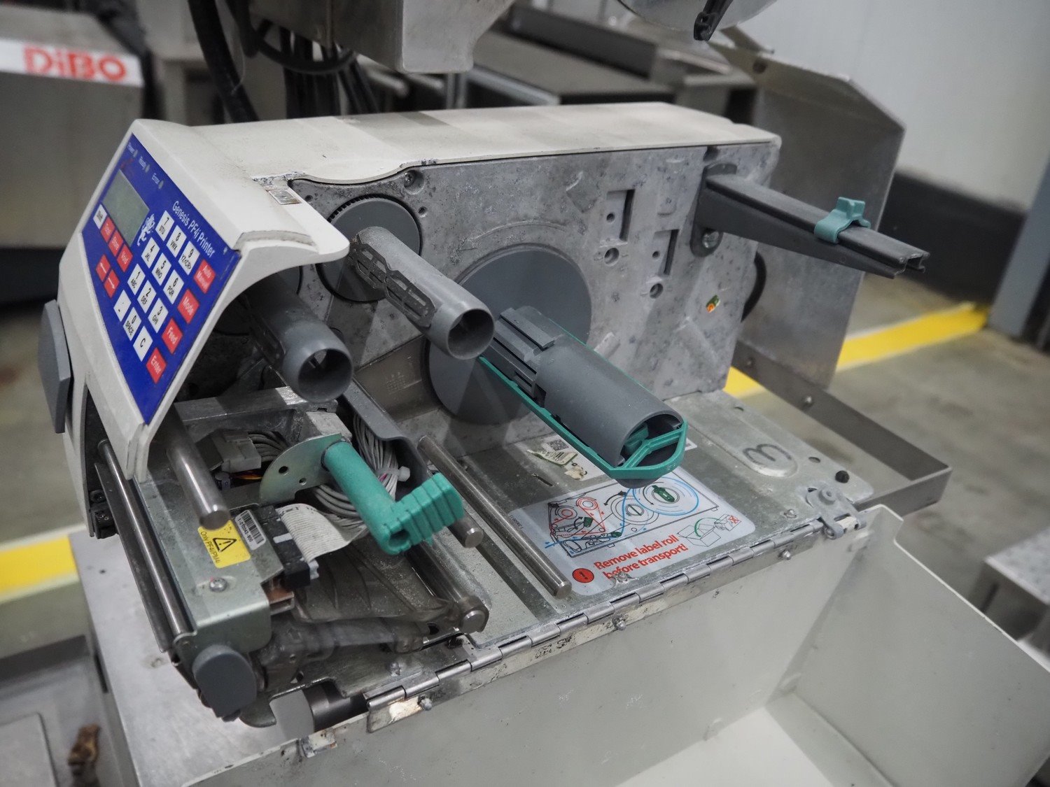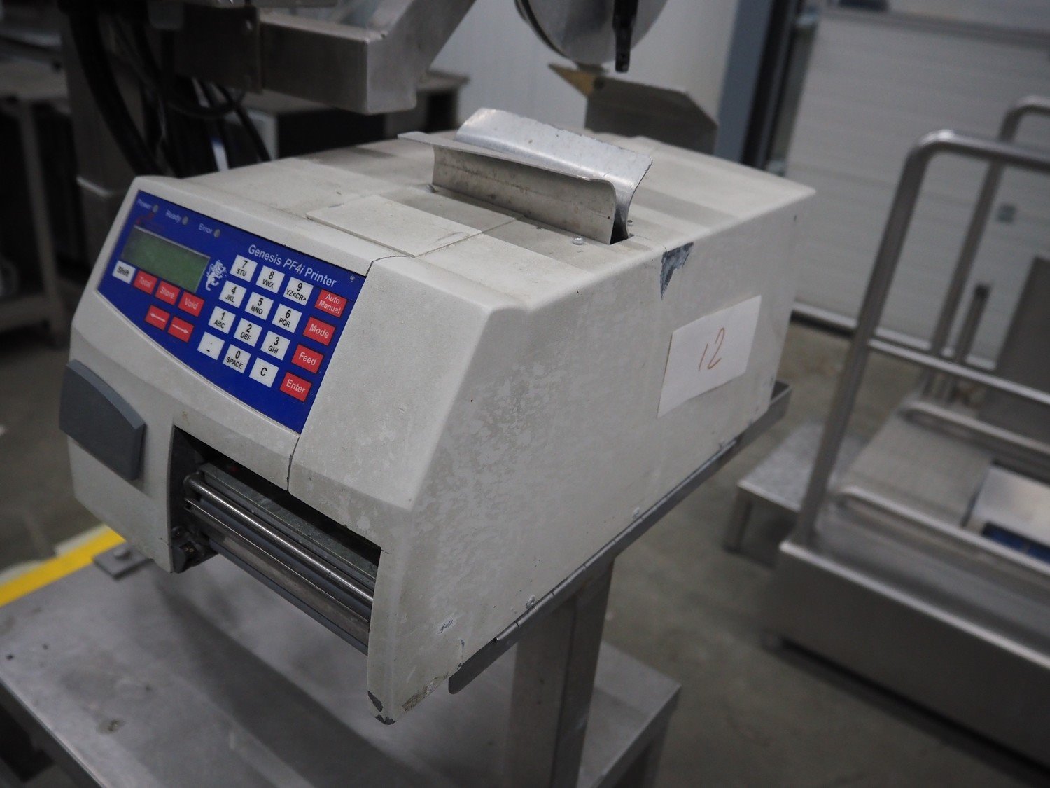 Herbert weighing machine with labeller, type: IH500, maximum: 3 kg, minimum weight: 0.02 kg, e= 0.001 kg, T = -1.000 kg, dimensions: 900 mm x 550 mm x 1600 mm.