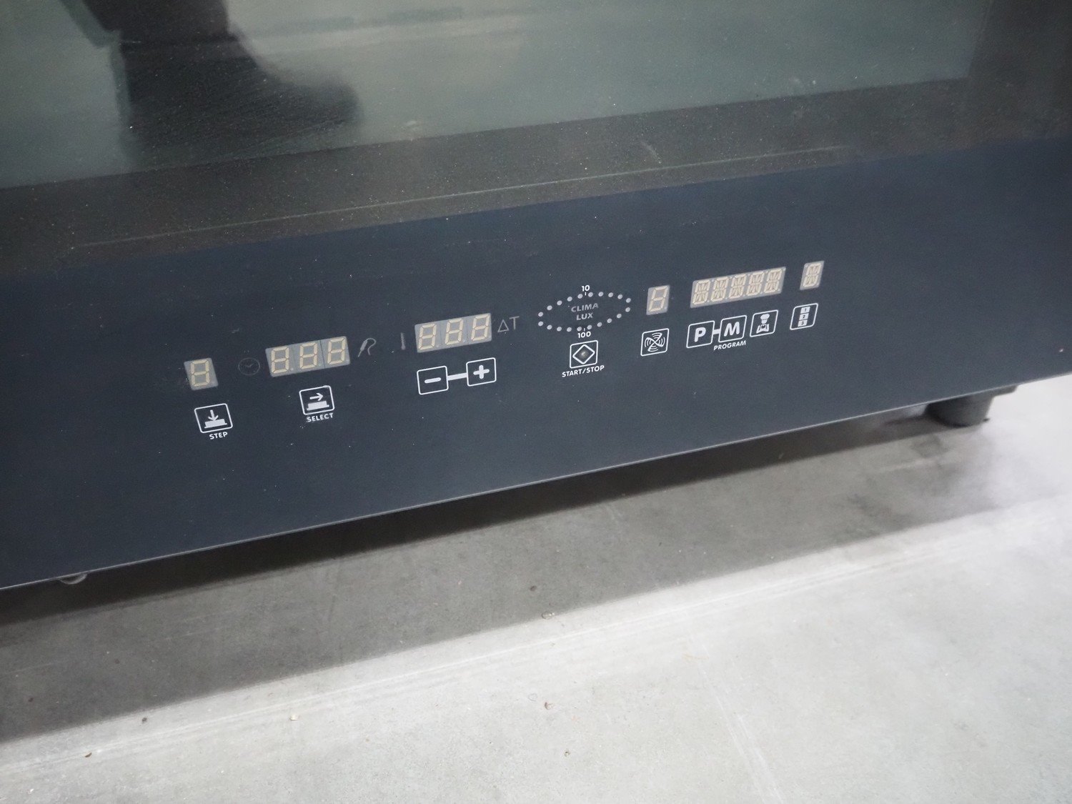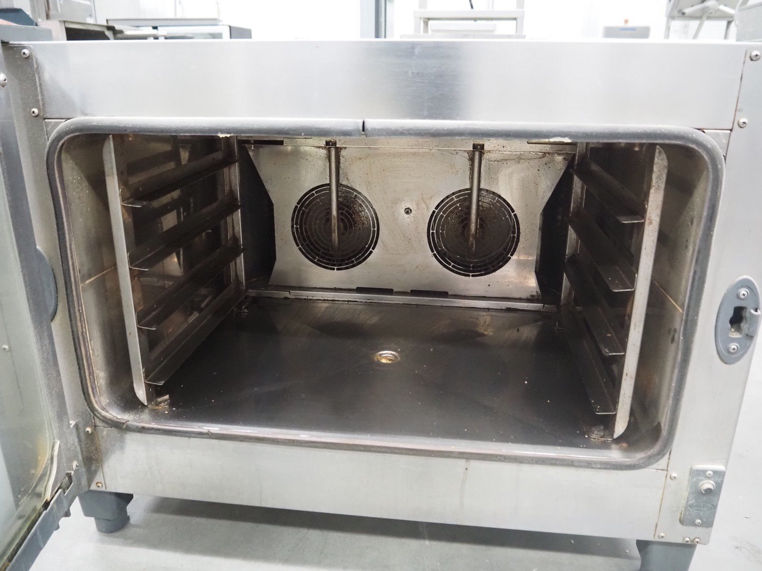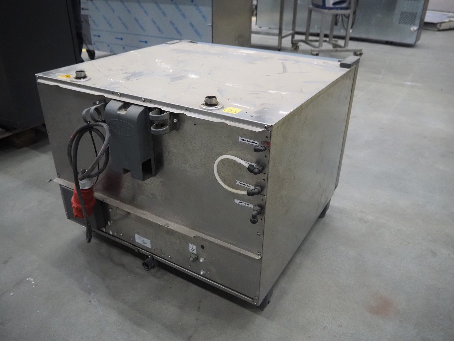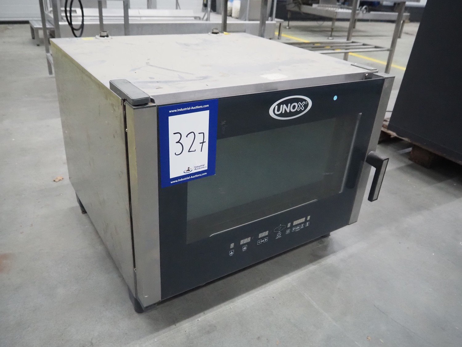 Unox combisteamer, type: XBC405E, serial number: 2014C0020325, 220-240/380-415 V, 1/3 Ph, 50/60 Hz, 7.5 kW, gross weight: 77 kg, net weight: 60 kg, 4 floors, dimensions each floor: 360 mm x 600 mm, total dimensions: 860 mm x 560 mm x 700 mm.