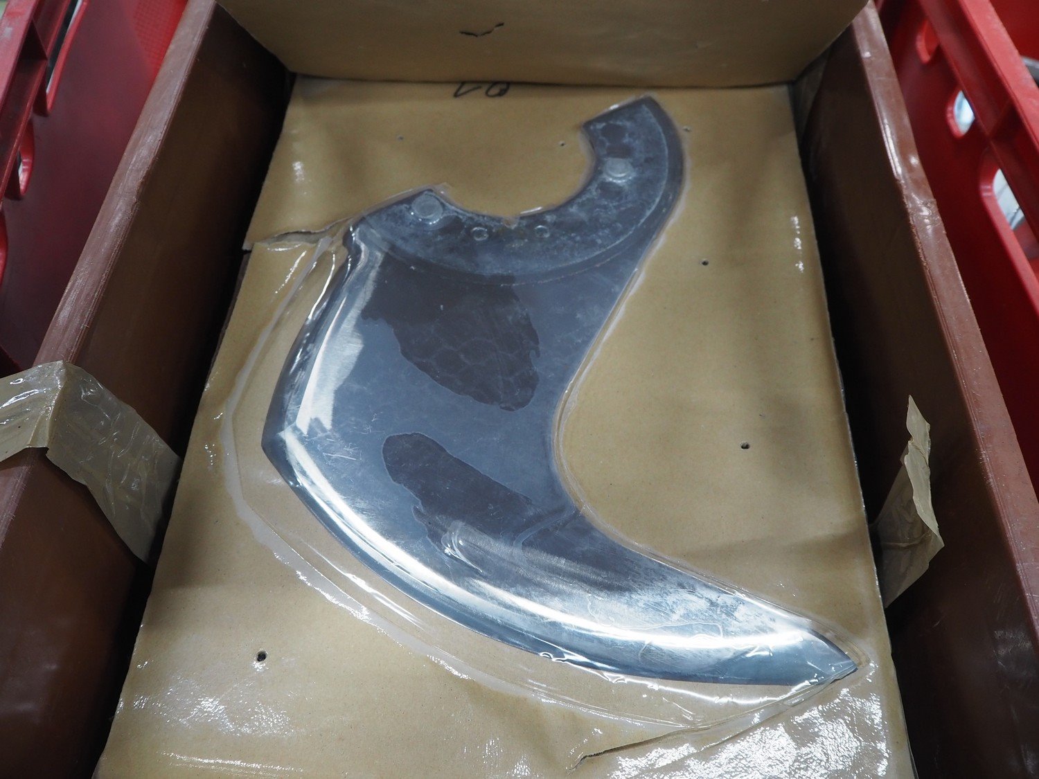 Plastic crate with 6 knives for Laska cutter, dimensions: 600 mm x 400 mm x 200 mm.