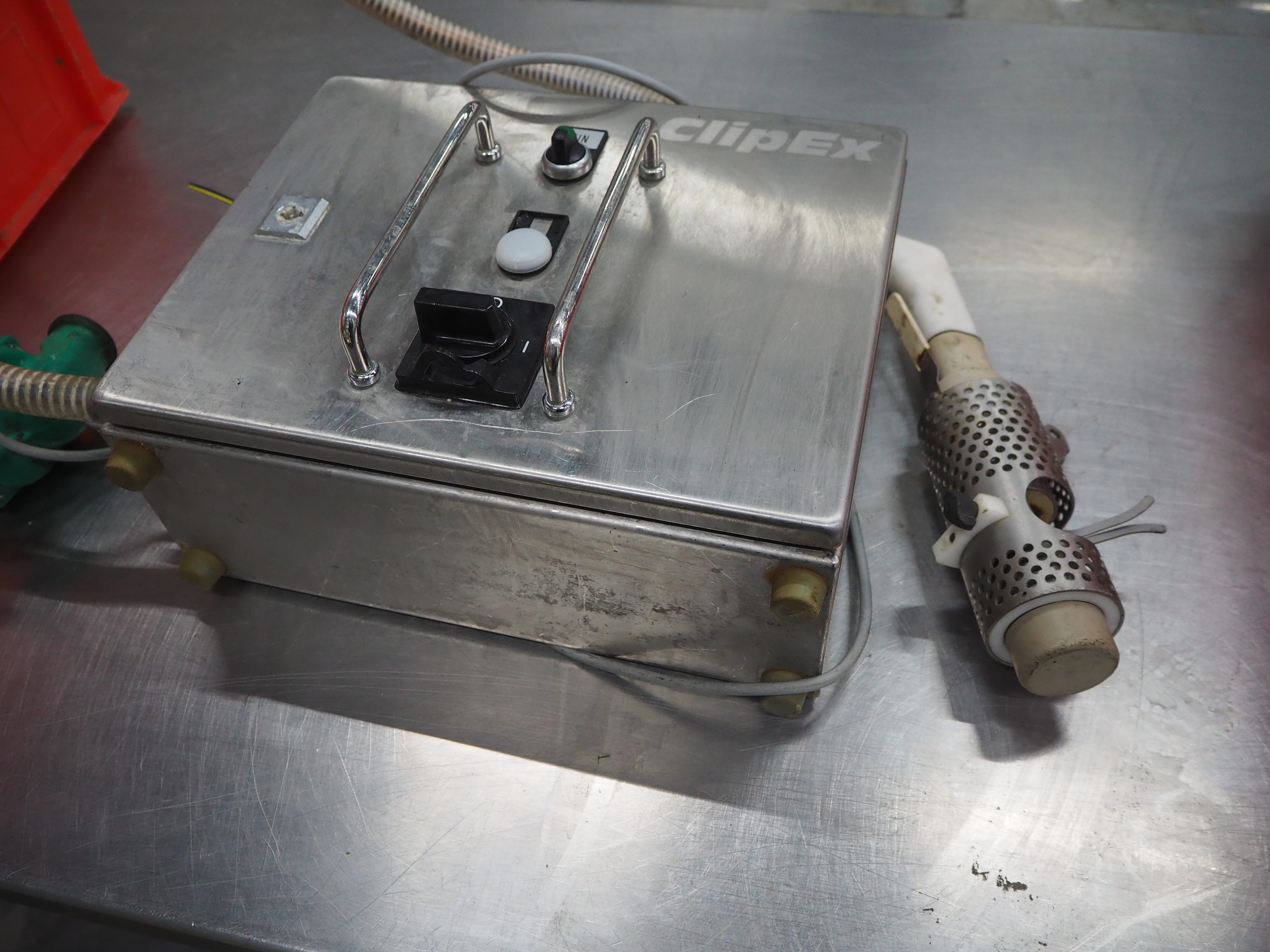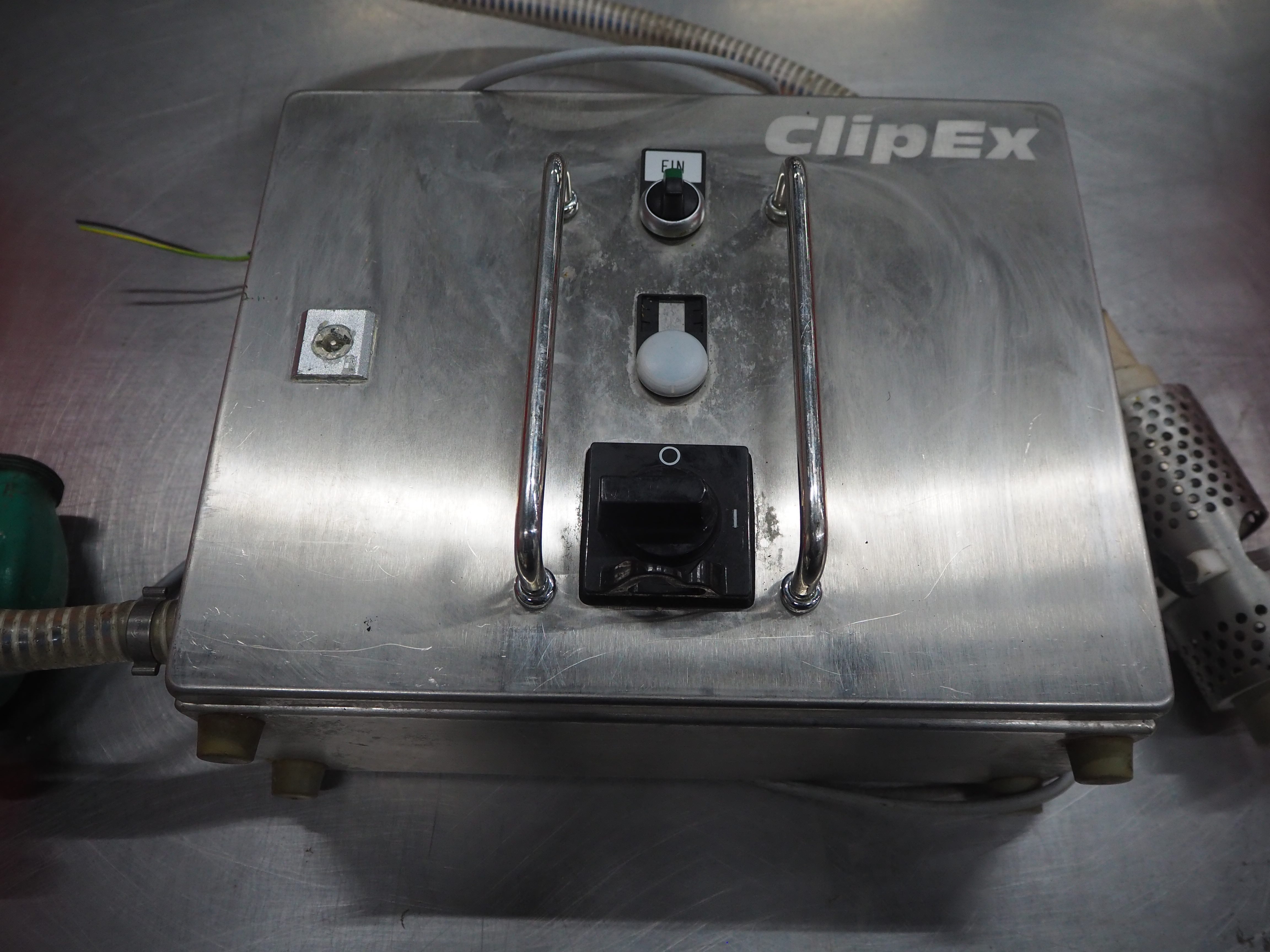 Frey Maschinenbau casing sealer, type: CLIPEX, machine number: CX 0130853, year of construction: 2003, 220 V, 50/60 Hz, 0.7 kW, dimensions: 370 mm x 300 mm x 150 mm