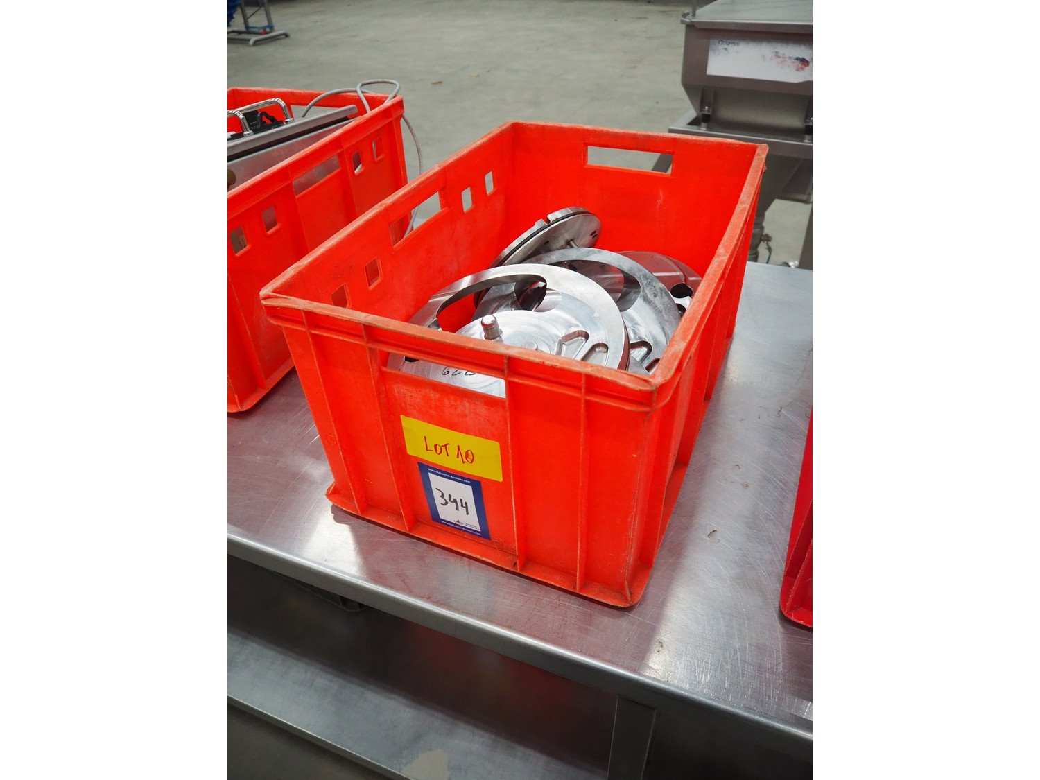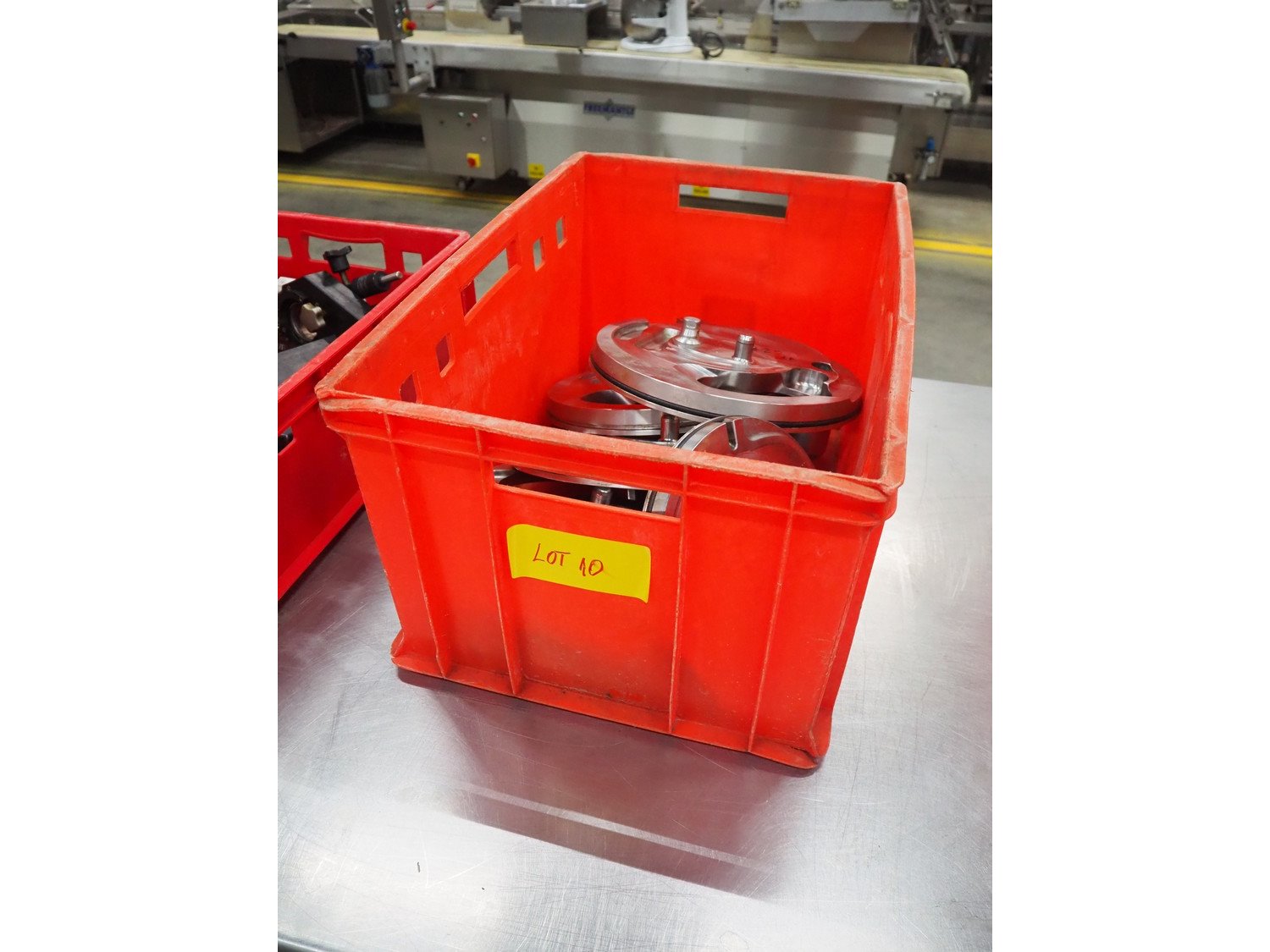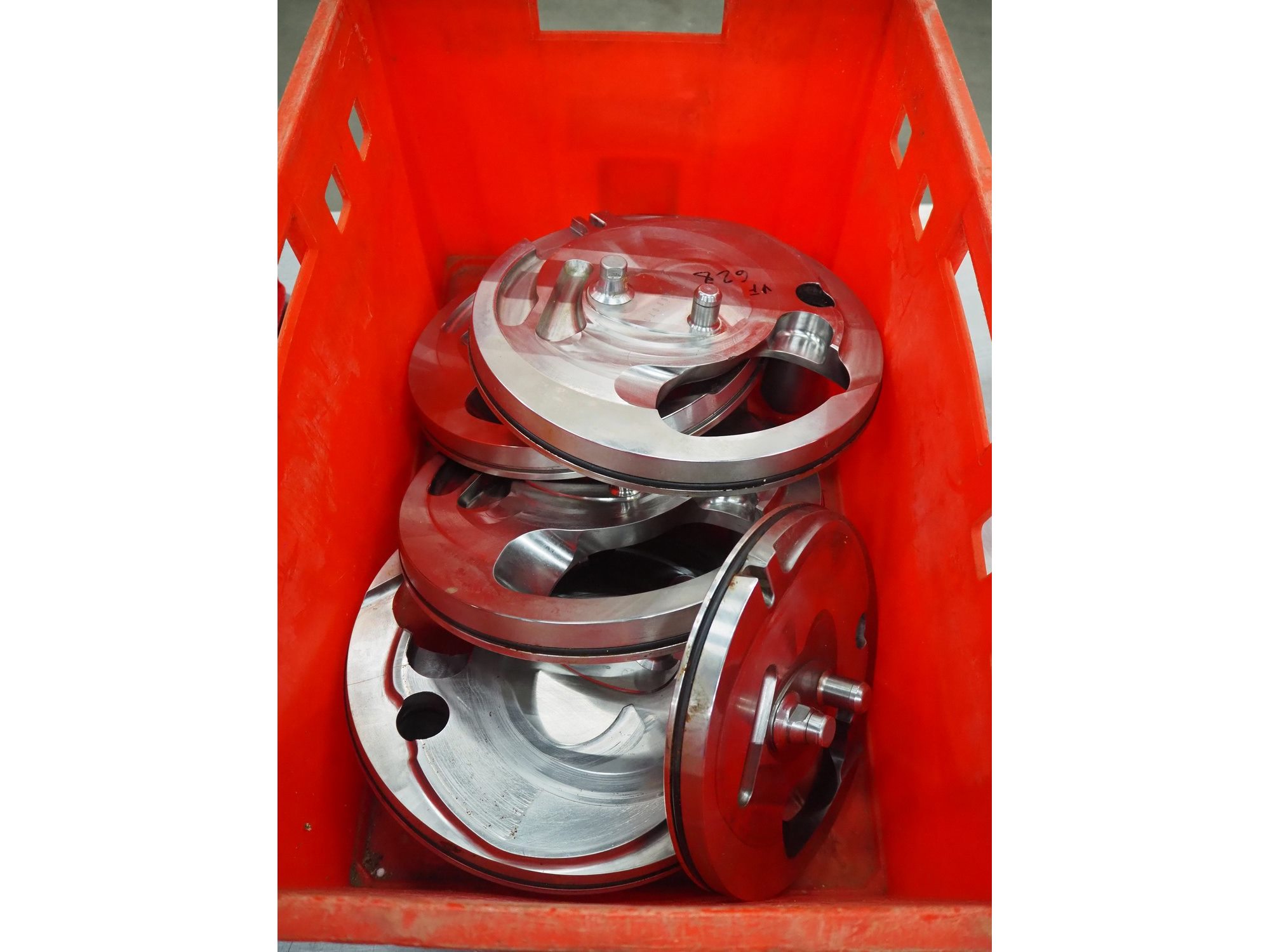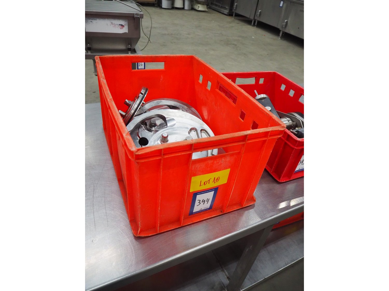 Plastic crate with Handtmann parts for vacuum filling machine, number: 860673, dimensions: 600 mm x 400 mm x 300 mm.