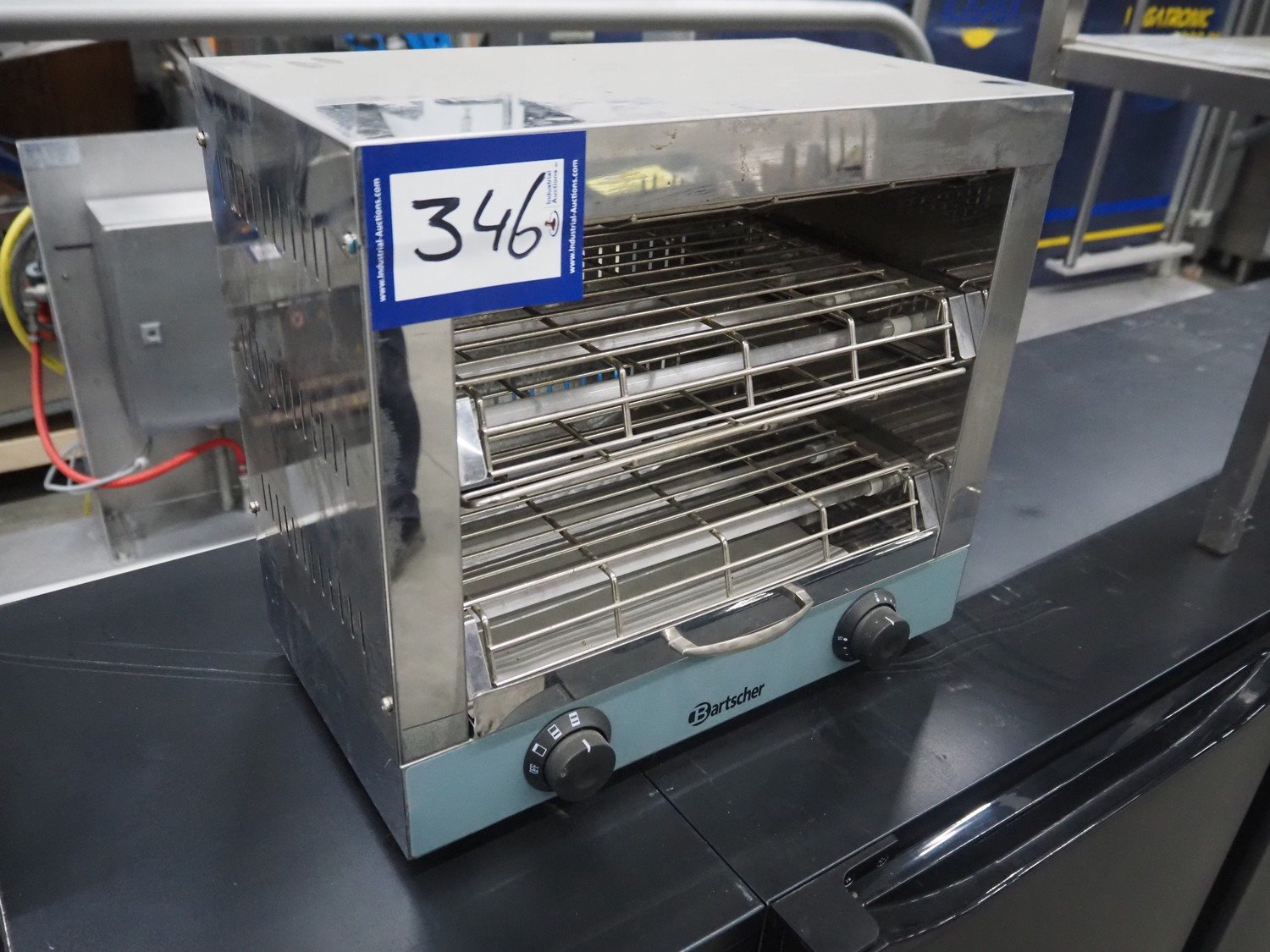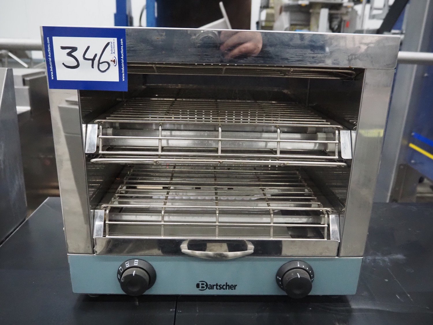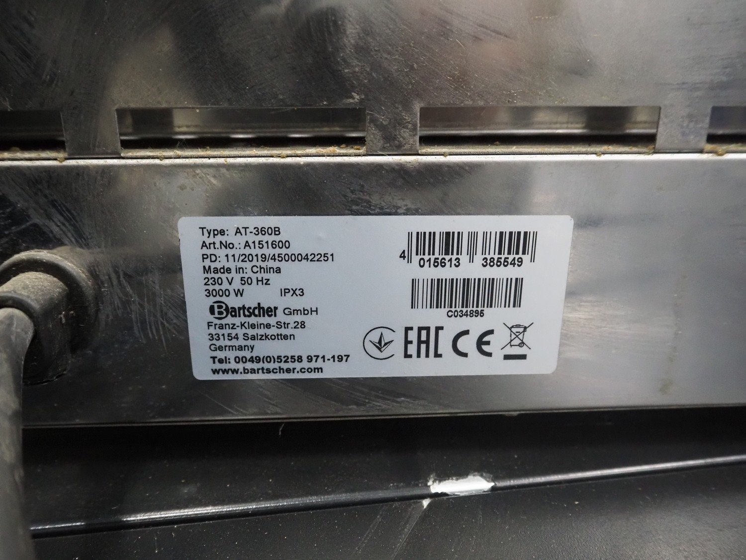 Bartscher grill, type: AT-360B, year of construction: 2019, 230 V, 50 Hz, 3000 W, electric heated, dimensions: 440 mm x 250 mm x 400 mm.