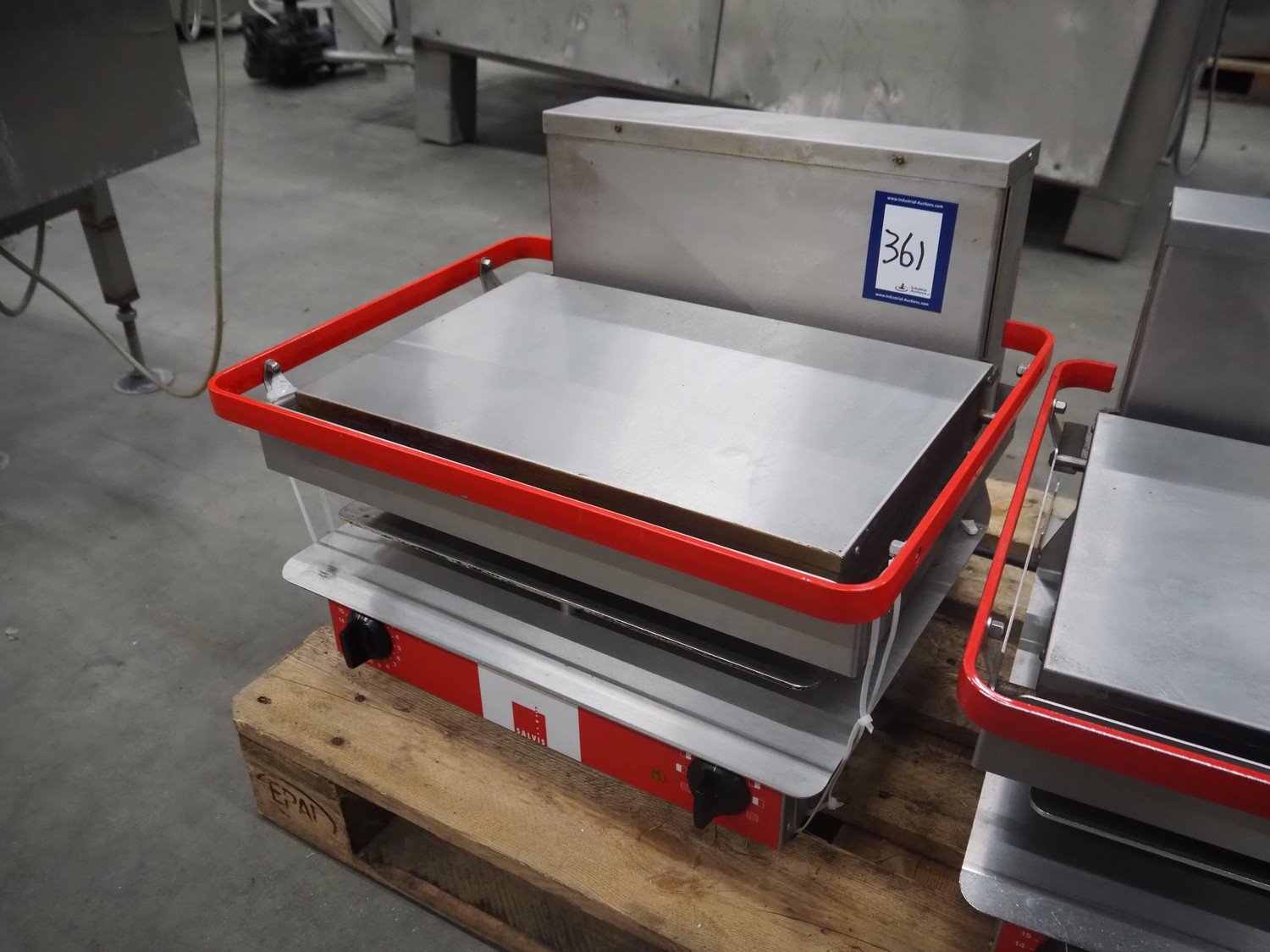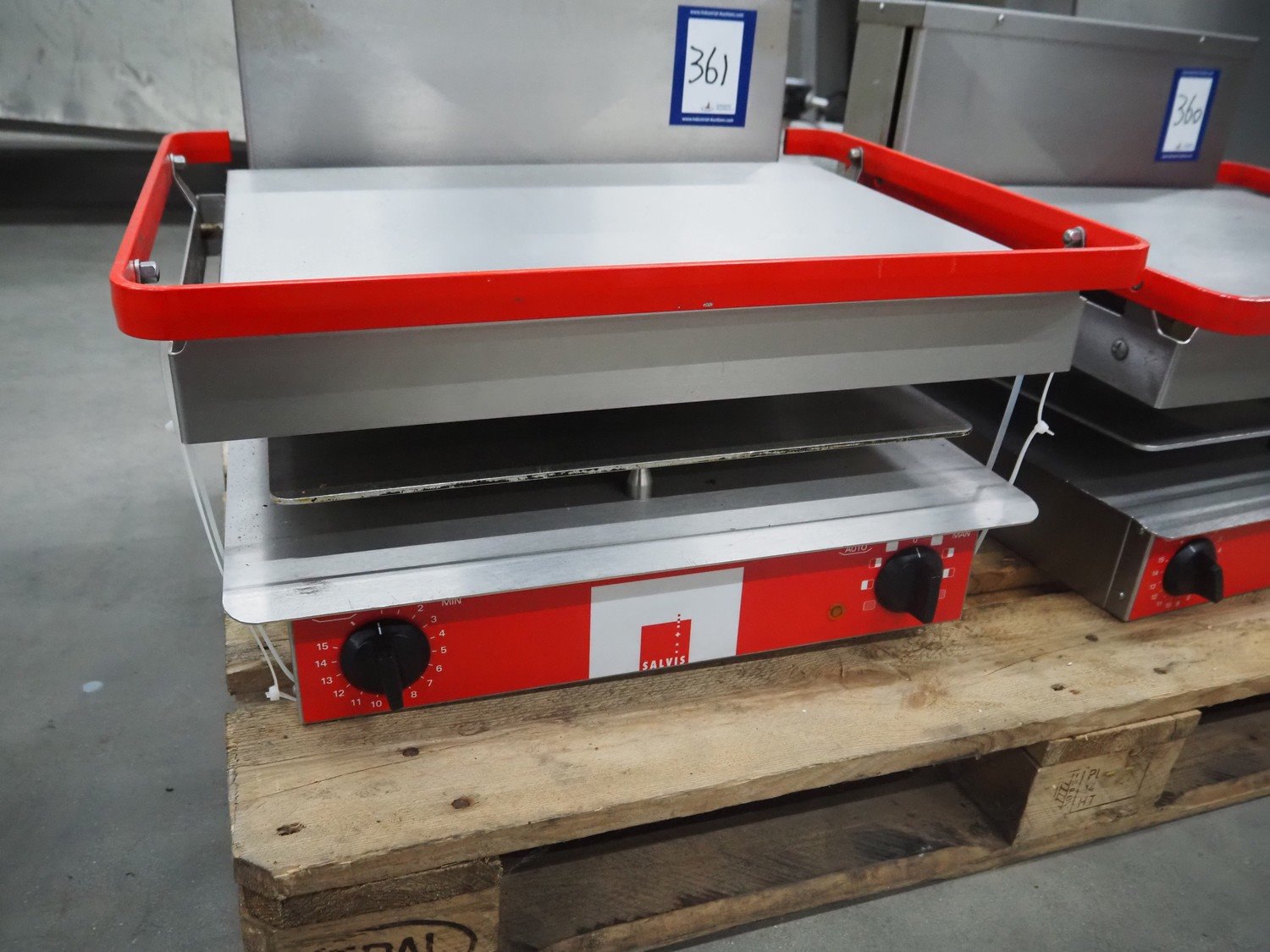 Salvis salamander grill, type: HL-C, serial number: 454614-BZ 1, year of construction: 2017, dimensions heater: (2x) 295 mm x 160 mm, plate dimensions: 480 mm x 330 mm, total dimensions: 600 mm x 530 mm x 445 mm.