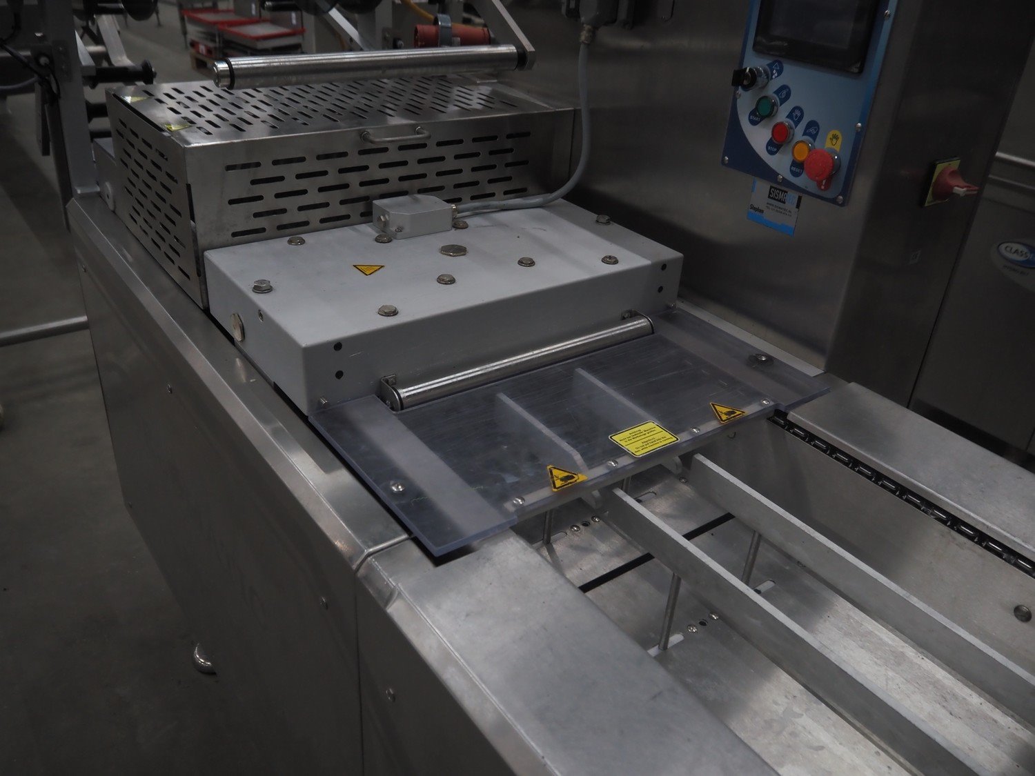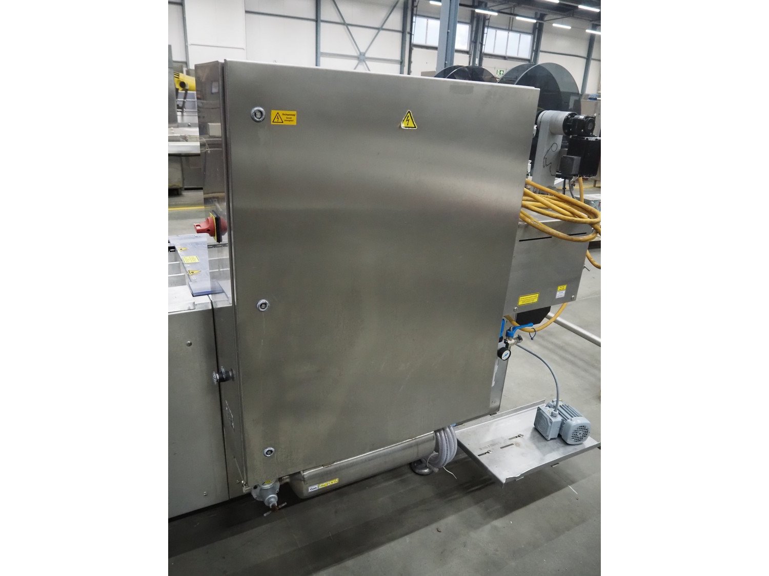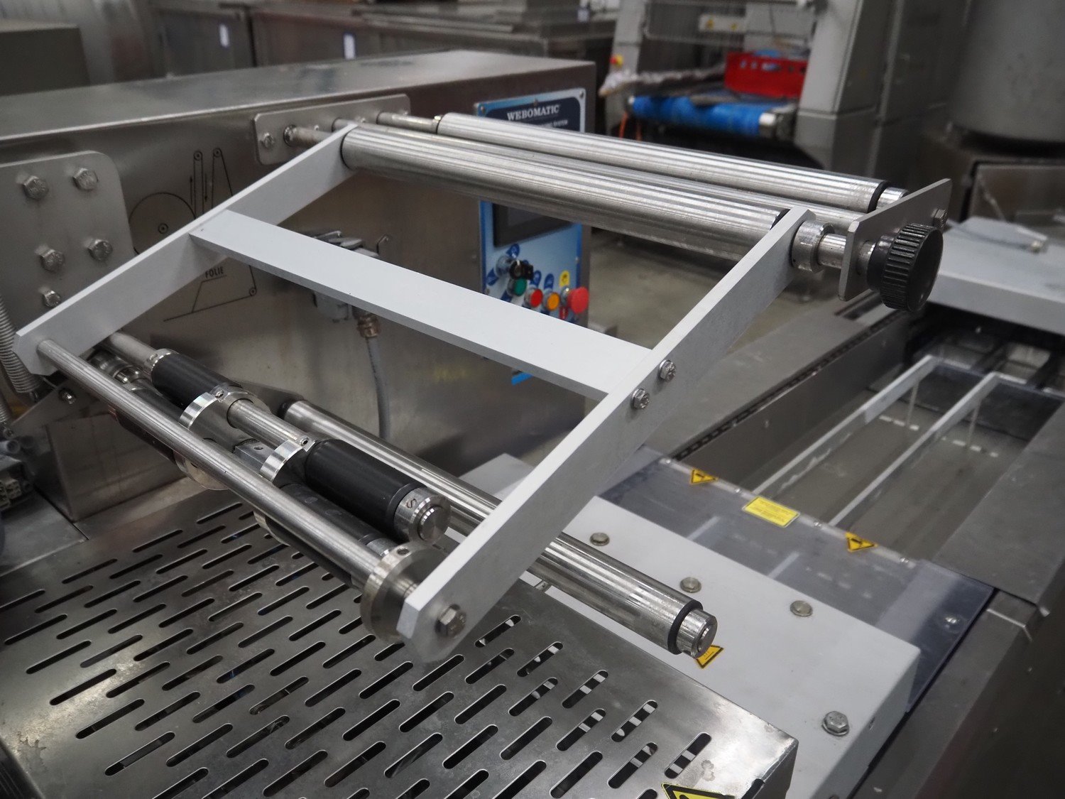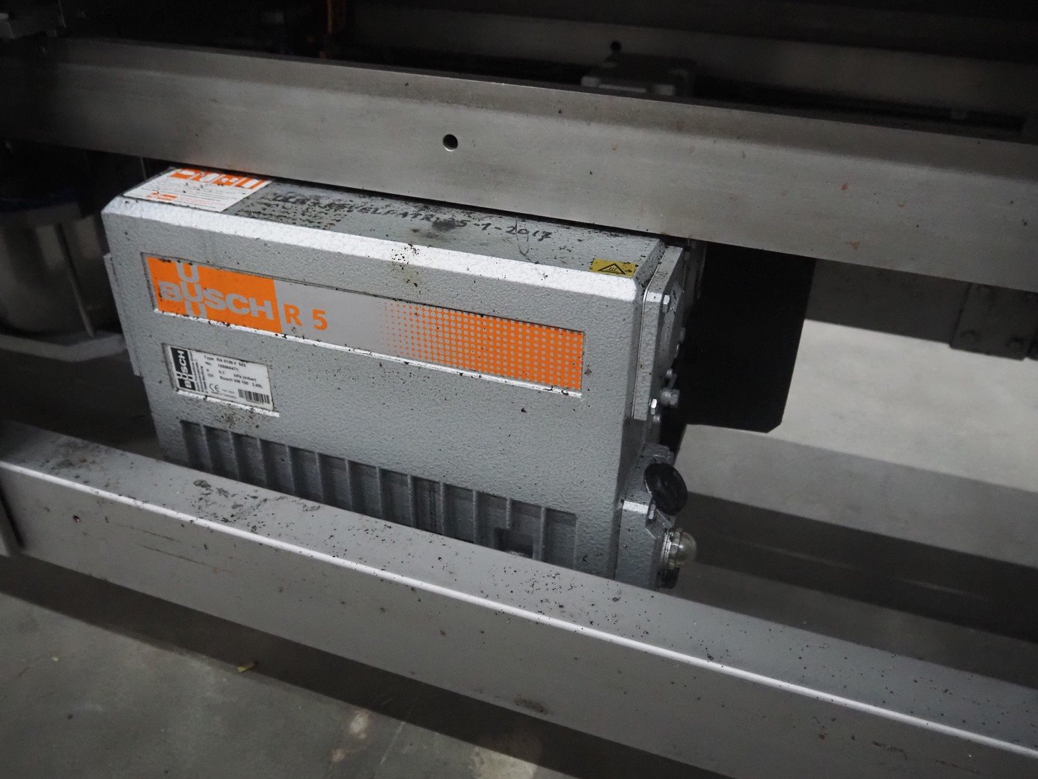 Webomatic thermoformer, type: APS ML 3300, machine number: F 6515SI562, 400 V, 3 Ph, 50 Hz, 17.5 A, 11.5 kW, film width: 410 mm, dimensions dye: (6x) 120 mm x 110 mm, plastic outfeed belt, belt width: 355 mm, 2 Busch vacuum pumps, type: RA 0100 F 503 / RA 0021 B 3Z3 APXX, capacity: 100 m³ per hour / 21 m³ per hour, total dimensions: 3500 mm x 1200 mm x 1620 mm. Including 3 crates with parts.