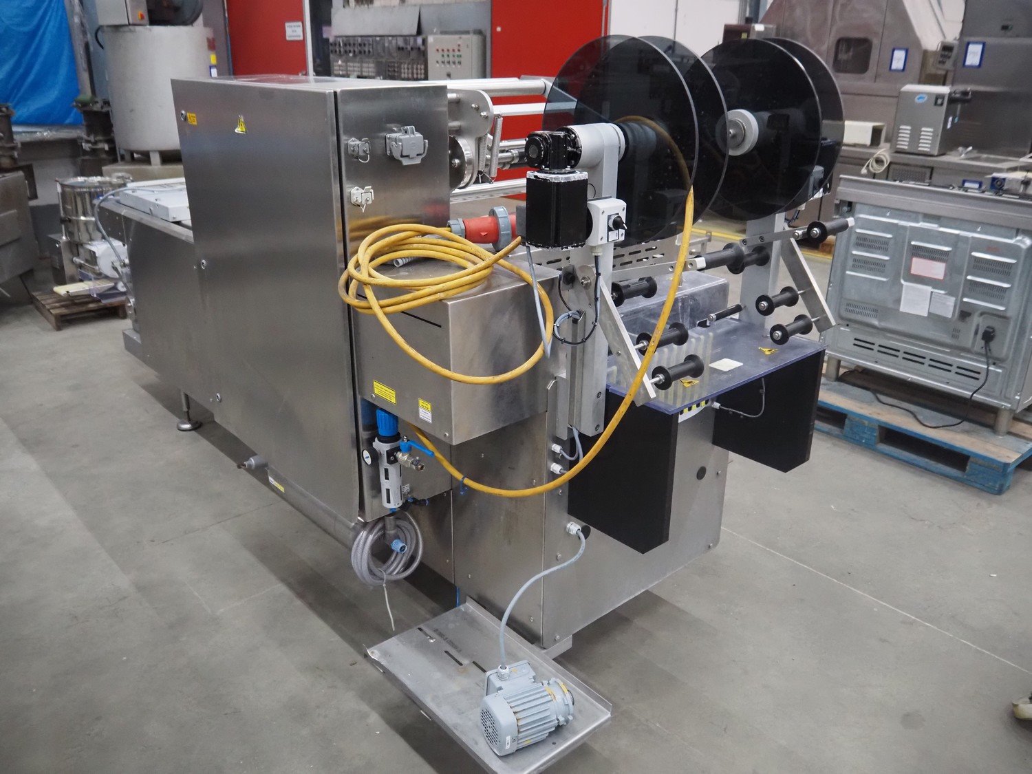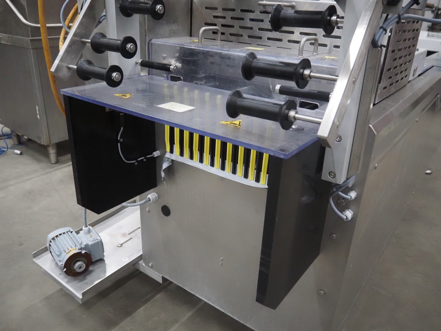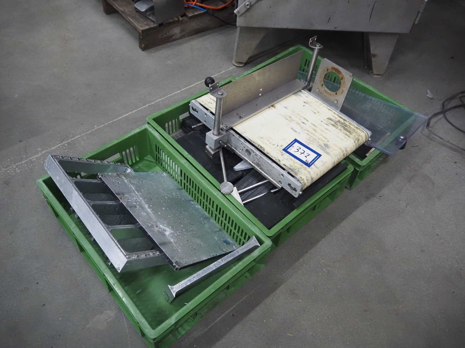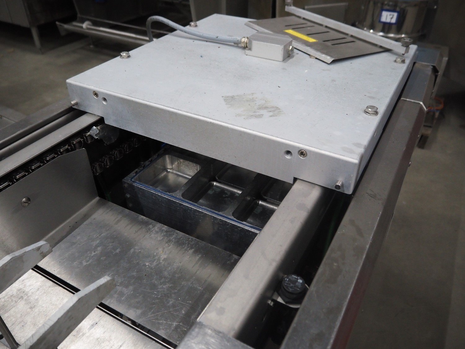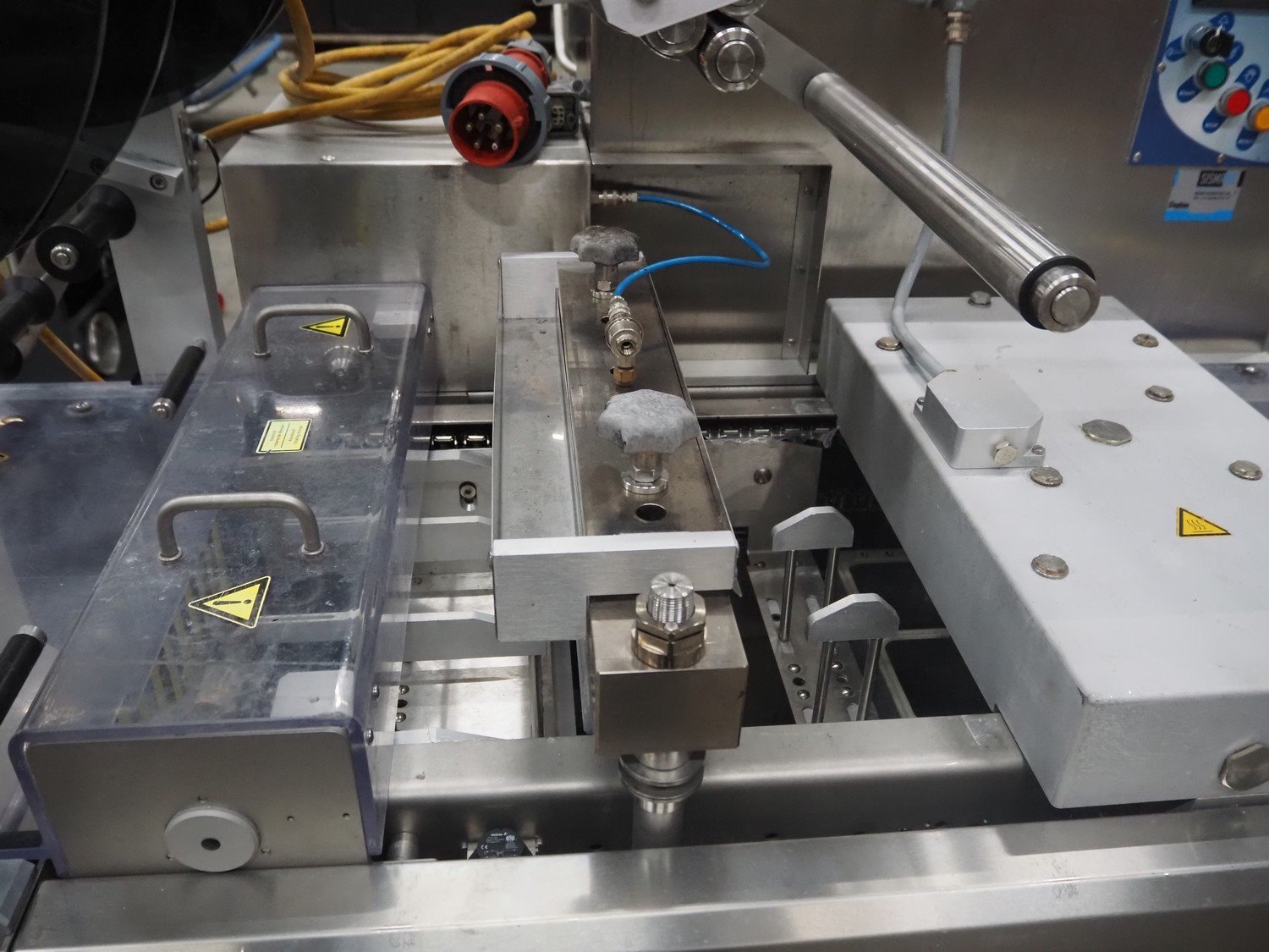 Webomatic thermoformer, type: APS ML 3300, machine number: F 6515SI562, 400 V, 3 Ph, 50 Hz, 17.5 A, 11.5 kW, film width: 410 mm, dimensions dye: (6x) 120 mm x 110 mm, plastic outfeed belt, belt width: 355 mm, 2 Busch vacuum pumps, type: RA 0100 F 503 / RA 0021 B 3Z3 APXX, capacity: 100 m³ per hour / 21 m³ per hour, total dimensions: 3500 mm x 1200 mm x 1620 mm. Including 3 crates with parts.