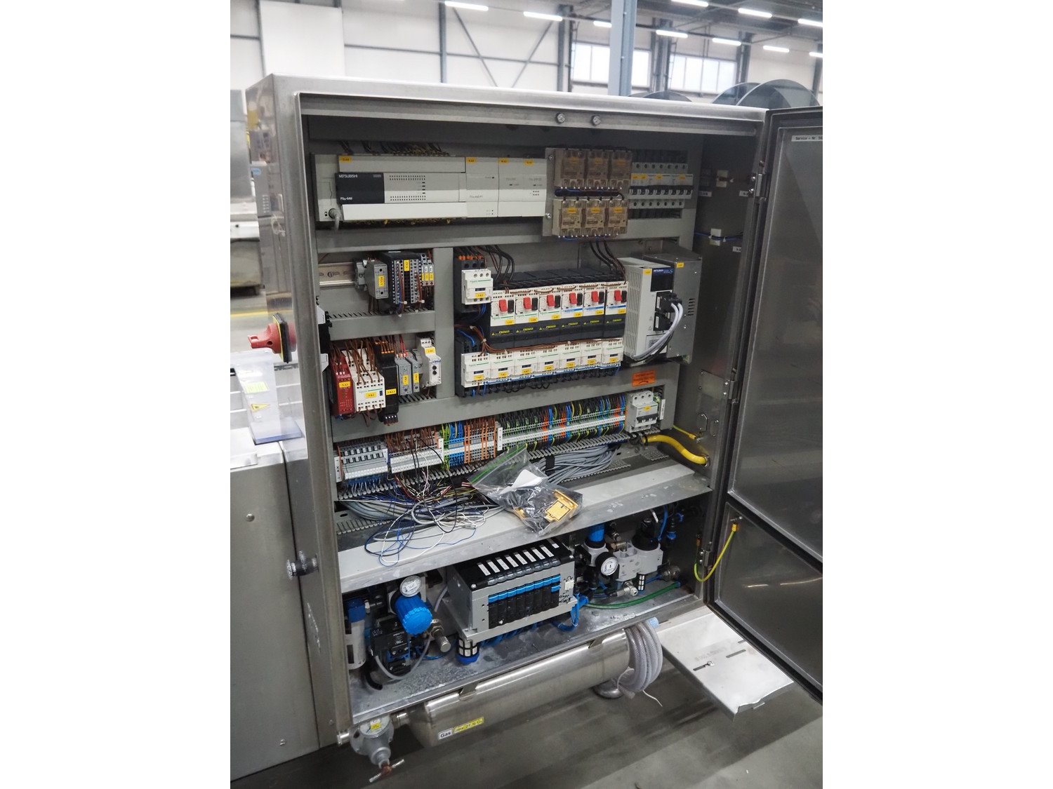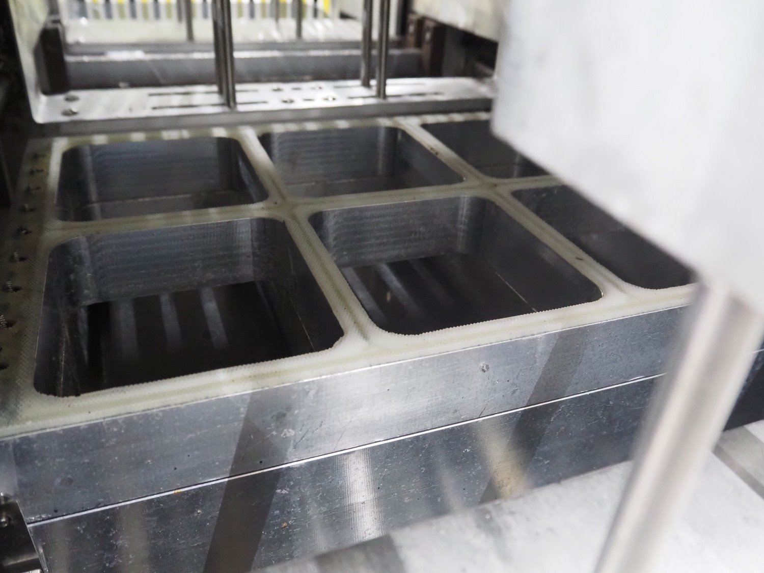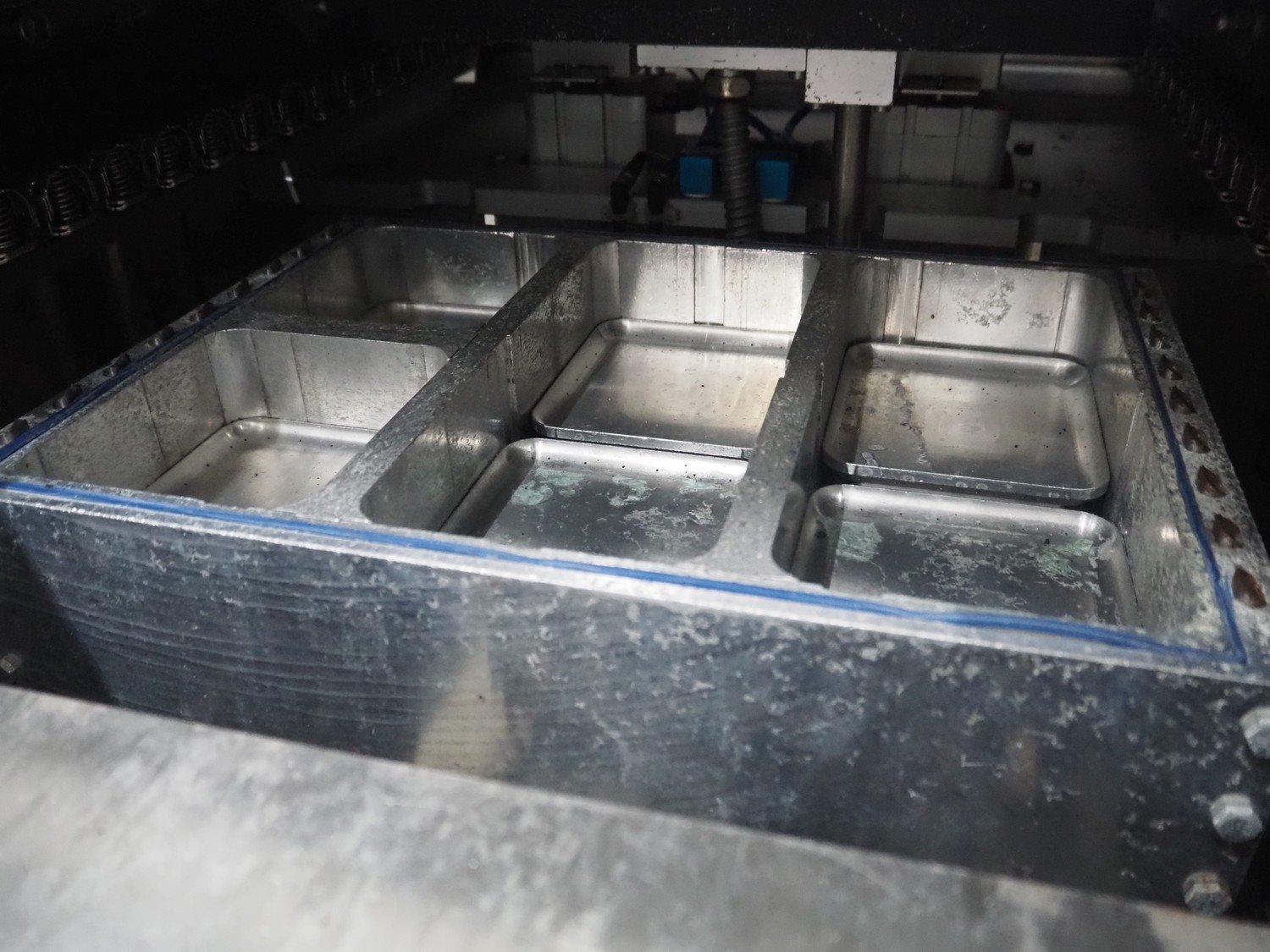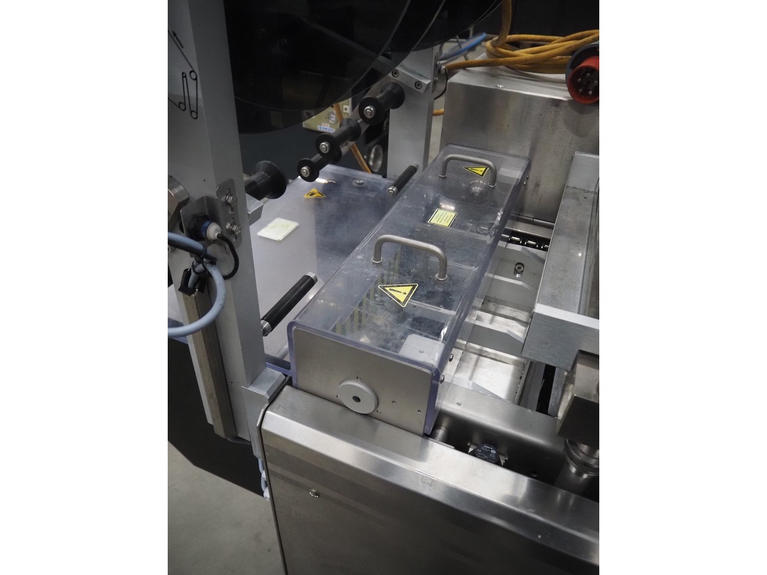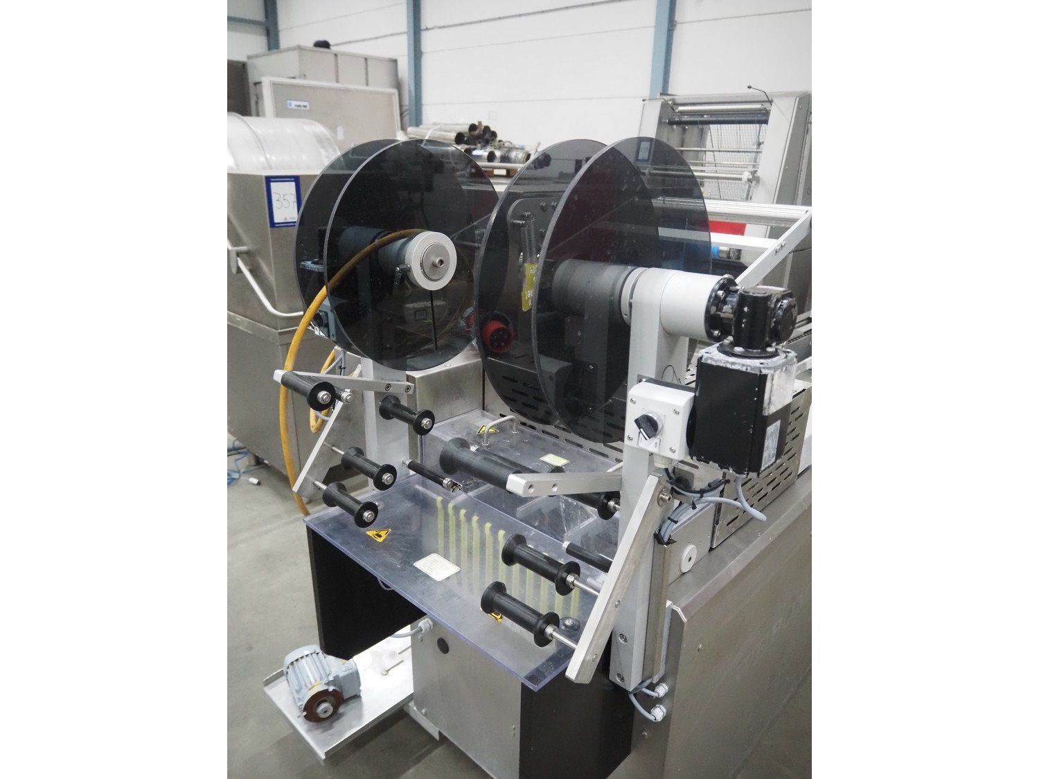 Webomatic thermoformer, type: APS ML 3300, machine number: F 6515SI562, 400 V, 3 Ph, 50 Hz, 17.5 A, 11.5 kW, film width: 410 mm, dimensions dye: (6x) 120 mm x 110 mm, plastic outfeed belt, belt width: 355 mm, 2 Busch vacuum pumps, type: RA 0100 F 503 / RA 0021 B 3Z3 APXX, capacity: 100 m³ per hour / 21 m³ per hour, total dimensions: 3500 mm x 1200 mm x 1620 mm. Including 3 crates with parts.