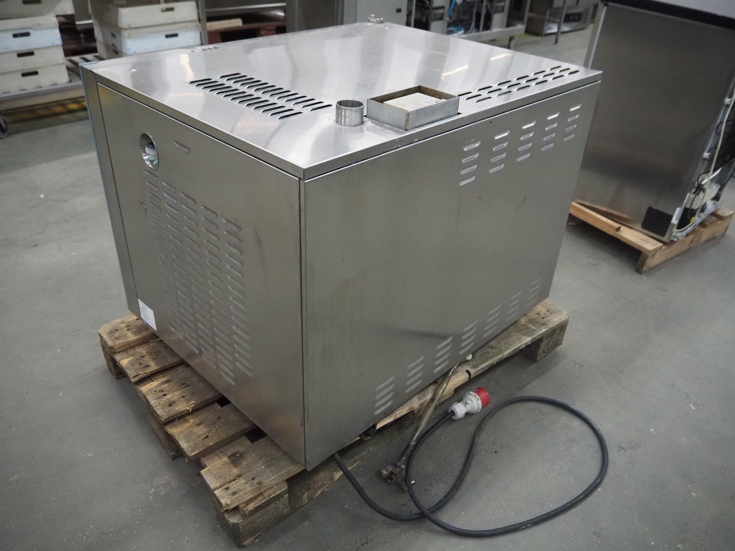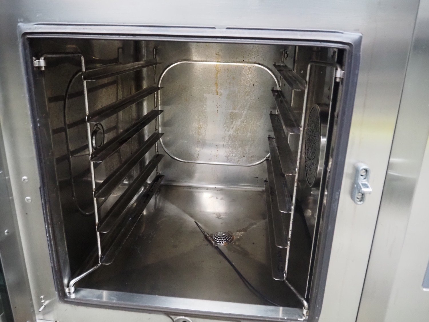 Leventi combi steamer, model: Combimat Mk3.1 MM 3B 6PL, number: 019040033, 3 x 380/415 V, 3 Ph, 50 Hz, 16 A, 9.5 kW, 6 floors, floor dimensions: (6x) 550 mm x 400 mm, total dimensions: 965 mm x 850 mm x 800 mm.