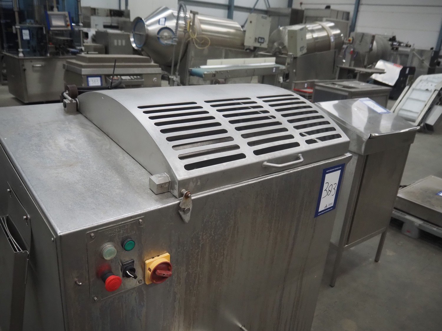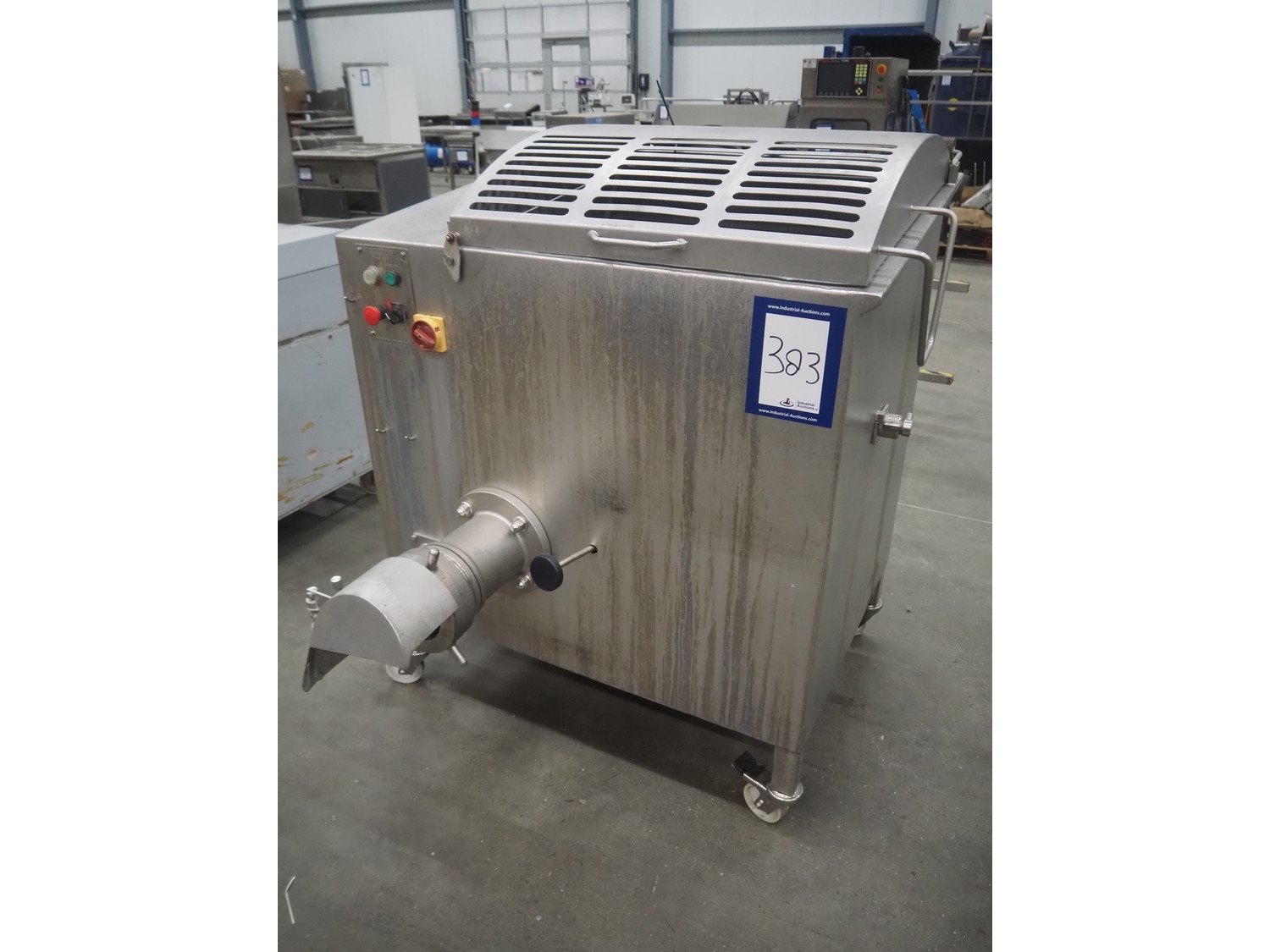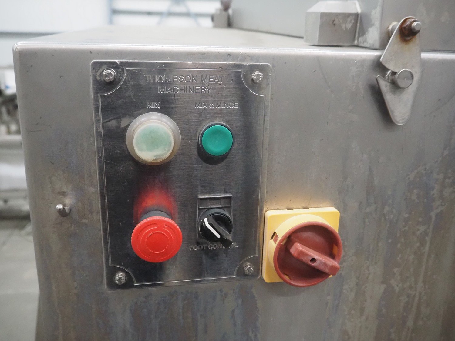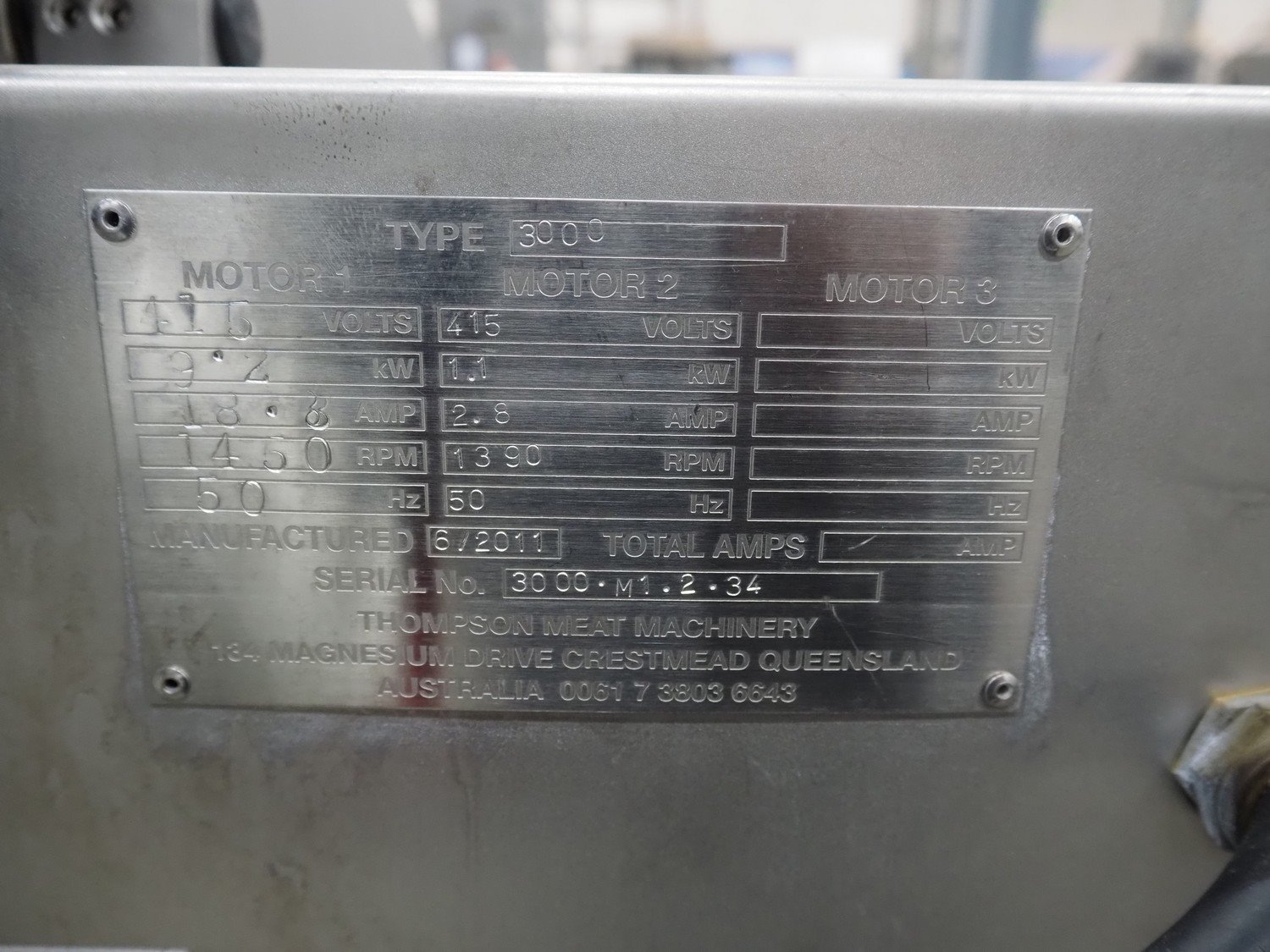 Thompson mixer-grinder, type: 3000, serial number: 3000.M1.2.34, year of construction: 6/2011, 415 V, plate diameter: approx. 120 mm, total dimensions: 1200 mm x 1250 mm x 1300 mm. Without knife plates.