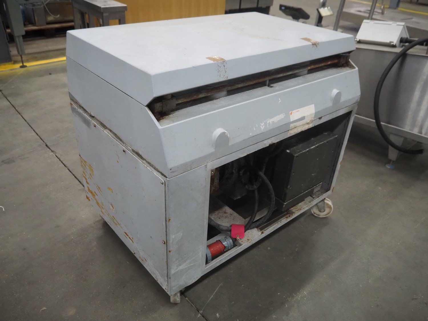 Inauen VC999 mobile vacuum machine, with Rietschle vacuum pump, type: CLFH 220 (20), dimensions: 1100 mm x 800 mm x 1020 mm. Technical condition unknown.
