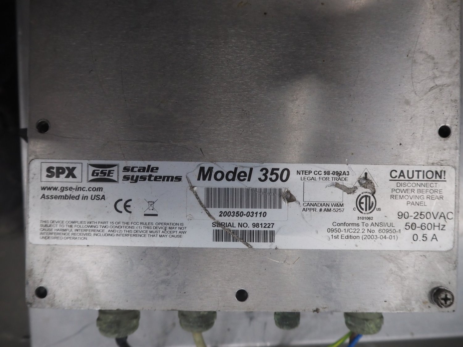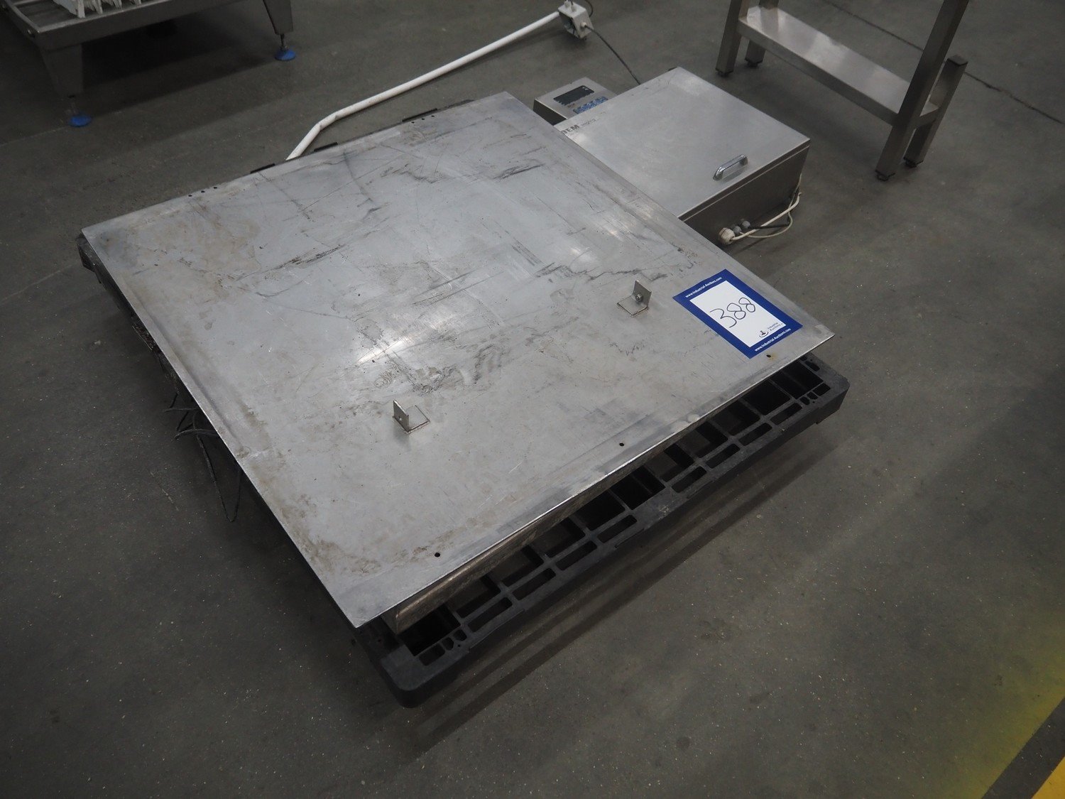 DEM weighing systems weighing scale and indicator, model: GSE 350, scale dimensions: 1000 mm x 1000 mm.
