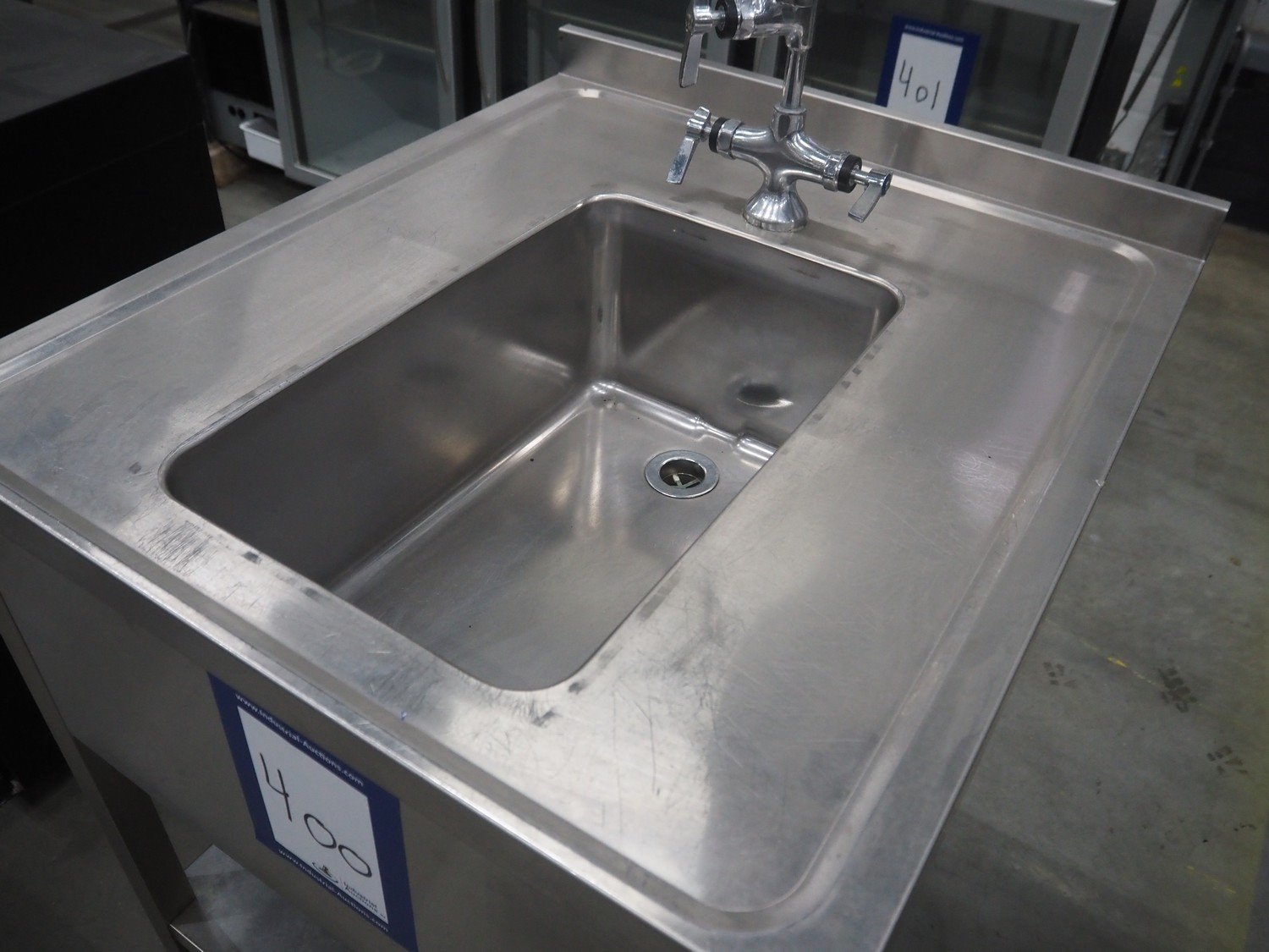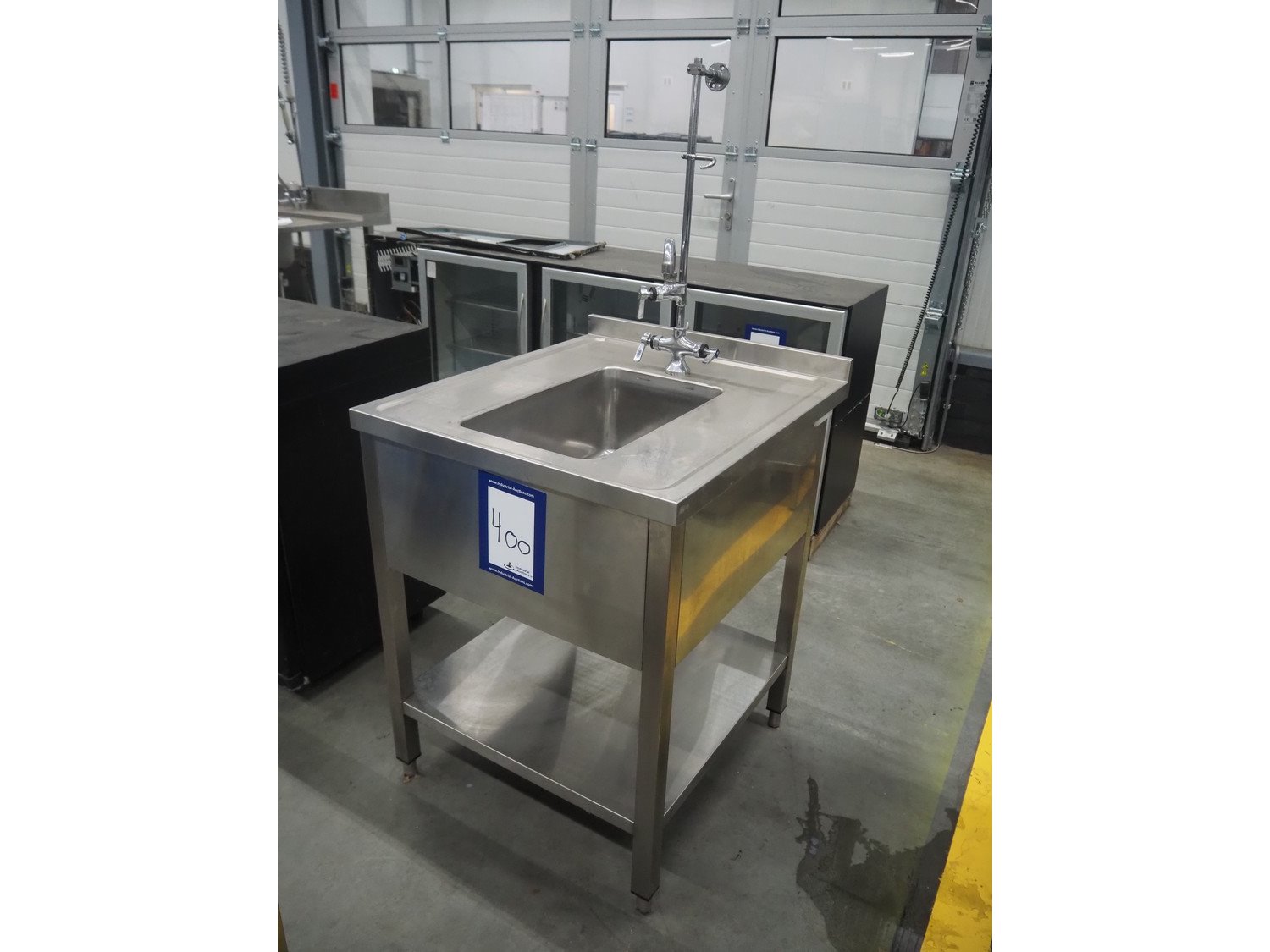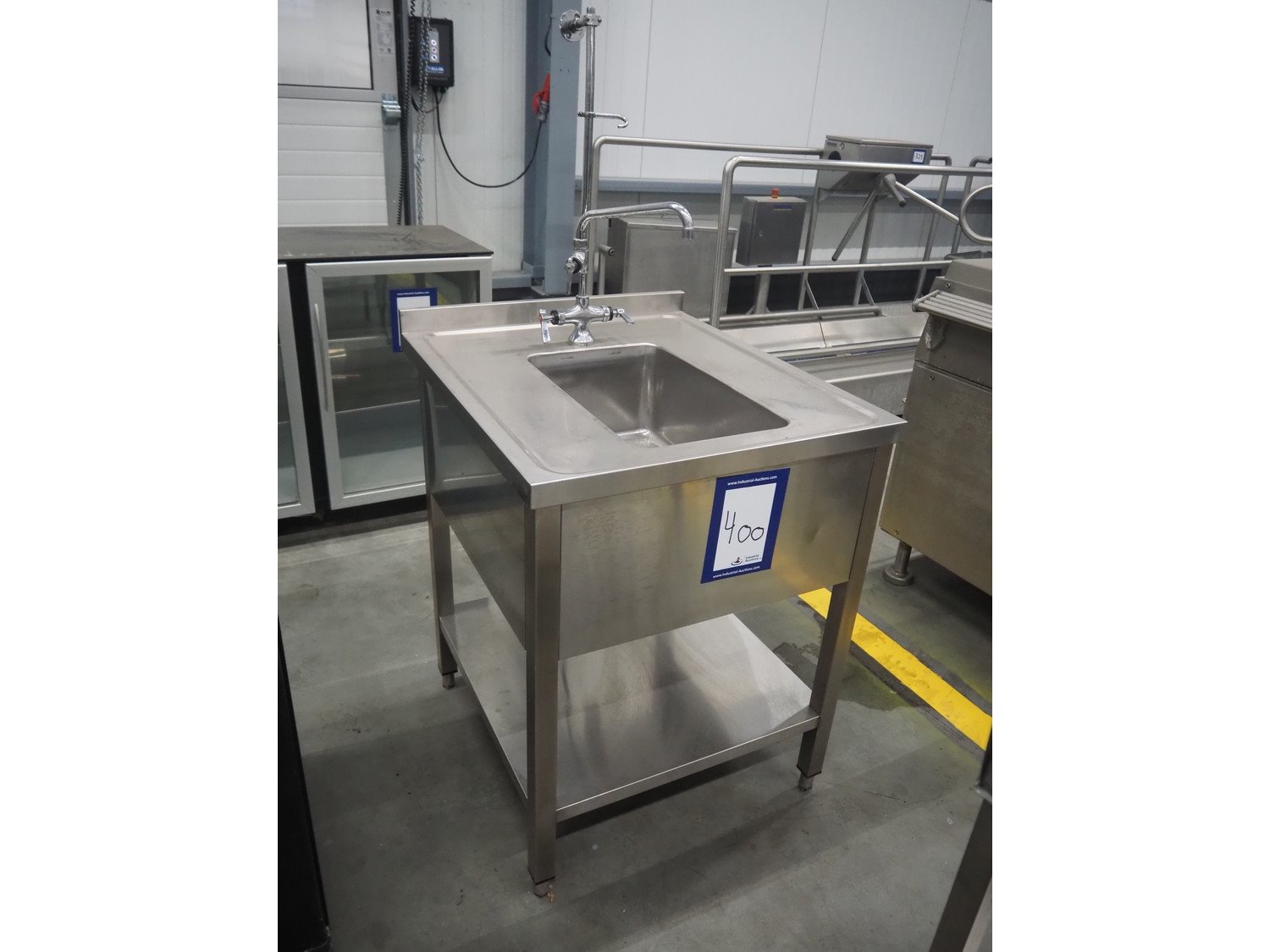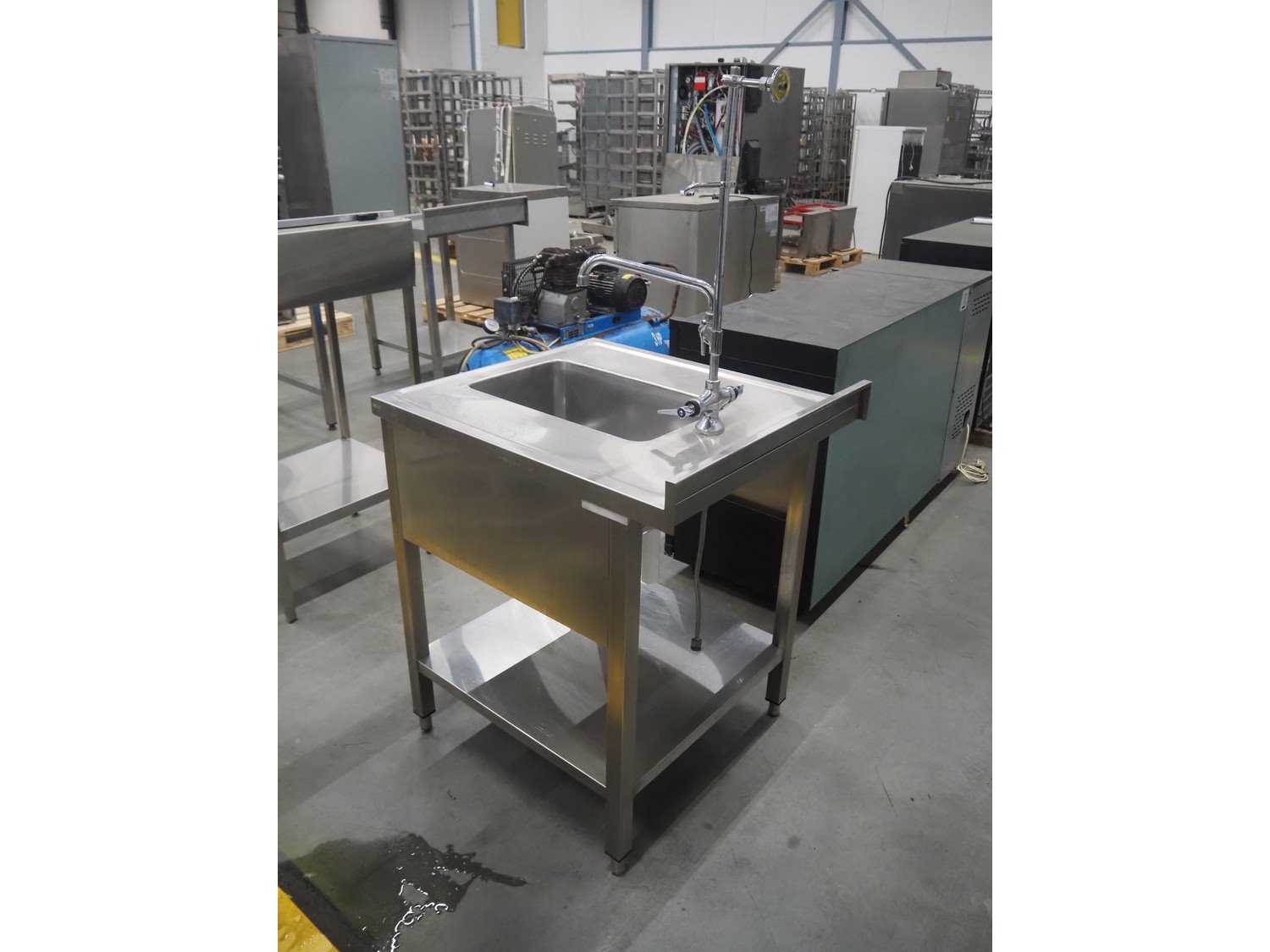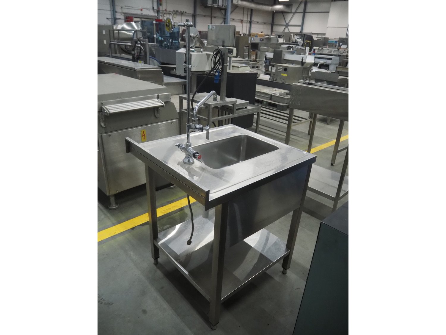 S/s sink with faucet, dimensions: 800 mm x 700 mm x 1540 mm.