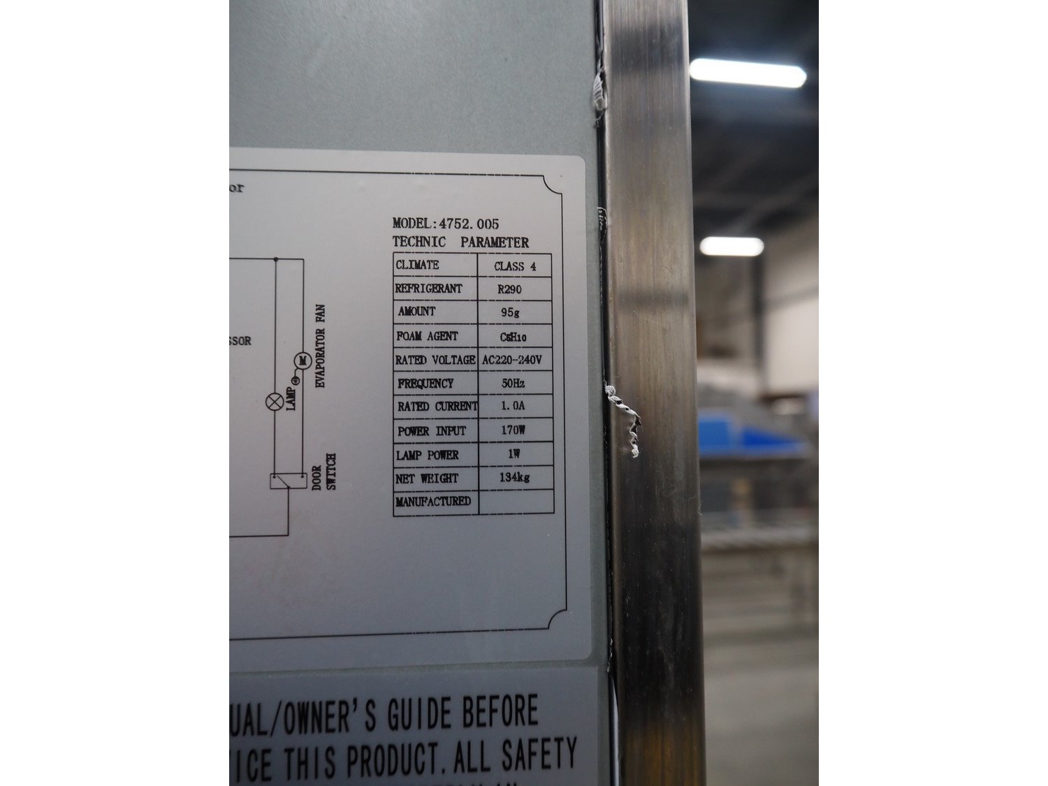 Ecofrost refrigerator, model: 4752. 005, serial number: 6951 1419 2001 0507, 220/240 V, 50 Hz, 1 A, 170 W, refrigerant: R290, 95 g, weight: 134 kg, 5 floors, dimensions each floor: 650 mm x 520 mm, total dimensions: 740 mm x 840 mm x 2000 mm.