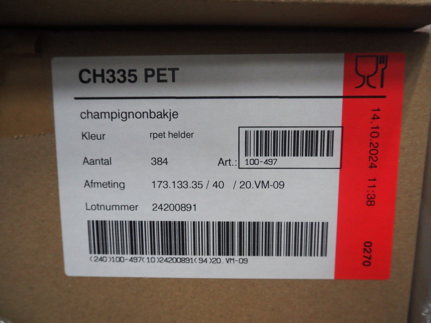 3 pallets with approximately 9600 plastic CH335 PET trays, tray dimensions: 173 mm x 133 mm x 35 mm.