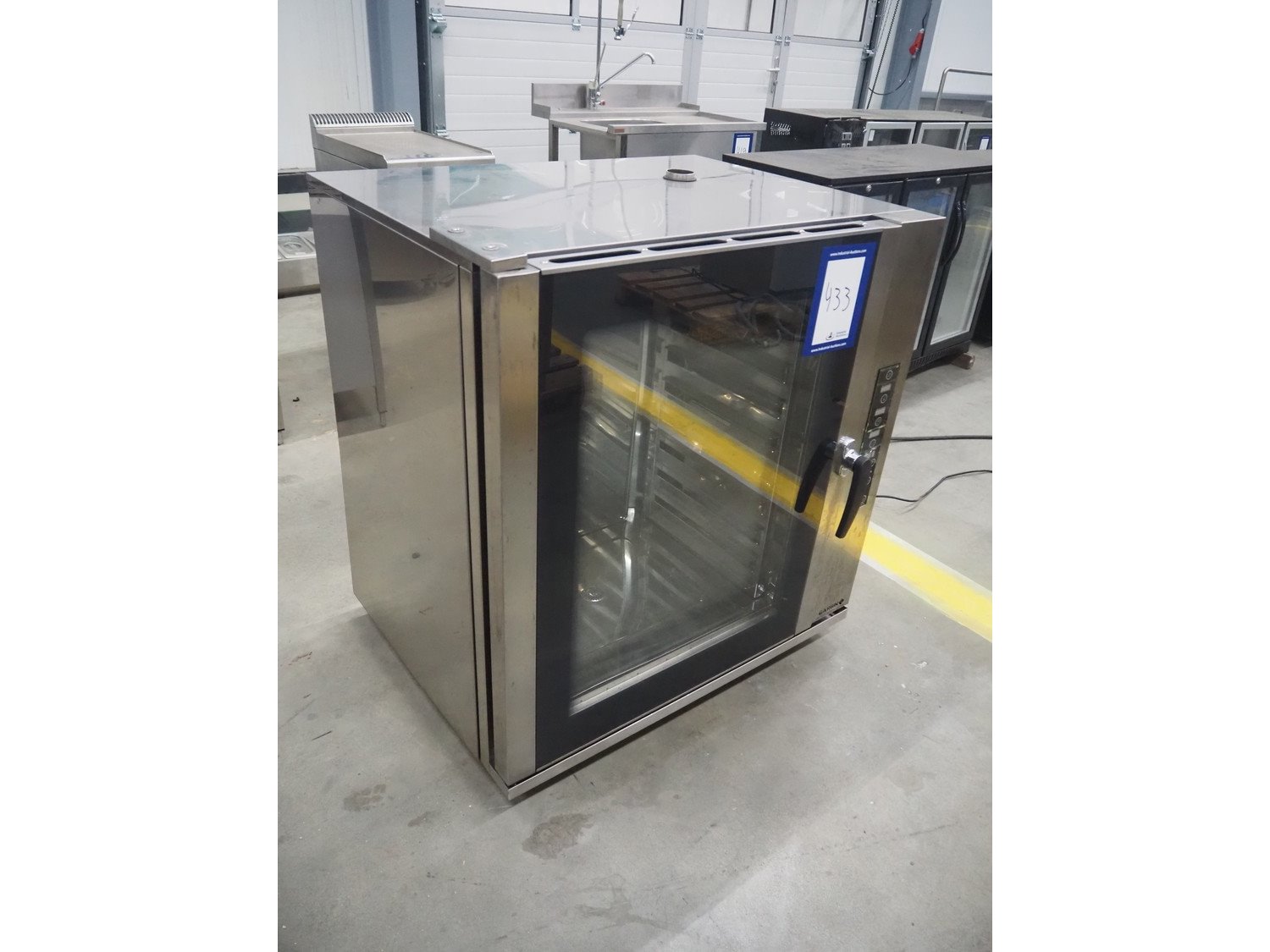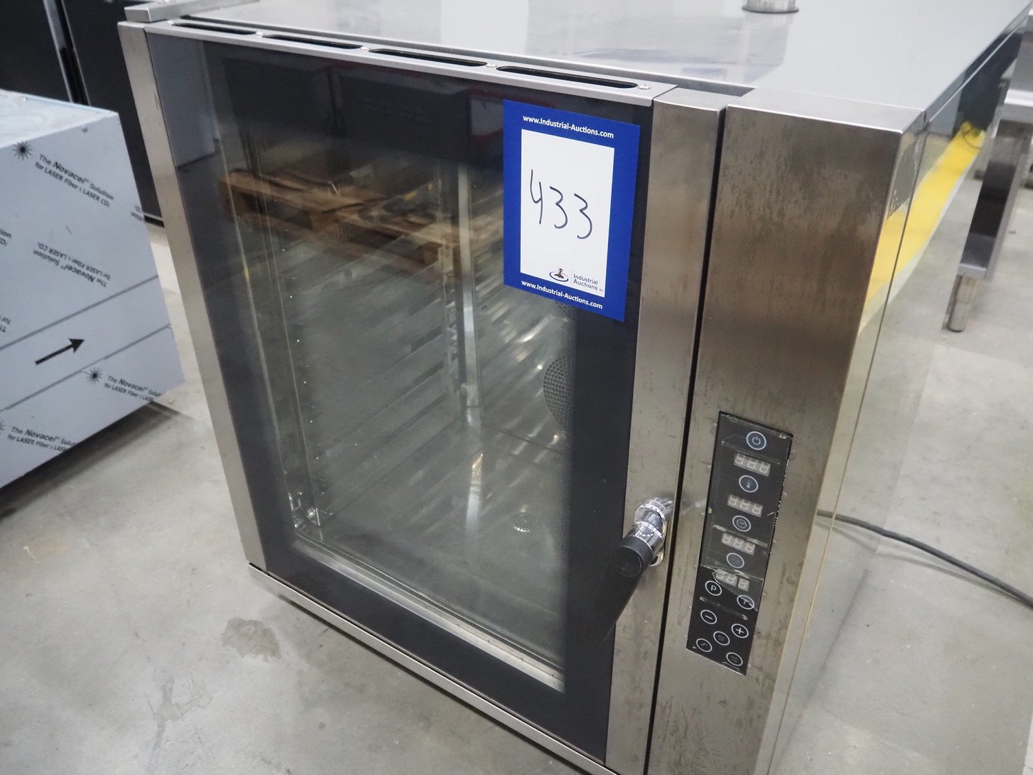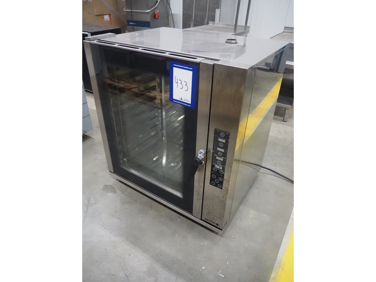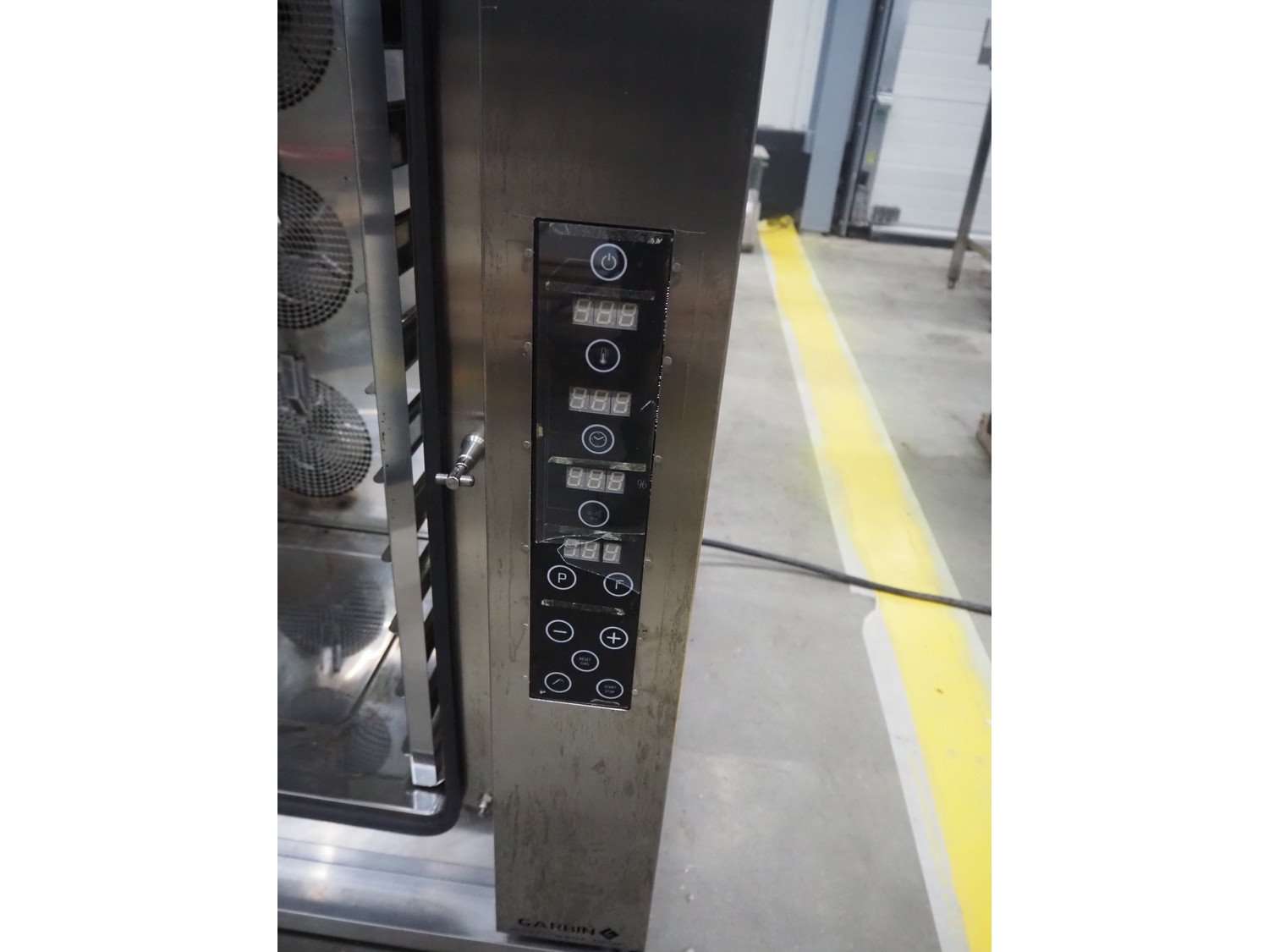 Garbin oven, model: 104 PE VAP, serial number: 104000, year of construction: 10/08/25, 400 V, 3 Ph, 50-60 Hz, 13.7 kW, 10 floors, dimensions each floor: 600 mm x 400 mm, total dimensions: 970 mm x 830 mm x 1100 mm.