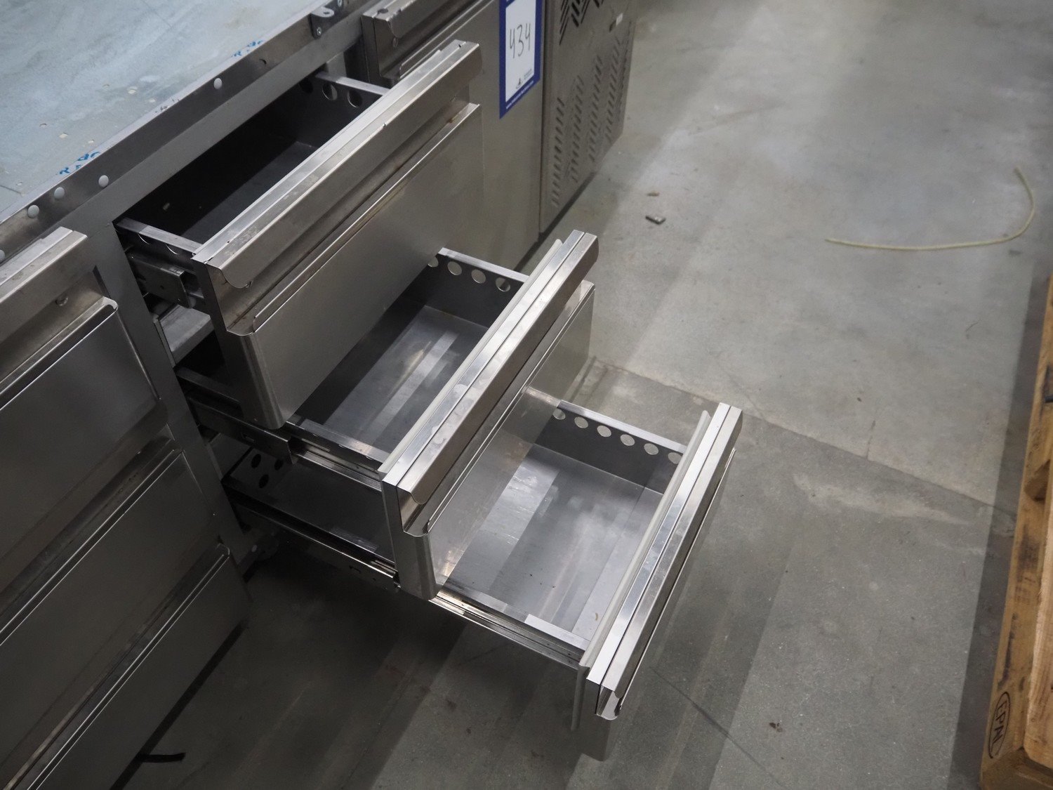 Diamond refrigerator with 9 drawers, model: TG4N/H-R2, serial number: 2007.0005, 230 V, 50 Hz, 1 A, 250 W, refrigerant: R290, 0,080 kg, floor dimensions: 520 mm x 320 mm, inside dimensions: (9x) 520 mm x 300 mm x 95 mm, total dimensions: 2250 mm x 700 mm x 760 mm.