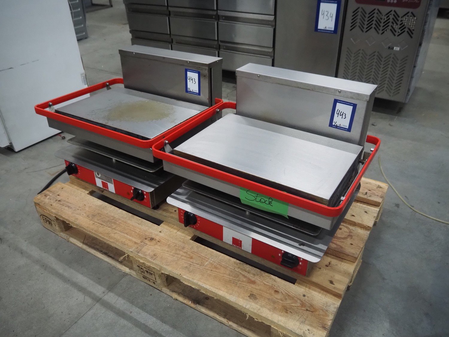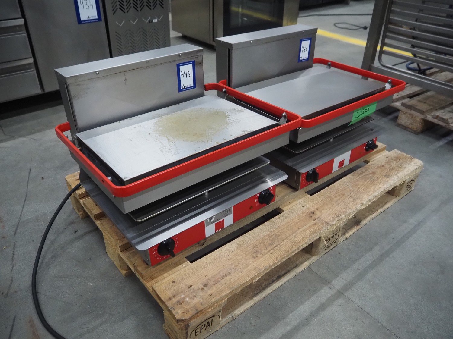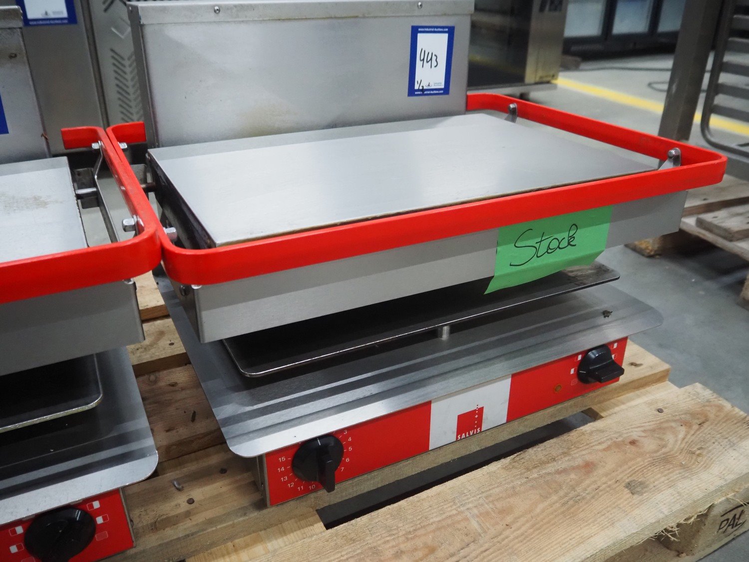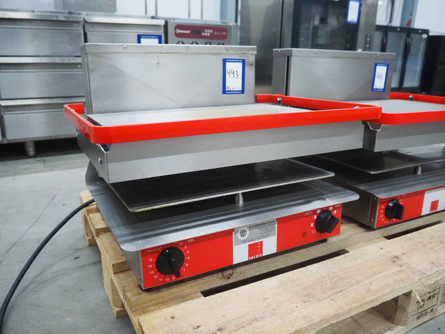 2 Salvis salamander grill, type: HL-C, serial number: 446812-BZ 1 and 419230-BZ 1, year of construction: 2016 and 2011, dimensions heater: (4x) 295 mm x 160 mm, plate dimensions: (2x) 480 mm x 330 mm, total dimensions: (2x) 600 mm x 530 mm x 445 mm.