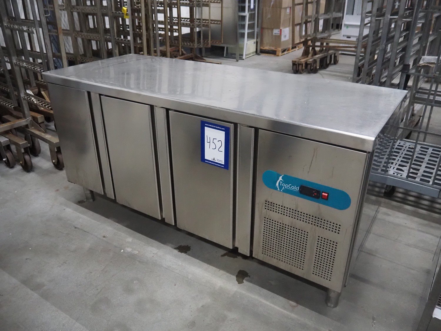 Top Cold refrigerated counter, model: TCTP-7-180-30 SP, serial number: 1711220270P, year of construction: 2017, 50 Hz, refrigerant: R-134a, 370 gram, floor dimensions: 570 mm x 330 mm, total dimensions: 1800 mm x 700 mm x 900 mm.